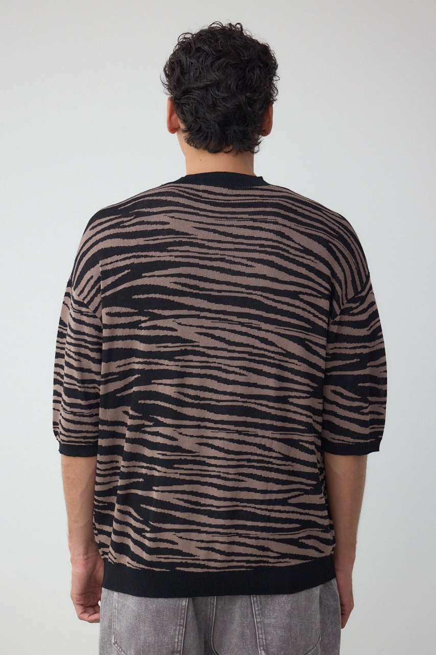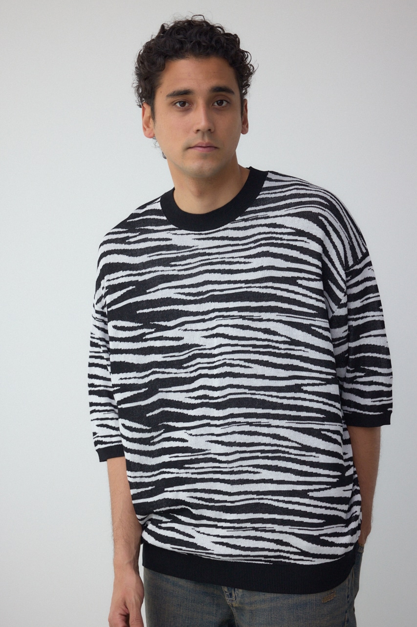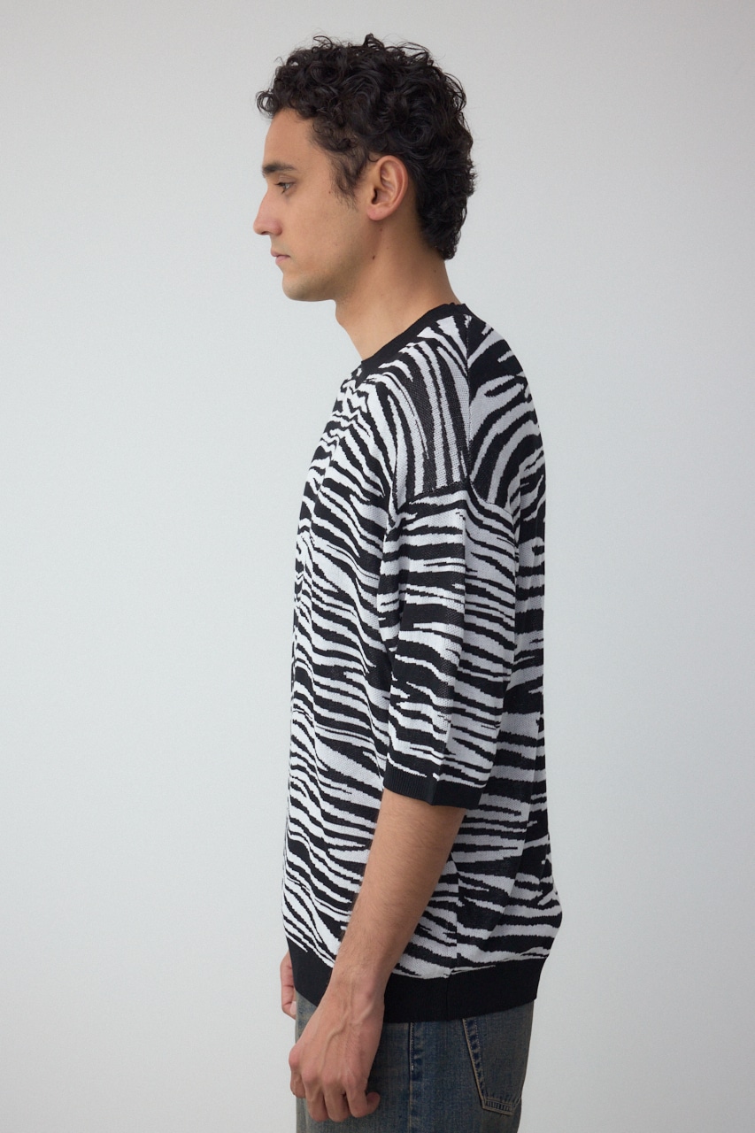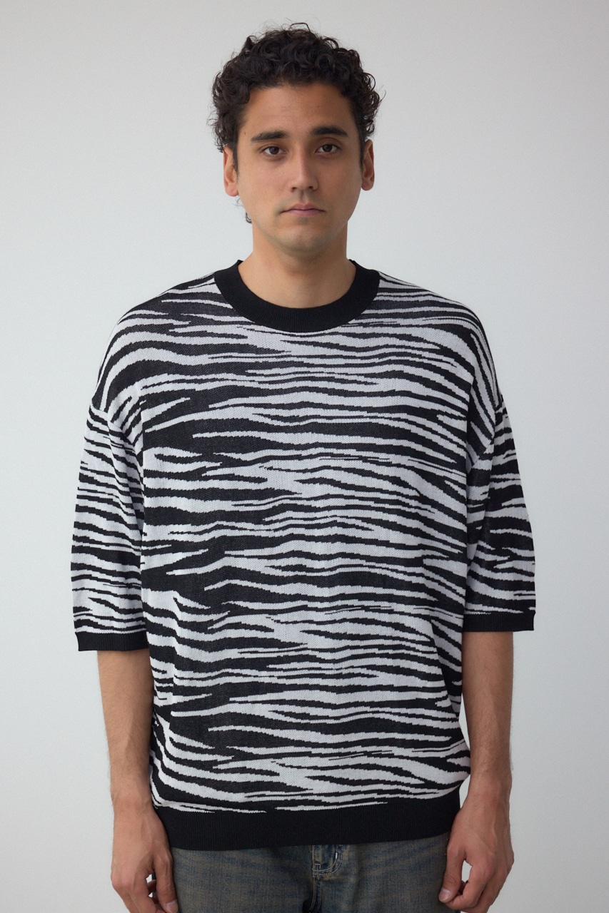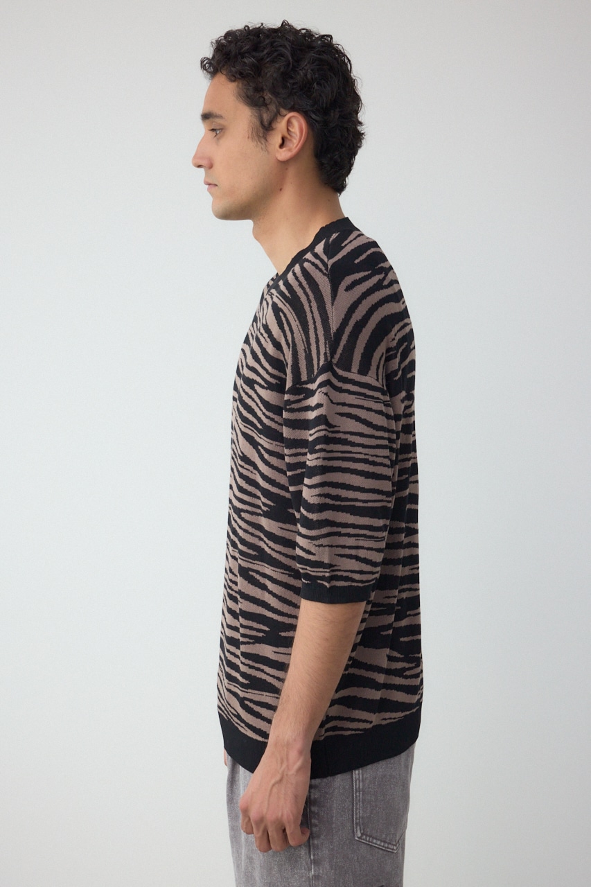 ゼブラの総柄デザインがかっこいい半袖ニットになります。