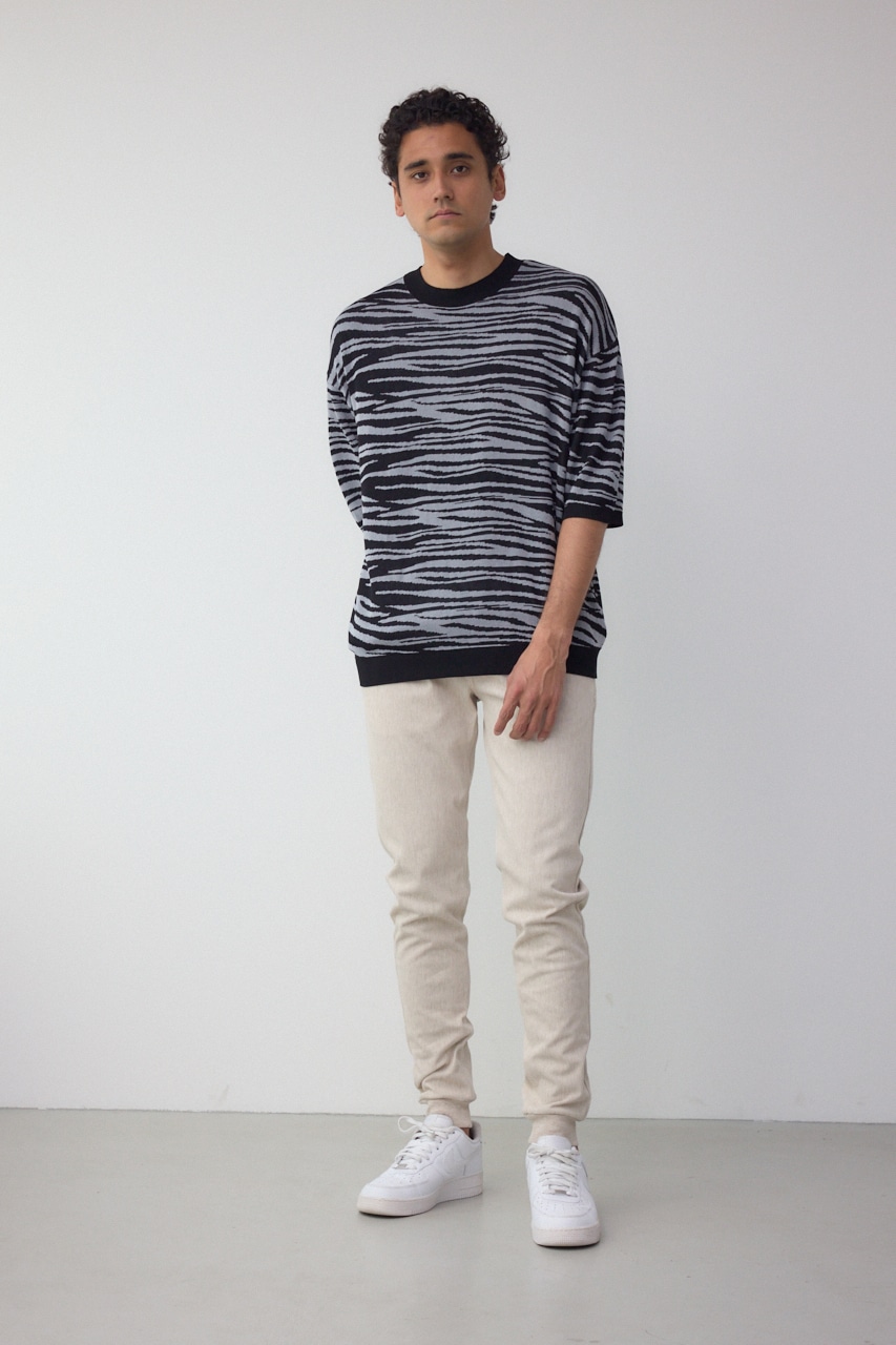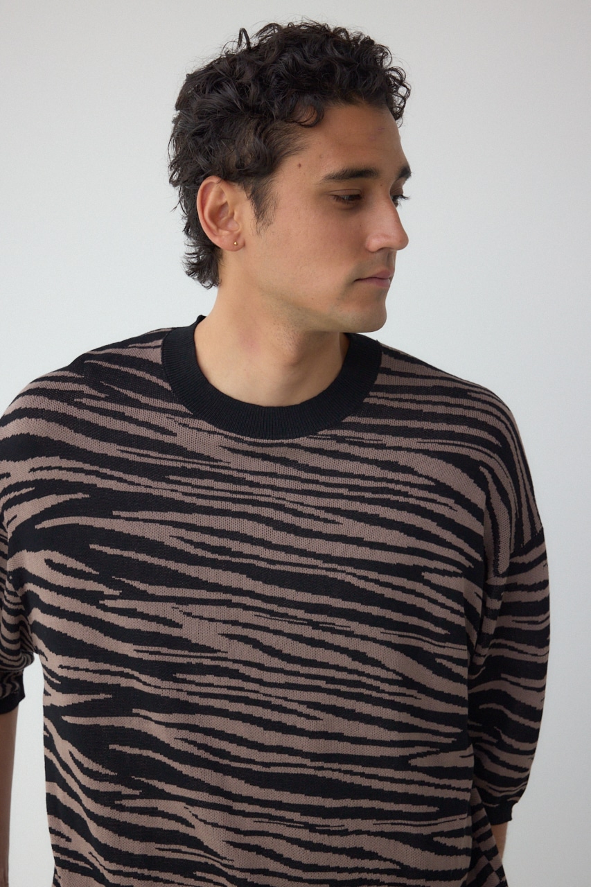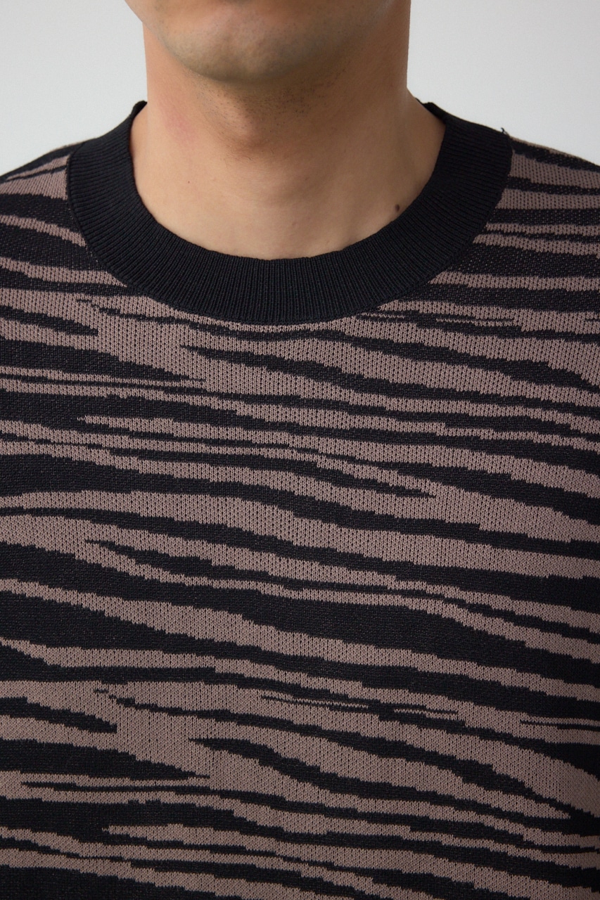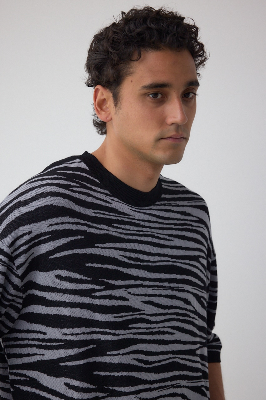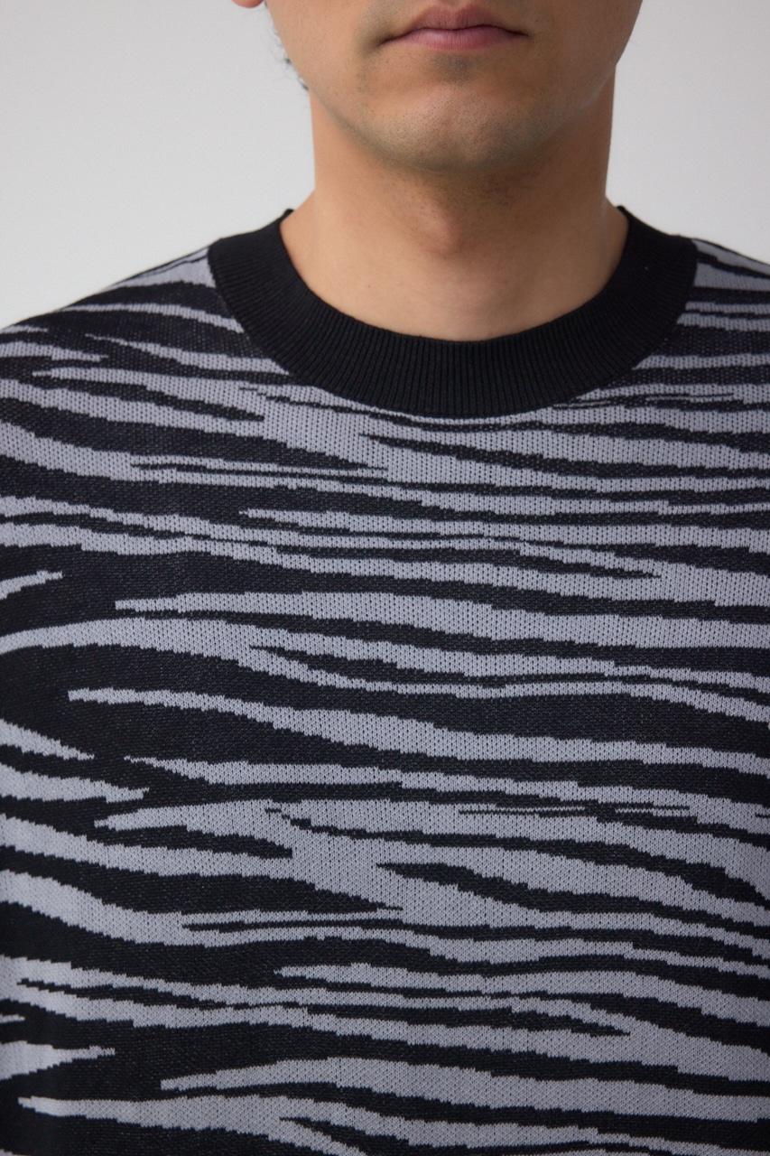 ゼブラの総柄デザインがかっこいい半袖ニットになります。
