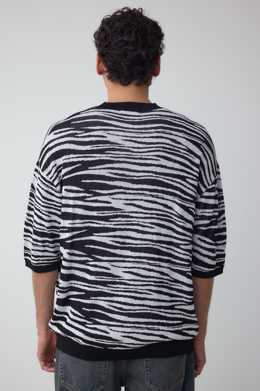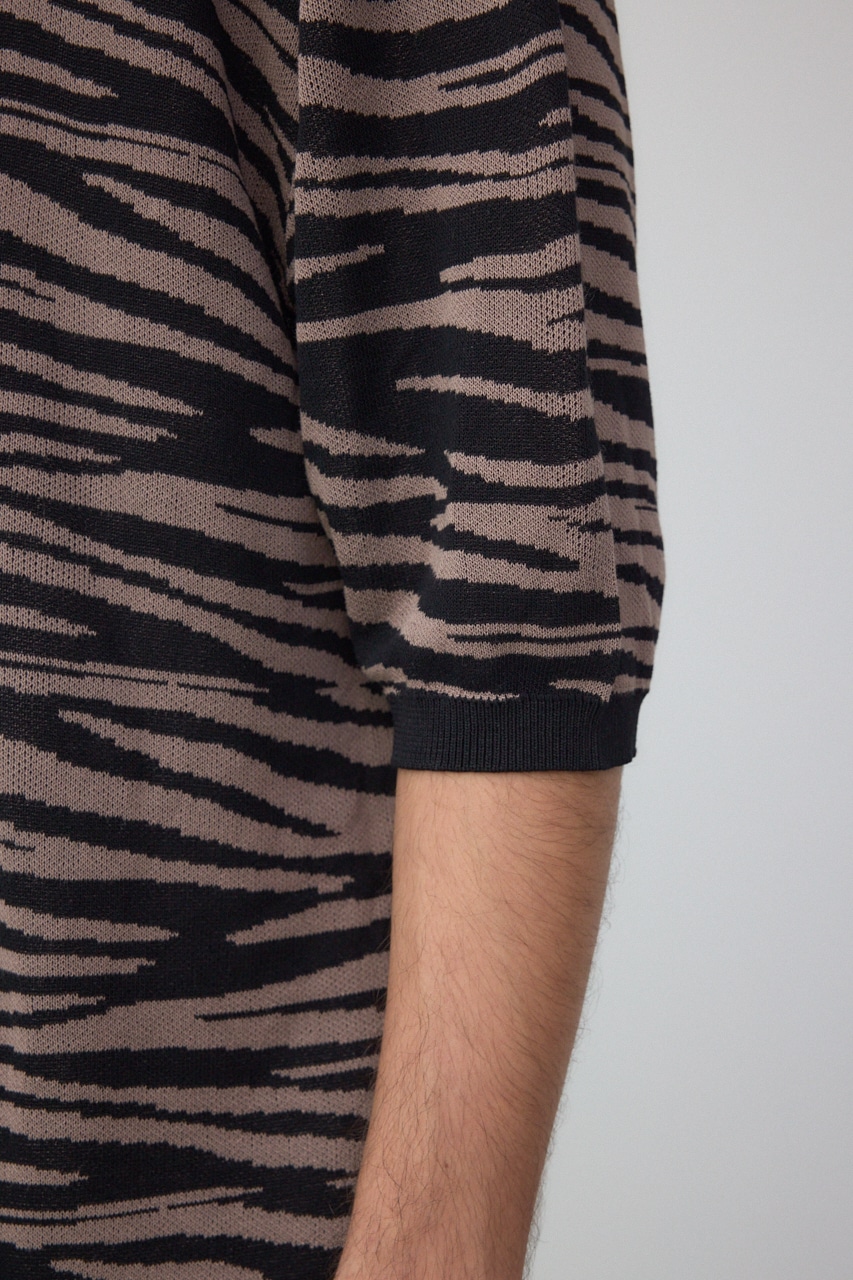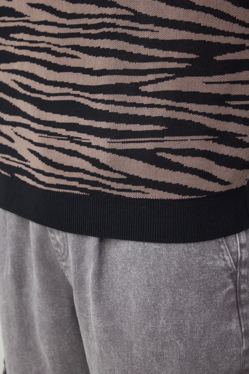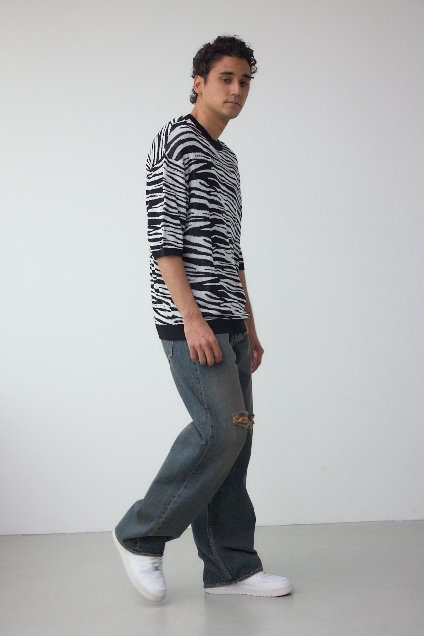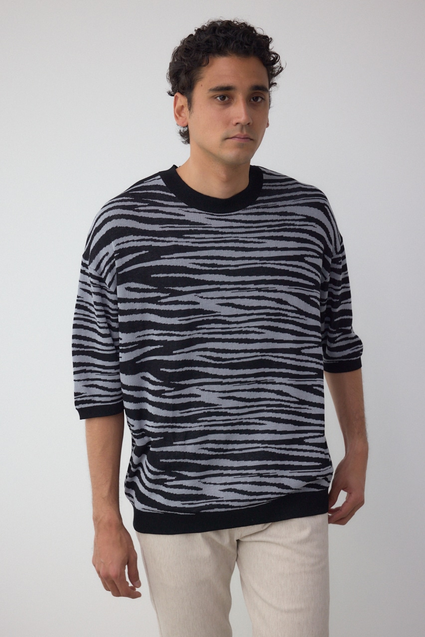 ゼブラの総柄デザインがかっこいい半袖ニットになります。