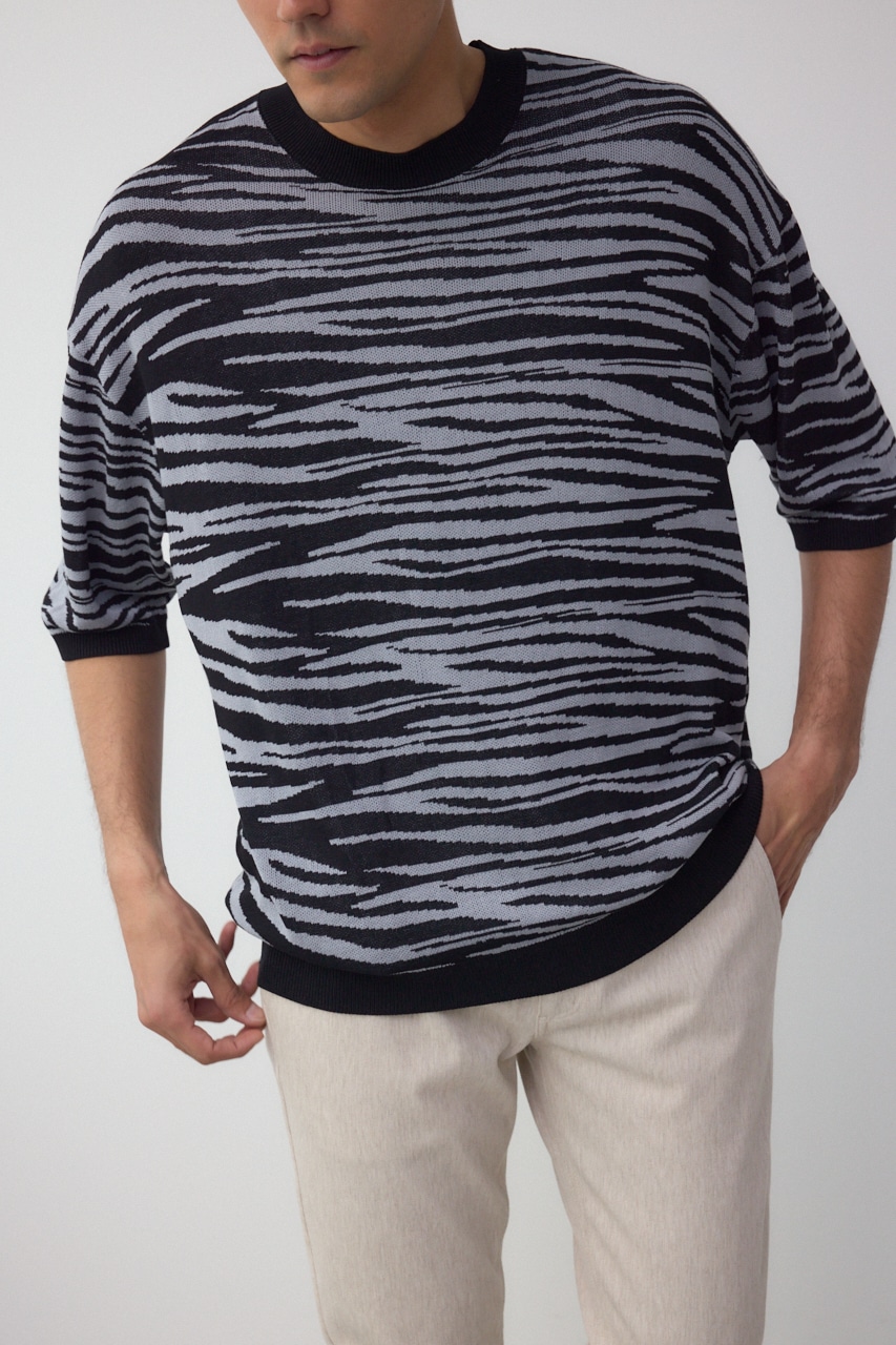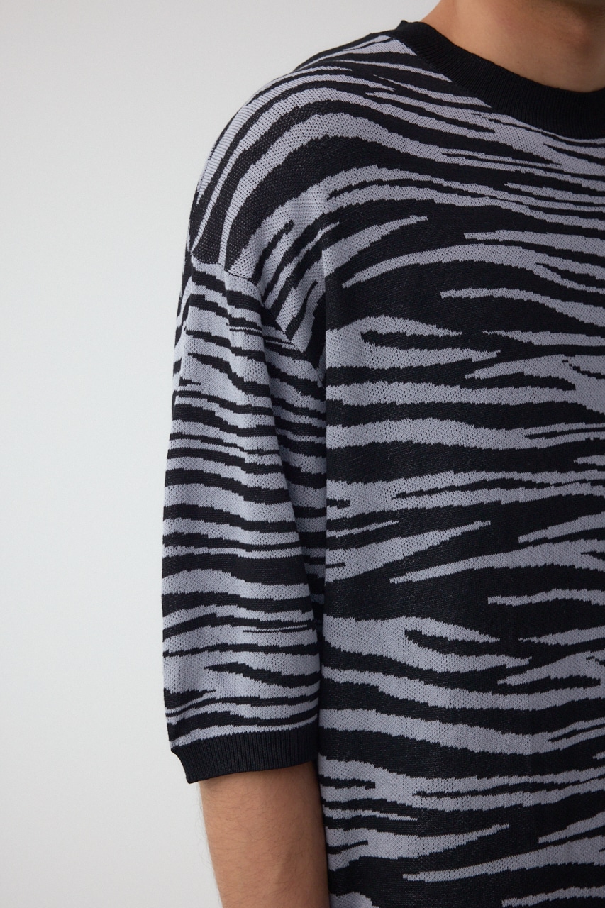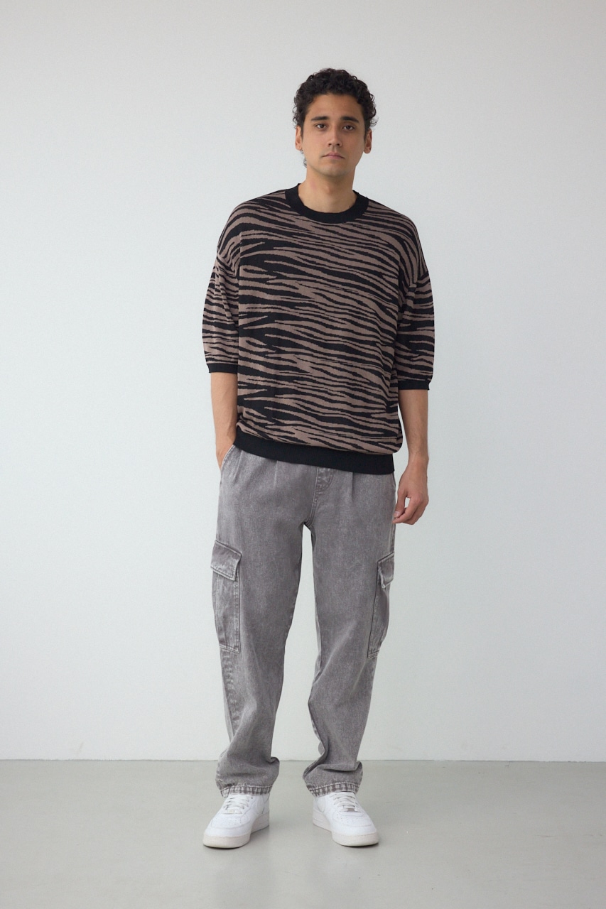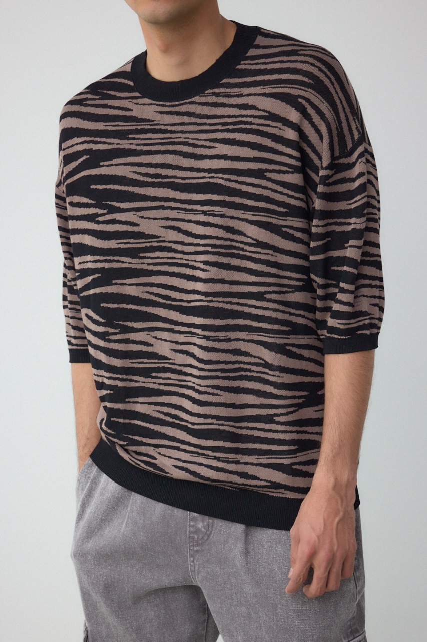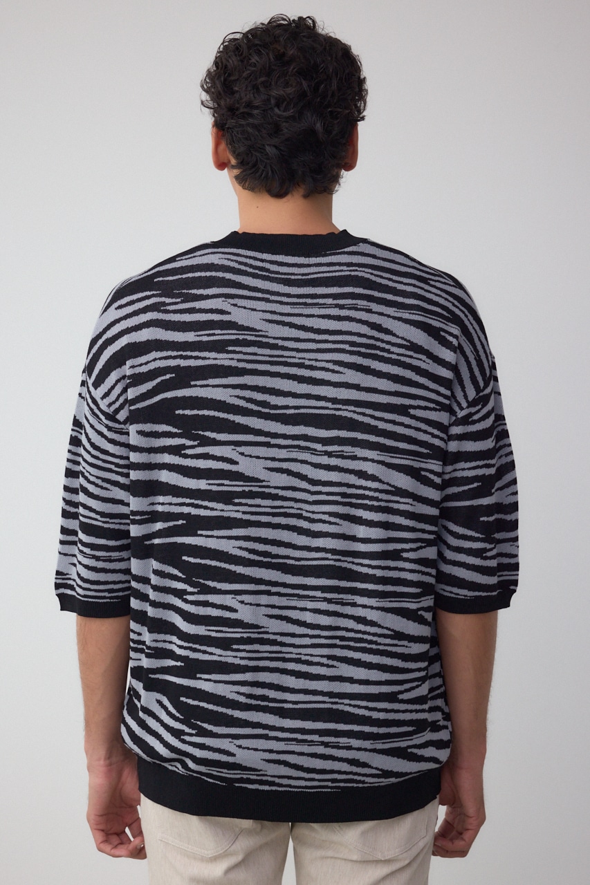 ゼブラの総柄デザインがかっこいい半袖ニットになります。