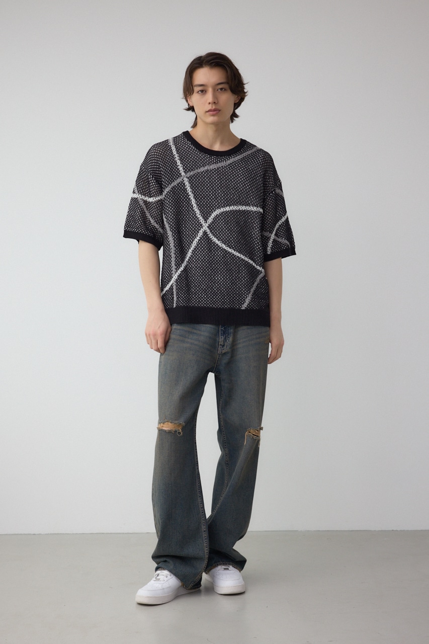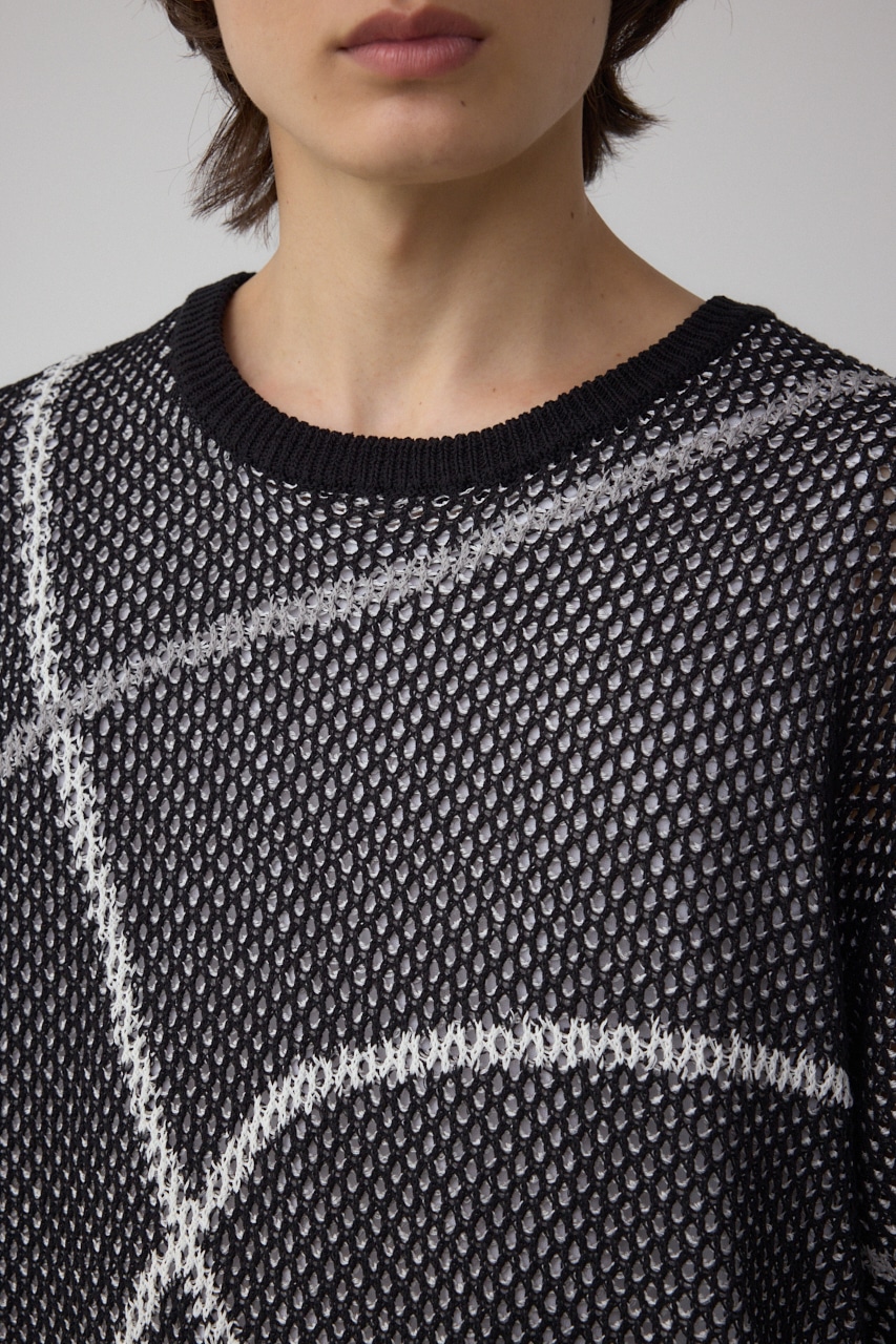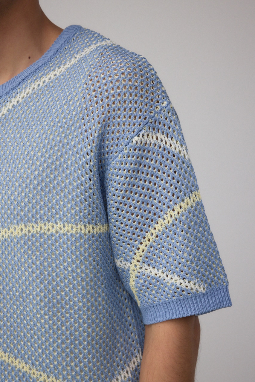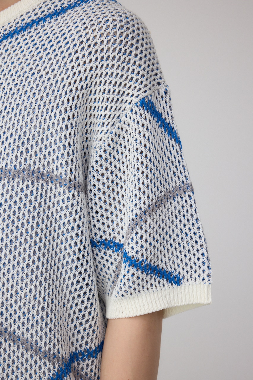 編地がメッシュ編みとトレンドのニュアンスロープ柄をAZULらしい配色で表現。