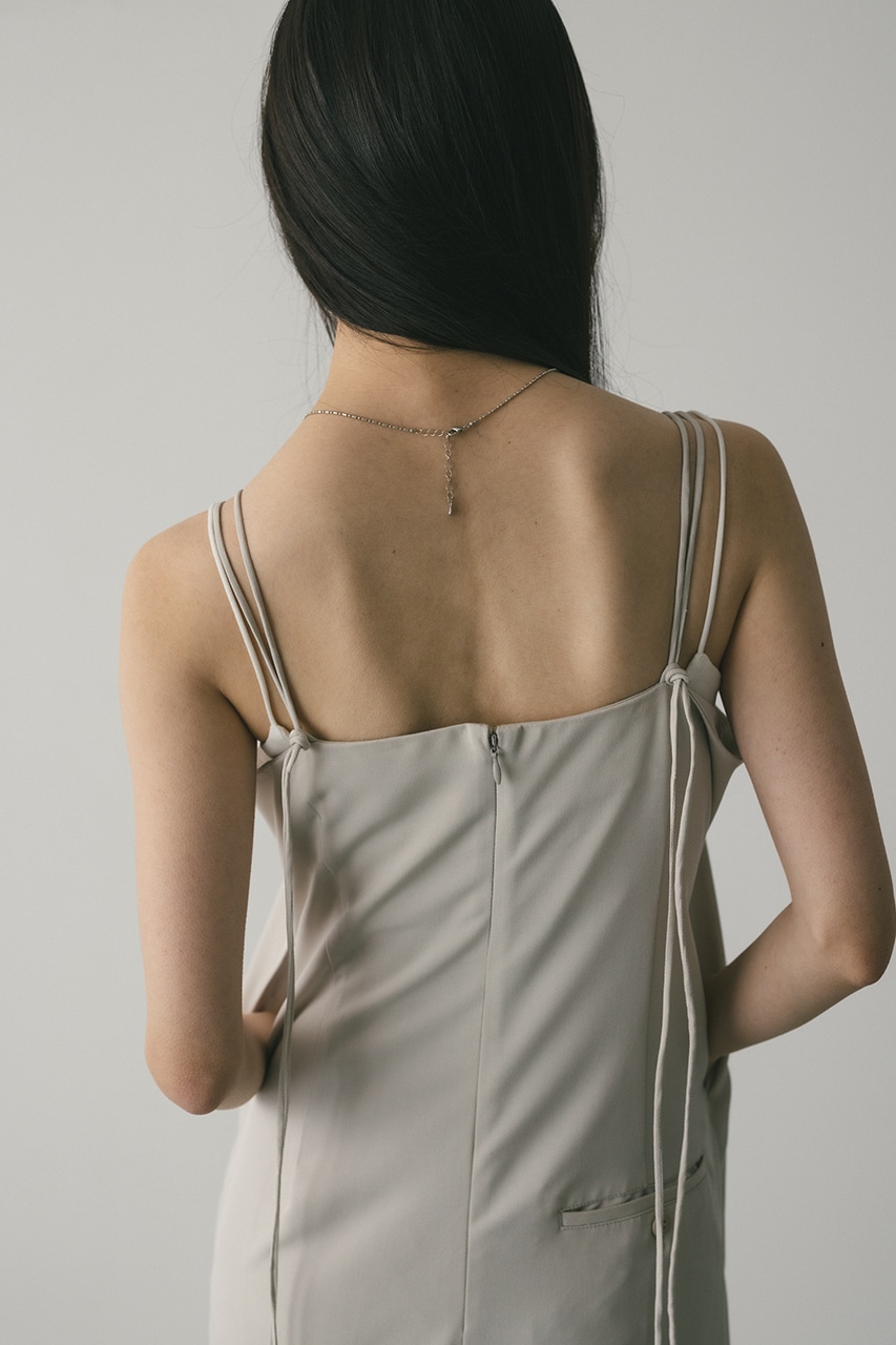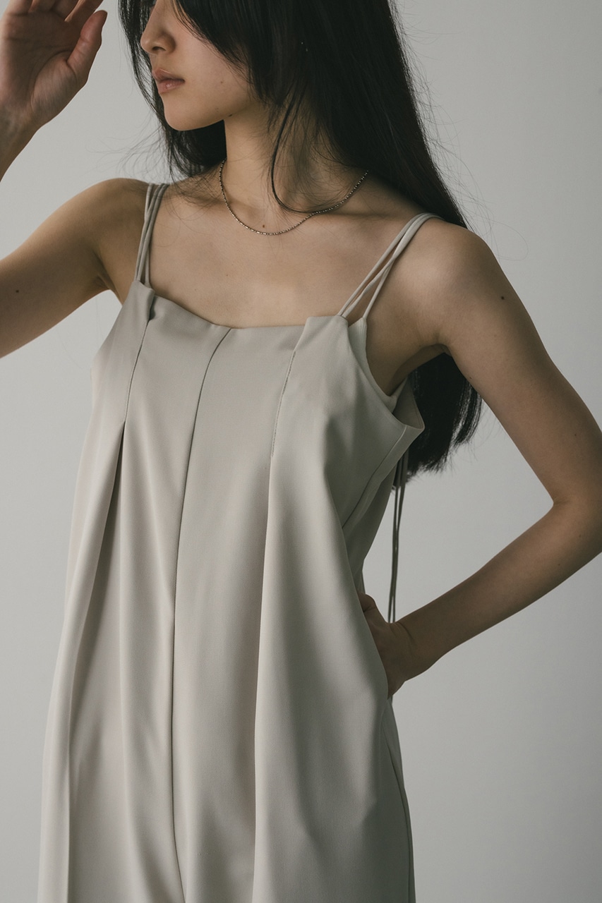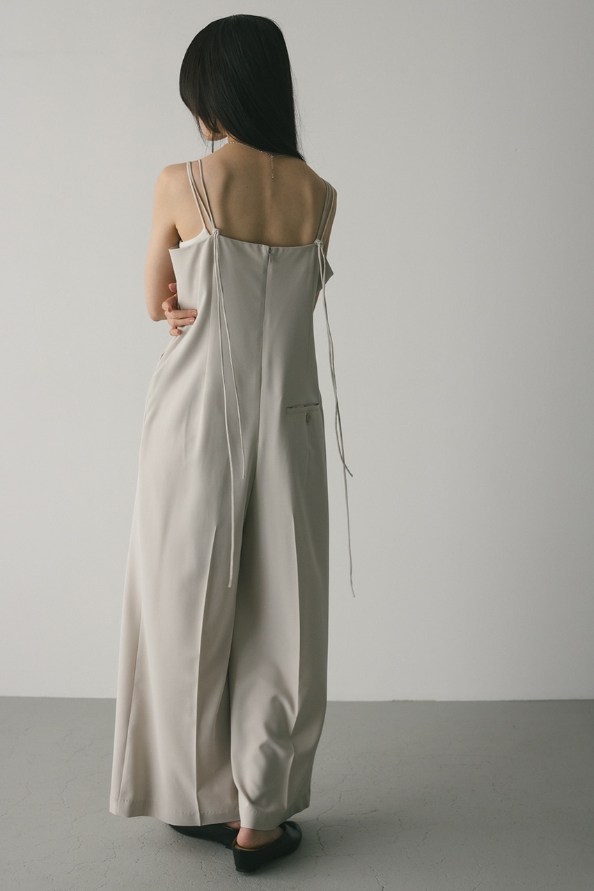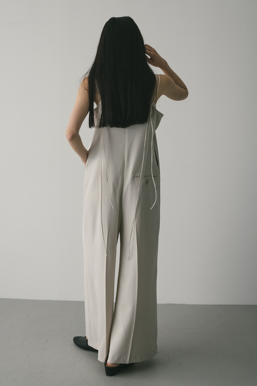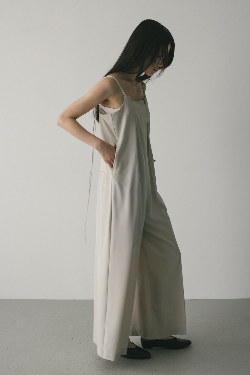 バストタックからセンタープレスにつながる縦ラインが身体のラインを綺麗に見せてくれるオールインワン。