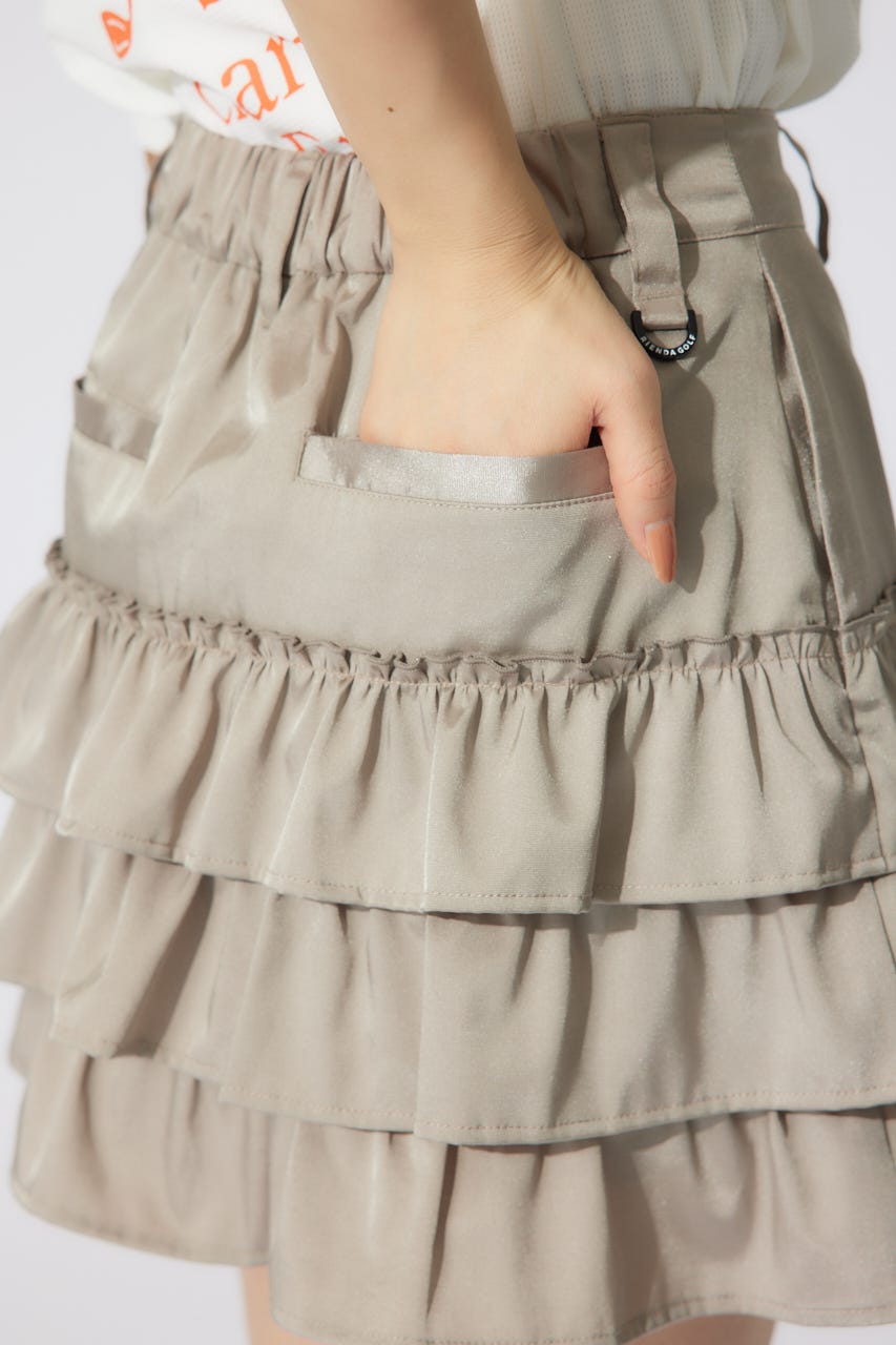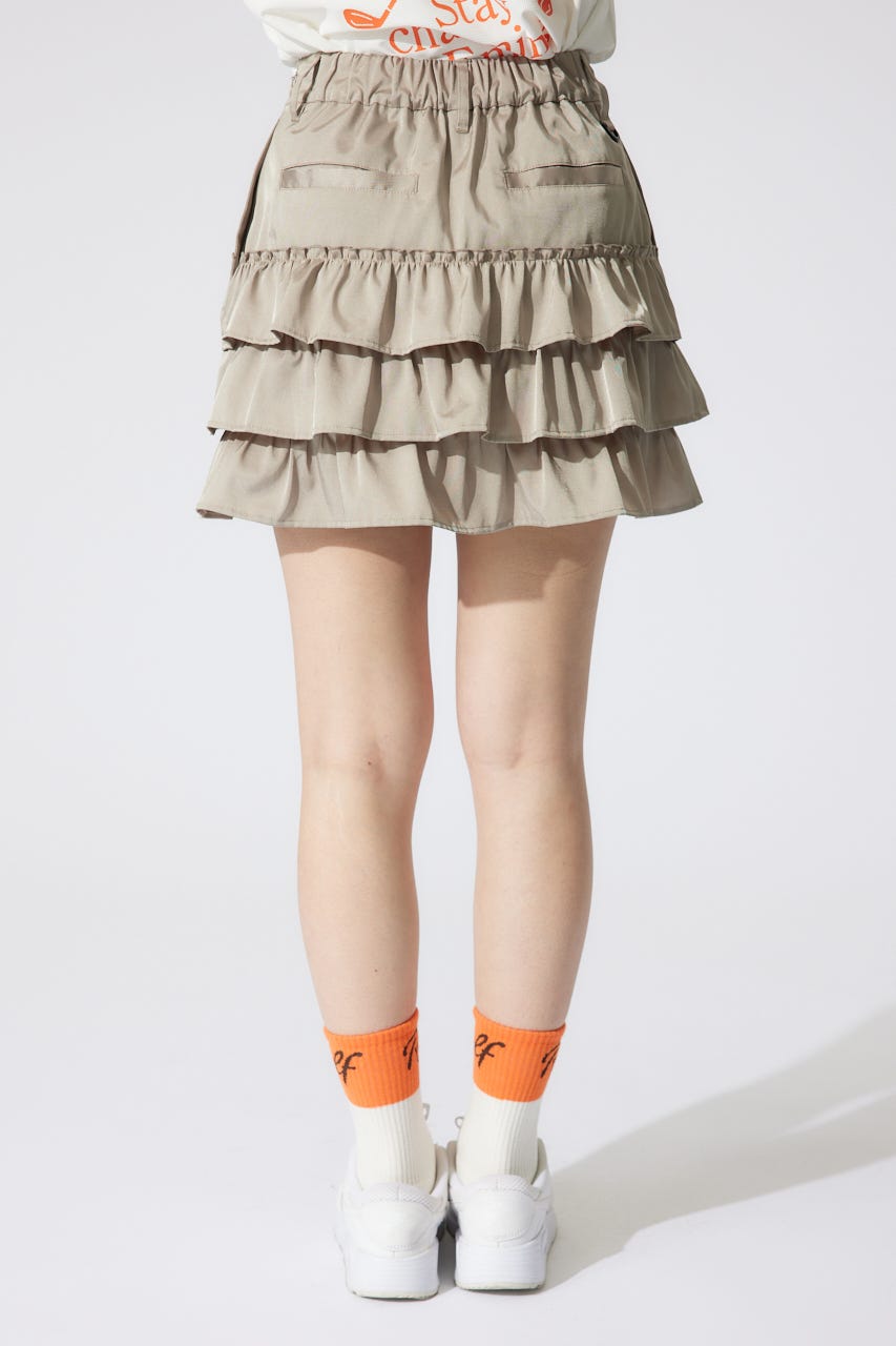 フェミニン要素をたっぷり詰め込んだ、他にはないRIENDA GOLFらしいティアードデザインがポイントのスカート。