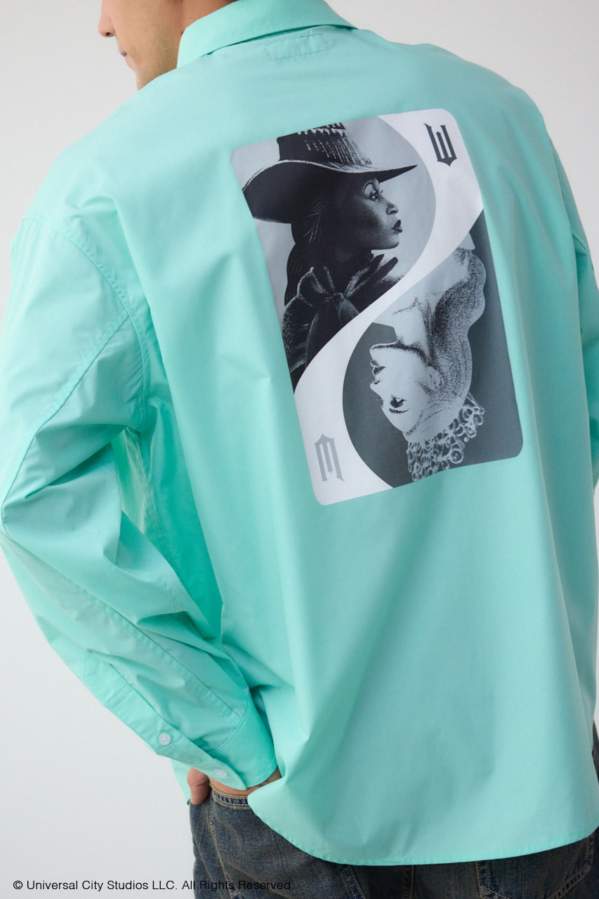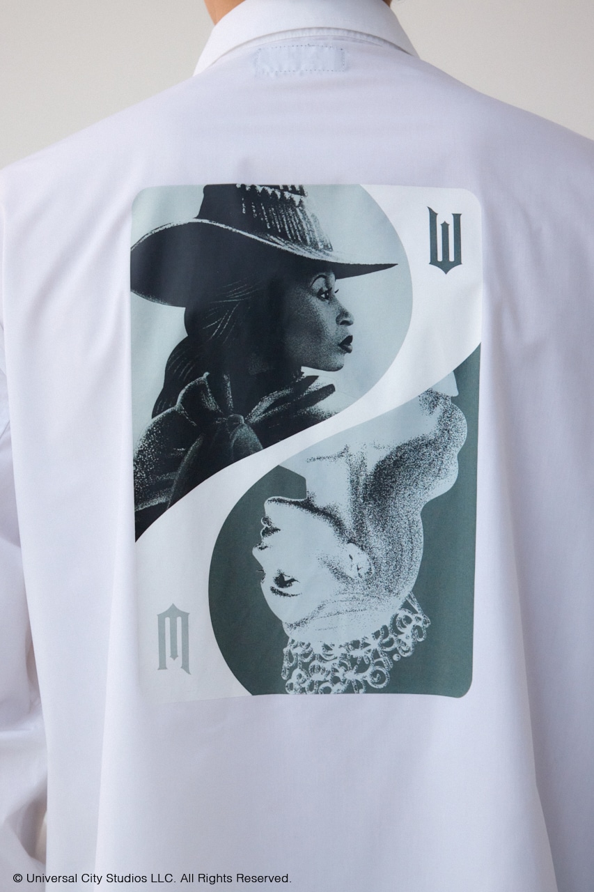 WICKEDの人物グラフィックがモノクロプリントにて表現されており、3月日本公開の映画に合わせて存在感がある価値のある1着に仕上がっております。