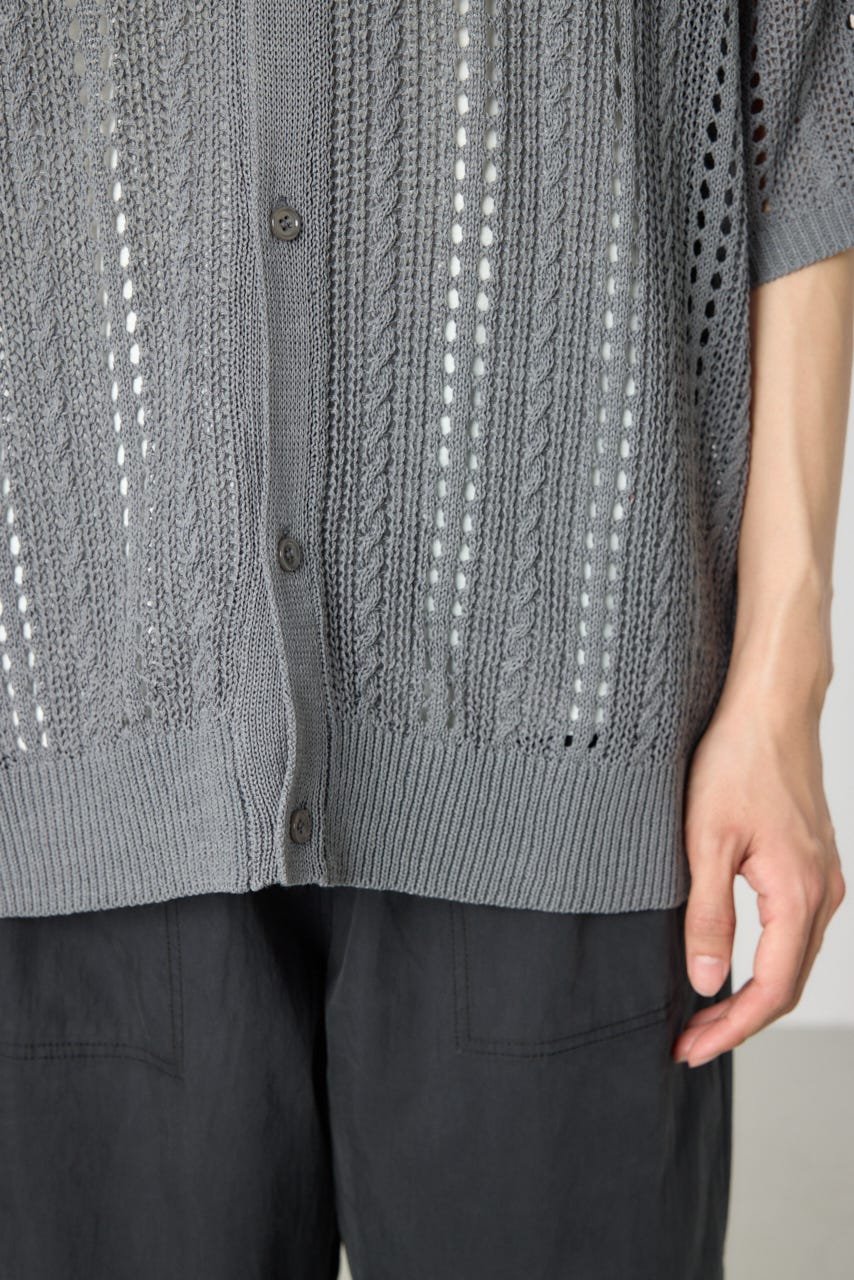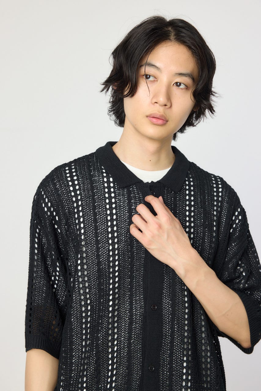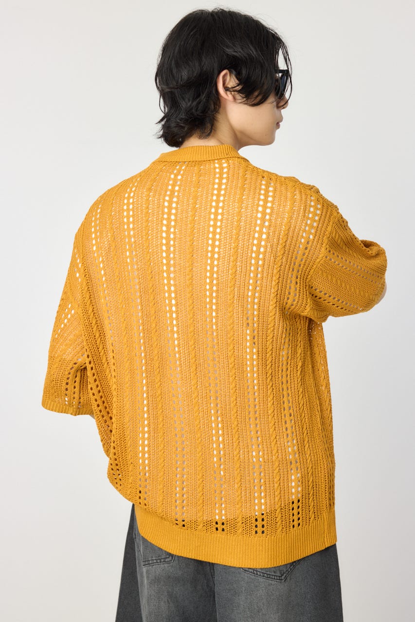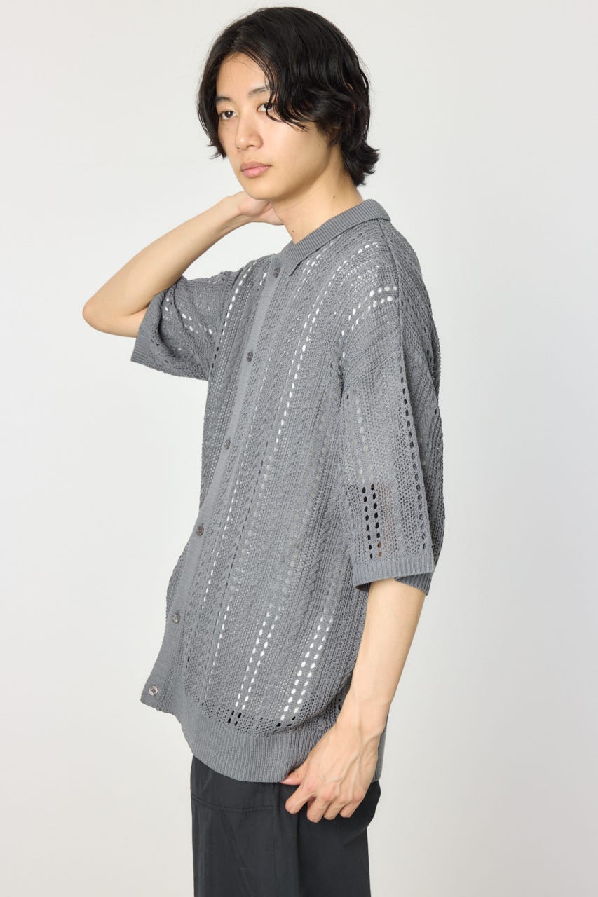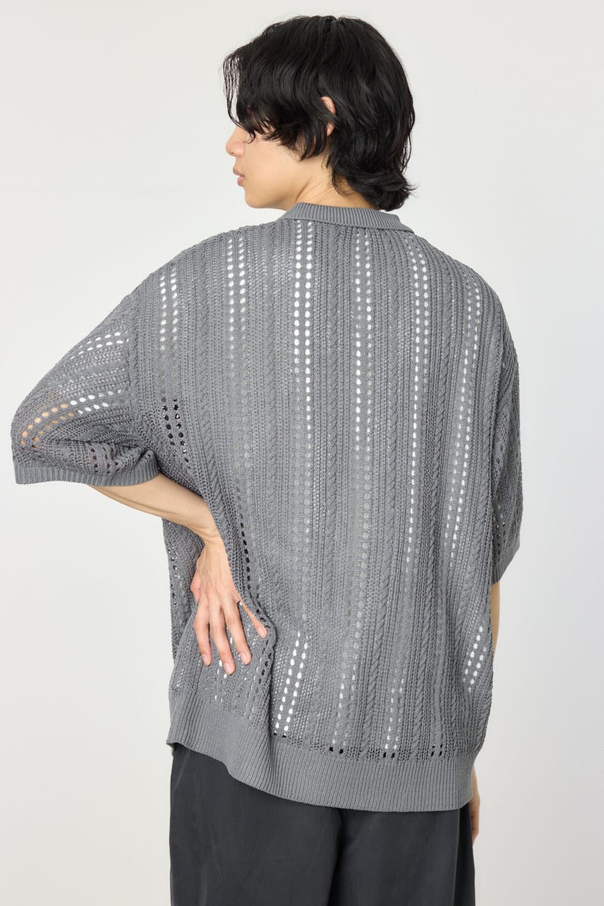 レースの編み目の透け感は見た目にも涼し気な印象。ラッセル編みのニットなのでストレッチ性も高く、着心地は抜群です。