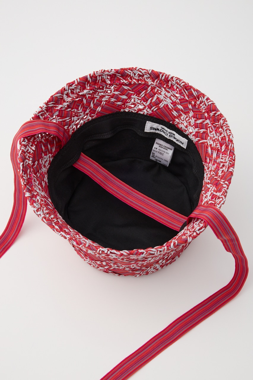 【柄BLK】【柄RED】[表地](本体)ポリエステル100(紐部分)分類外繊維(紙)100(リボン部分)ポリエステル100[裏地]ポリエステル80コットン20【柄BLU】[表地](本体)ポリエステル77コットン23(紐部分)分類外繊維(紙)100(リボン部分)ポリエステル100[裏地]ポリエステル80コットン20