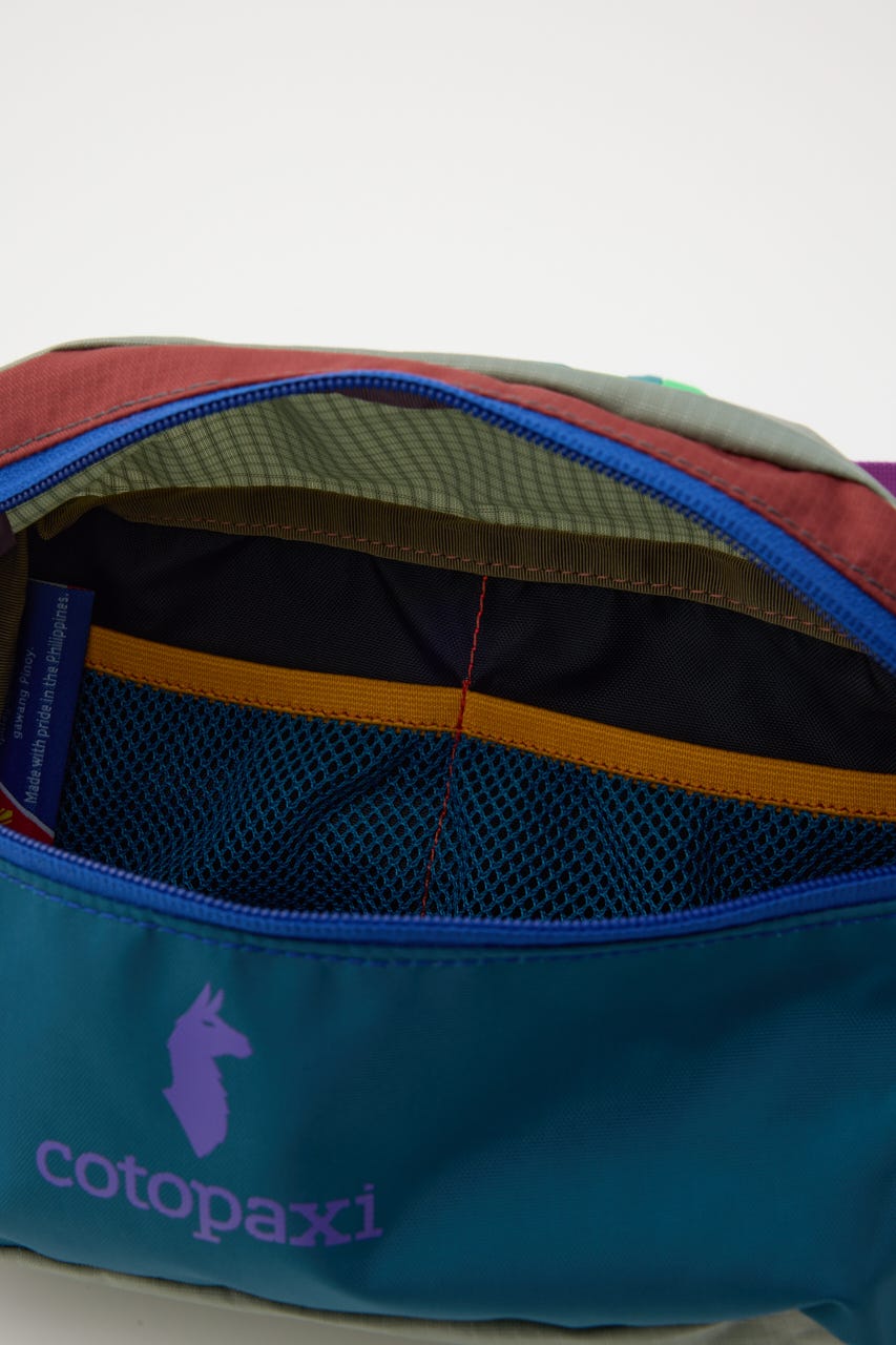 財布やスマートフォンなどの貴重品を持ち運ぶのに便利なサイズで、内部にはカギやスマートフォンの充電ケーブルなどを収納できる小さなメッシュポケットを備えています。