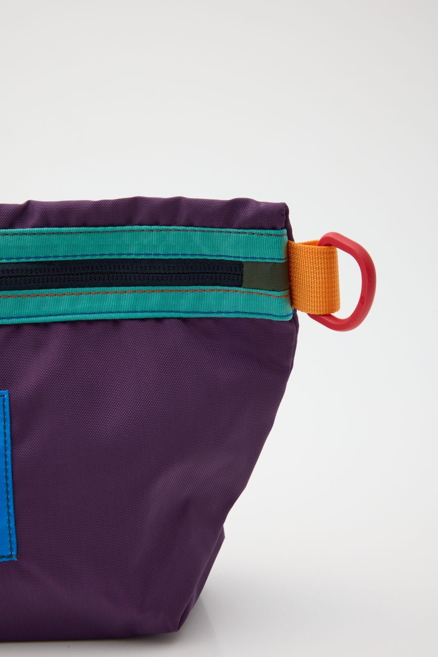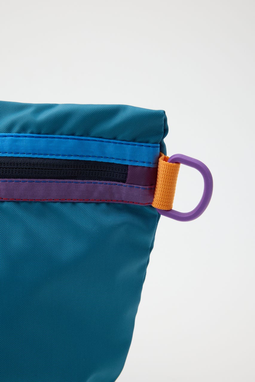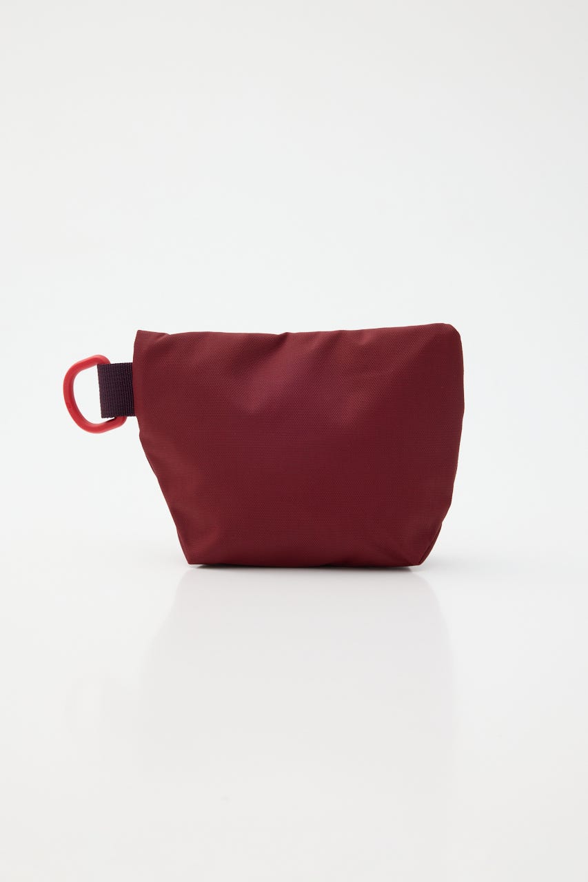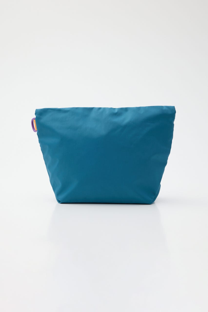 軽量なデッドストック生地を使用し、シンプルなトップジッパーとDリングで、お手持ちのバックパックなどにも簡単に取り付けが可能です。