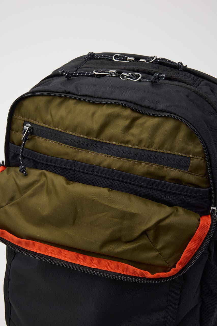 フロントトップにジッパーポケット、内部にジッパーポケットと細かく仕切られたメッシュのスリーブポケット
