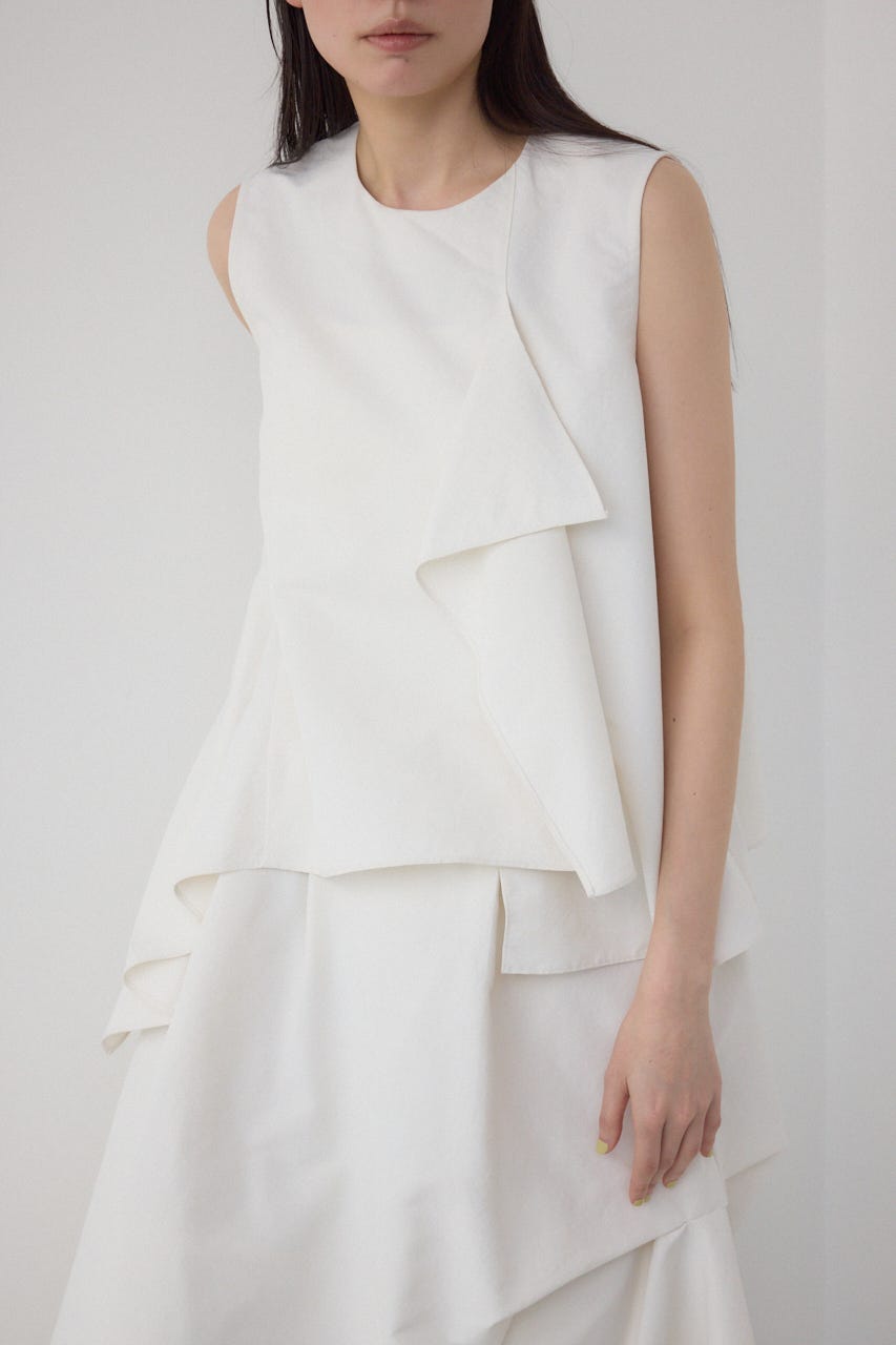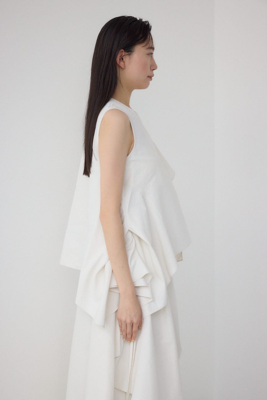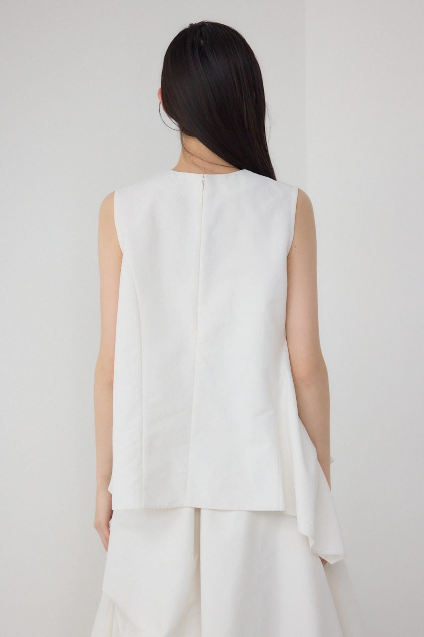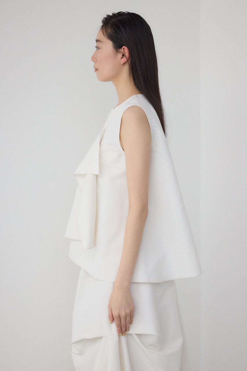 動きのあるドレープデザインがポイントのノースリーブブラウスです。