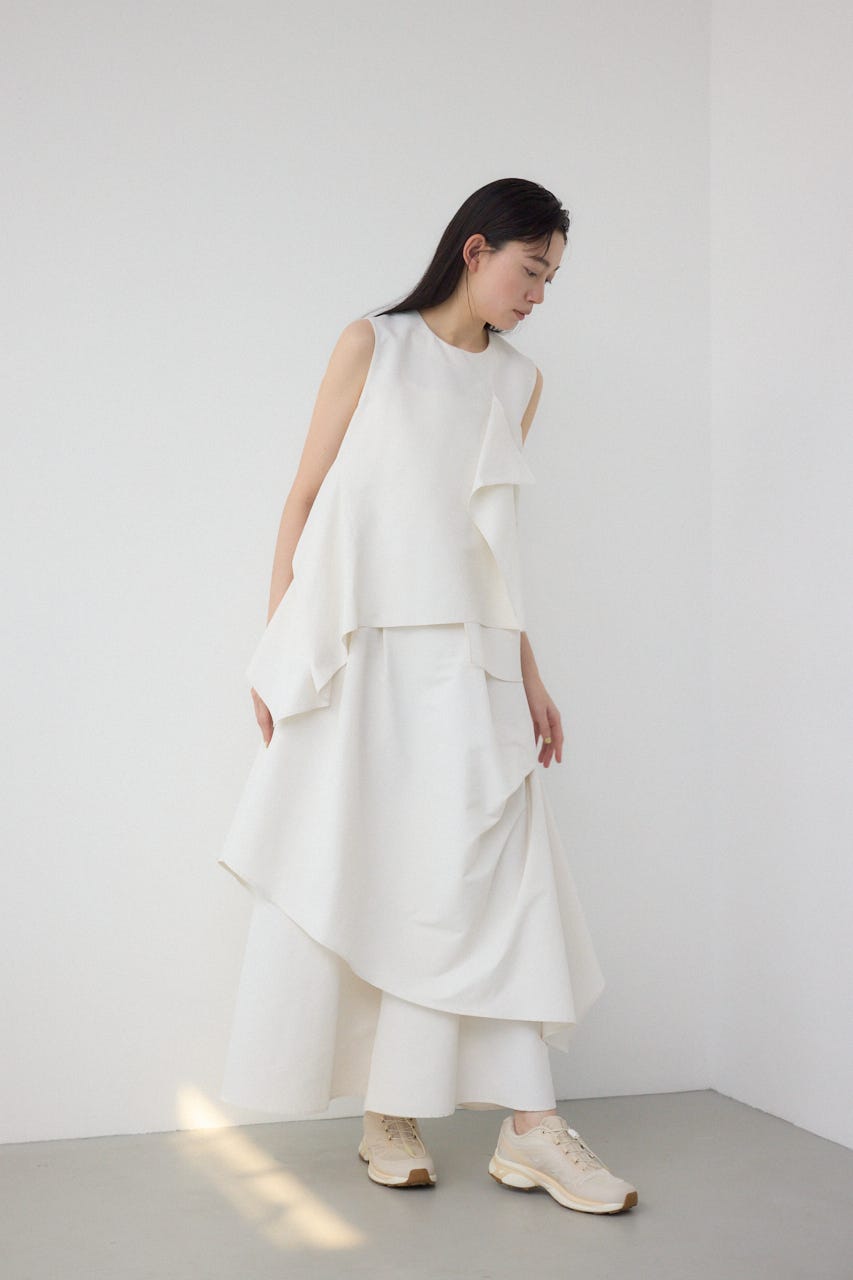 程よい肉感があり、ドレープ感がモードな印象を演出してくれるブラウスです。
