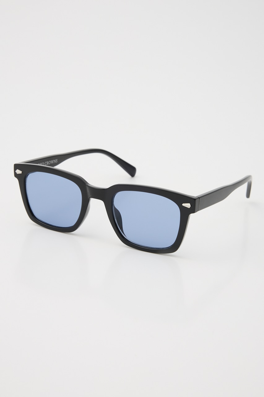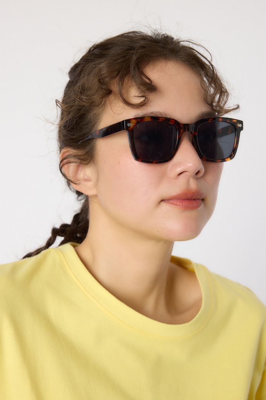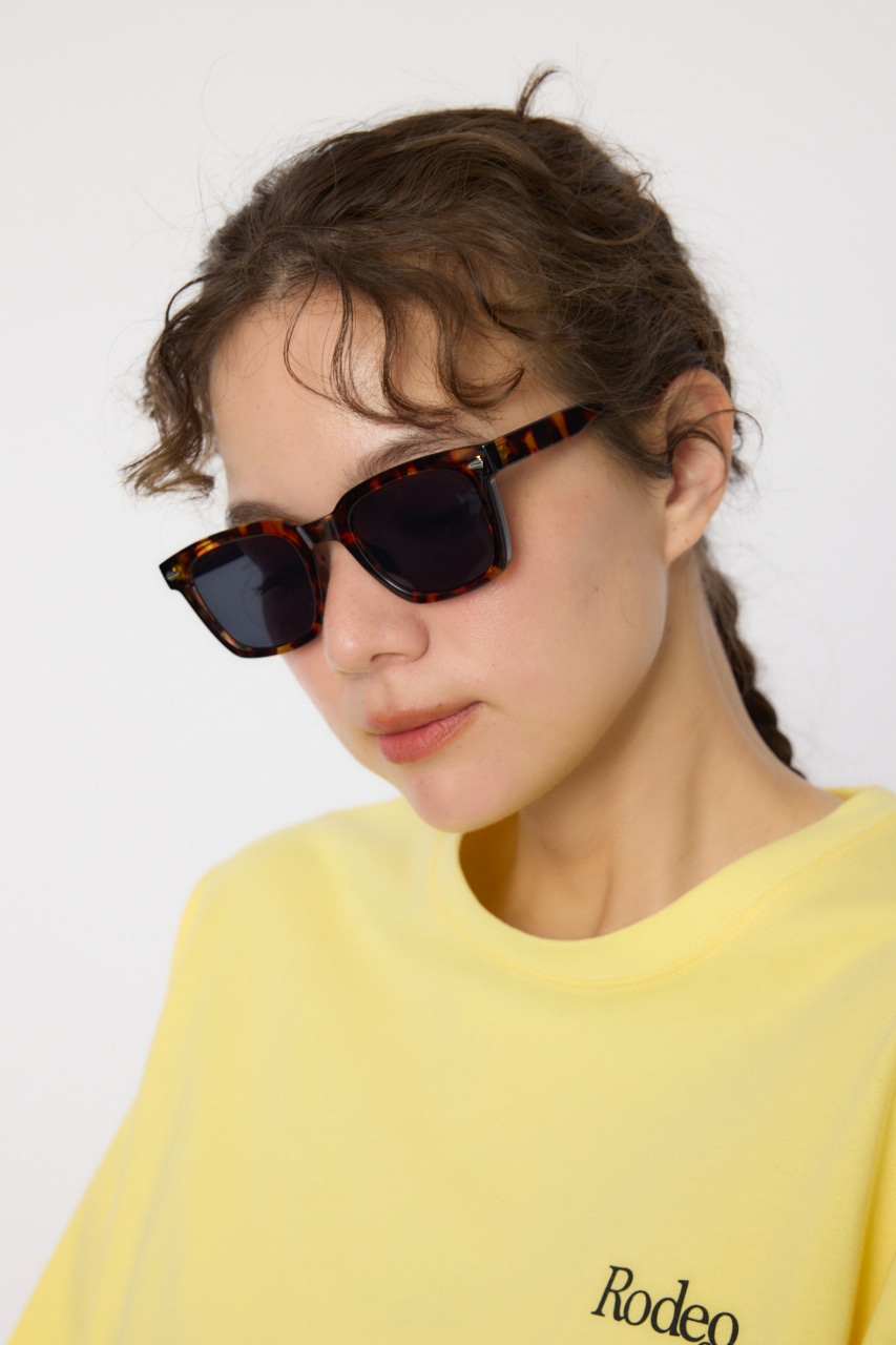 平面的なフラットレンズを少し角ばったウェリントンフレームで合わせたサングラス。