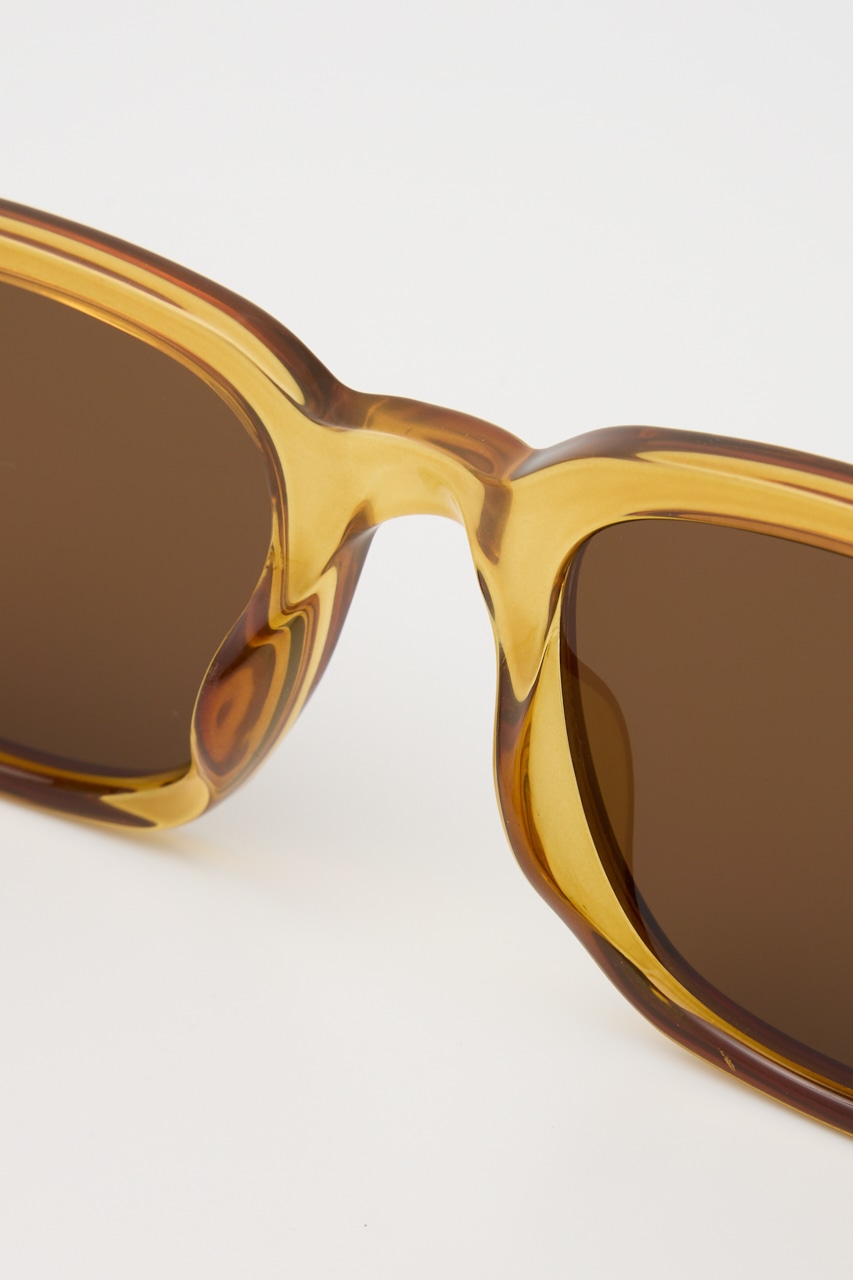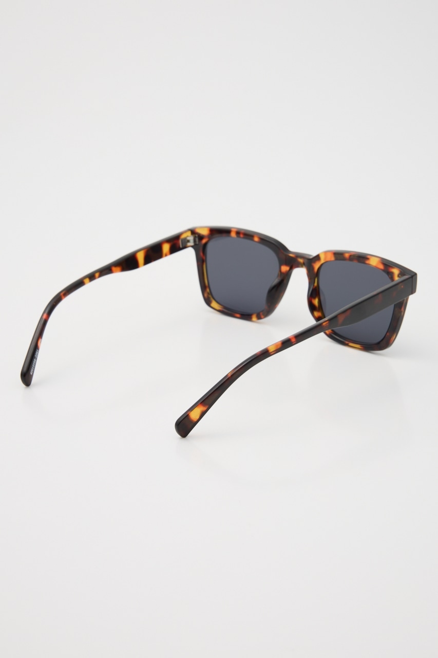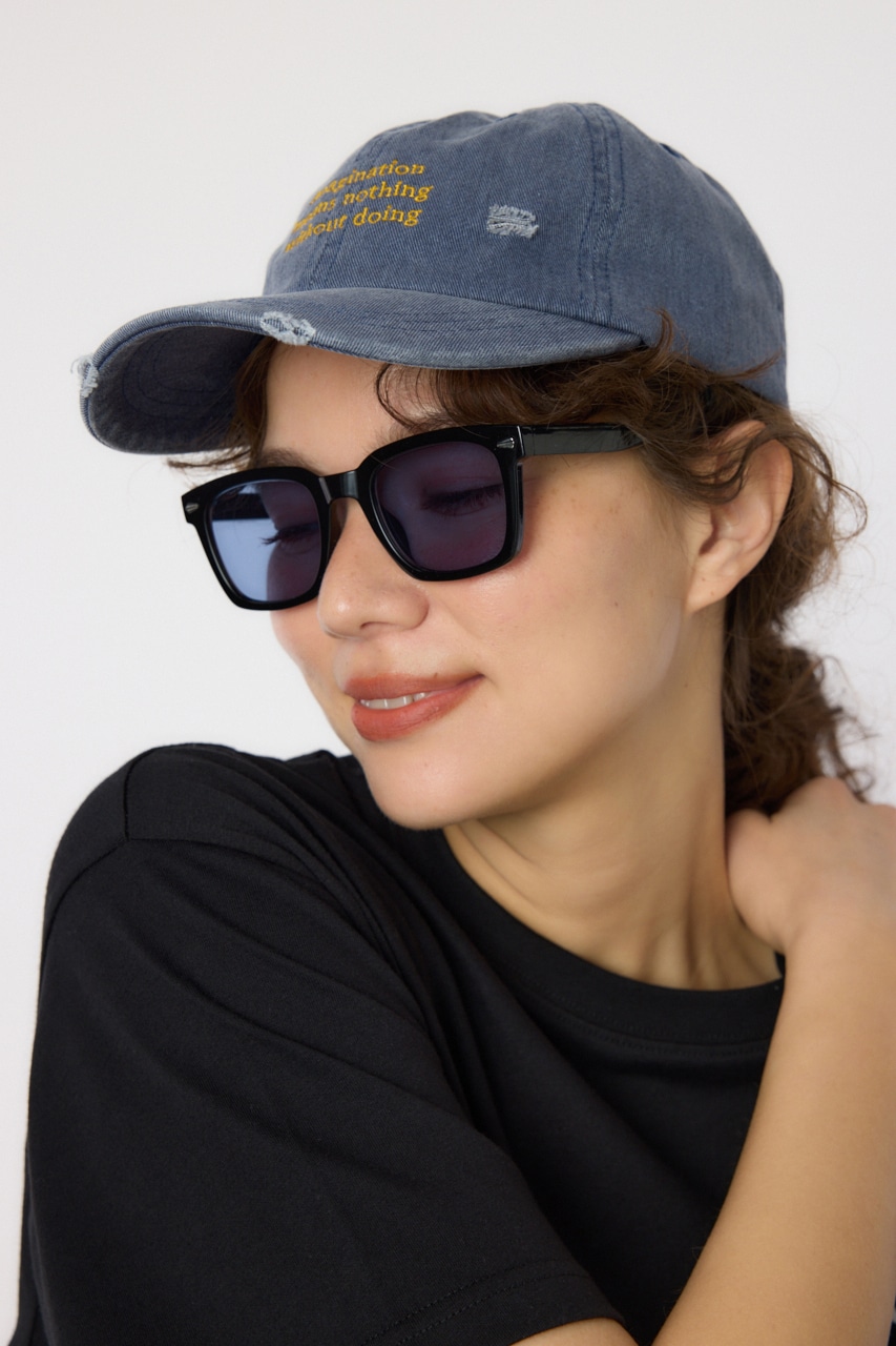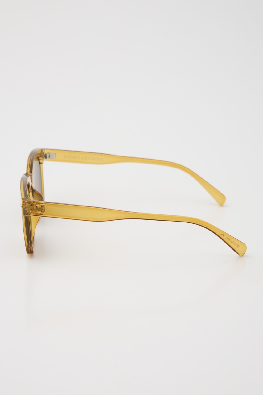 平面的なフラットレンズを少し角ばったウェリントンフレームで合わせたサングラス。