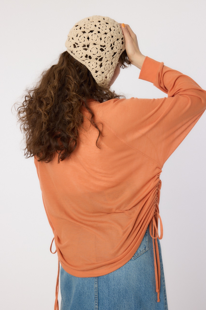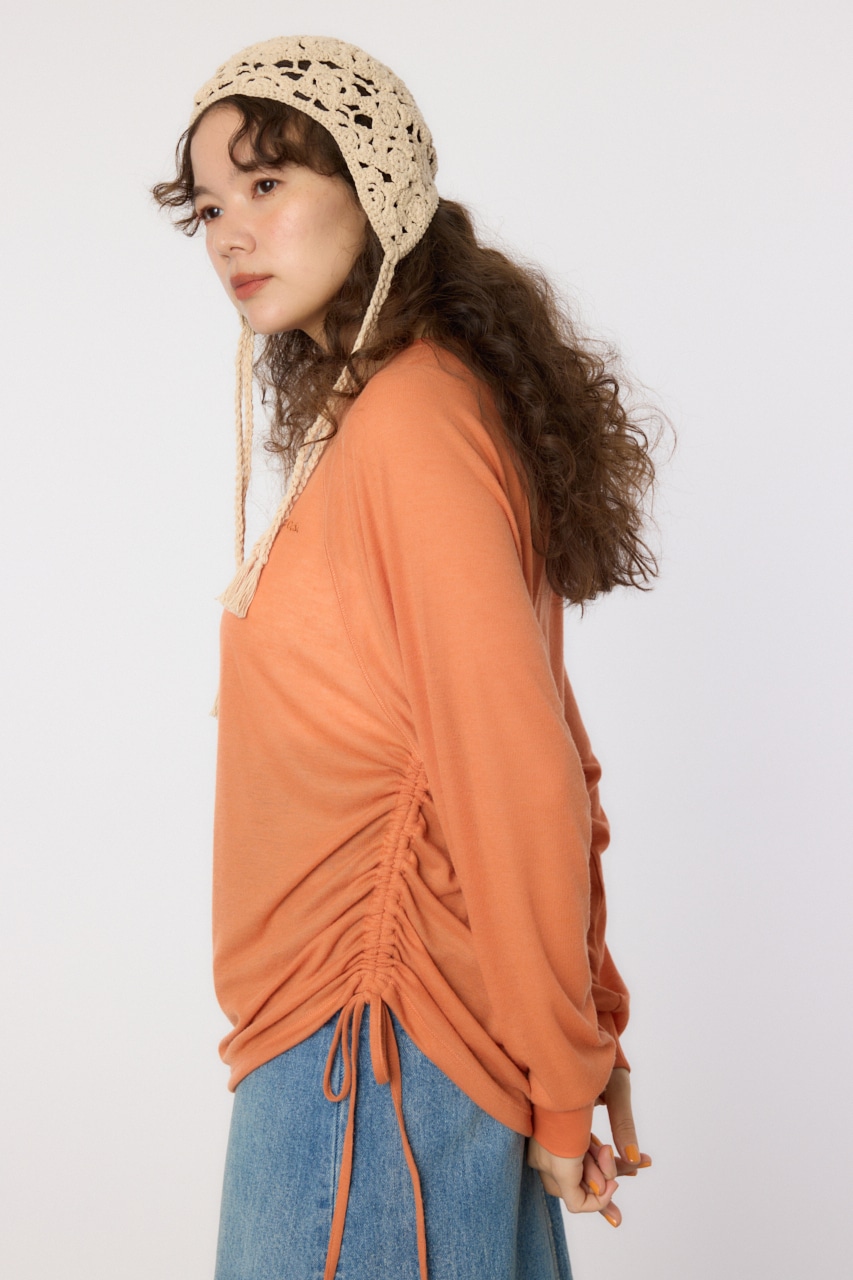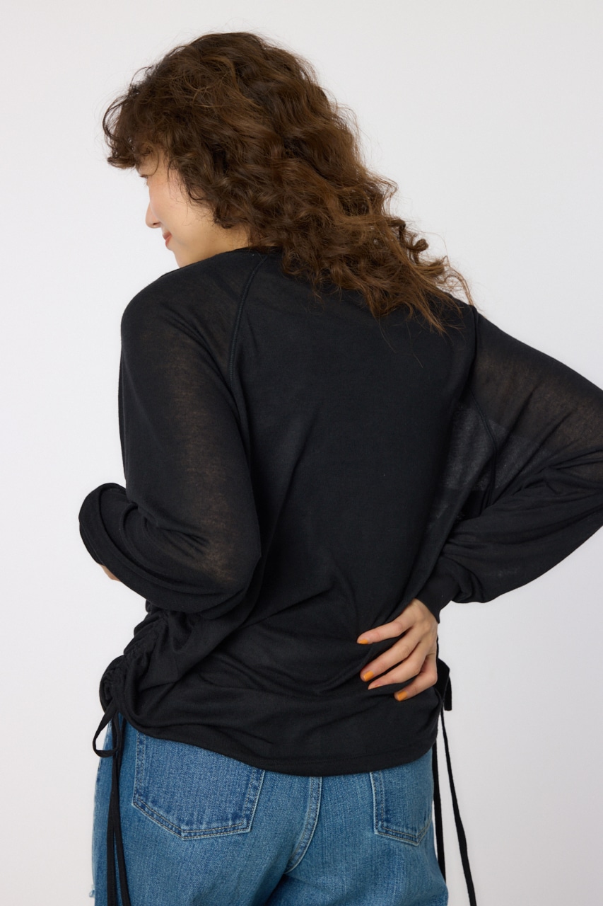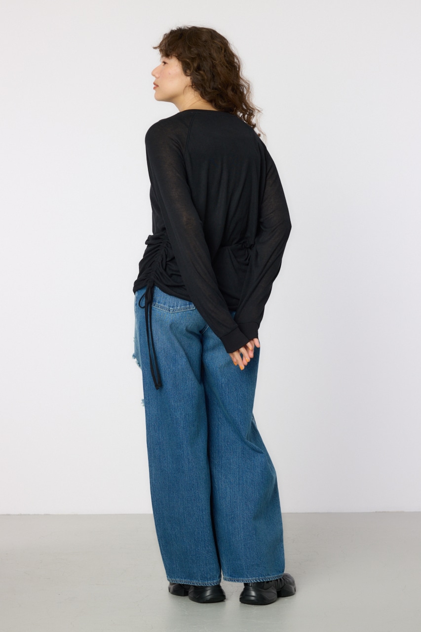 ベーシックなデザインながら、サイドにドロストをあしらいさりげないシルエットチェンジできる万能アイテム。