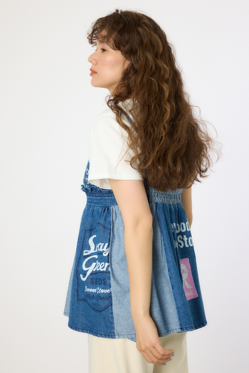 異なる生地を繋ぎ合わせたようなパッチワークデザインが目を惹く1枚です。
