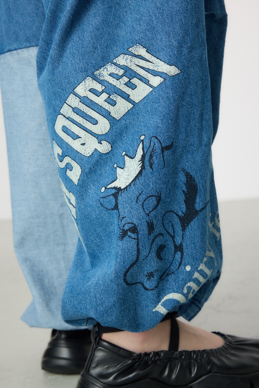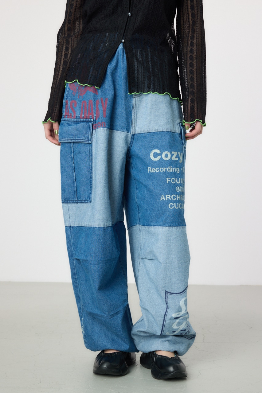 クロップドトップスと相性抜群のワイドシルエットで、裾に通したコードを絞ってアレンジが可能。