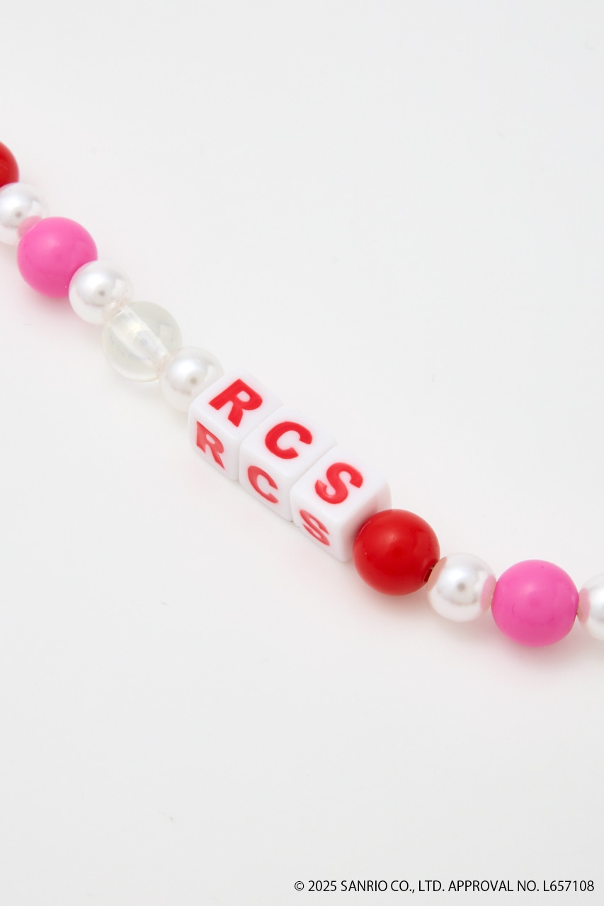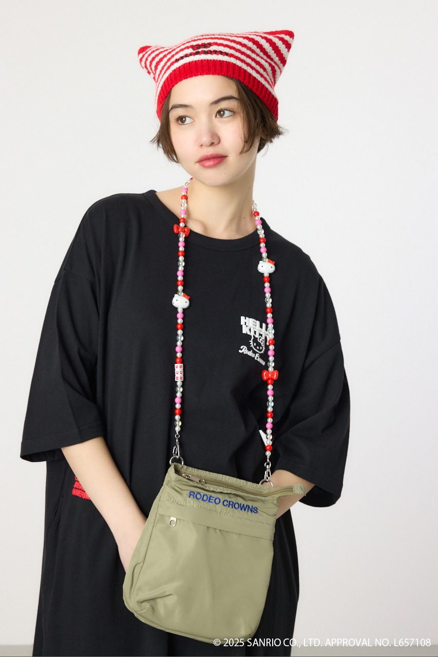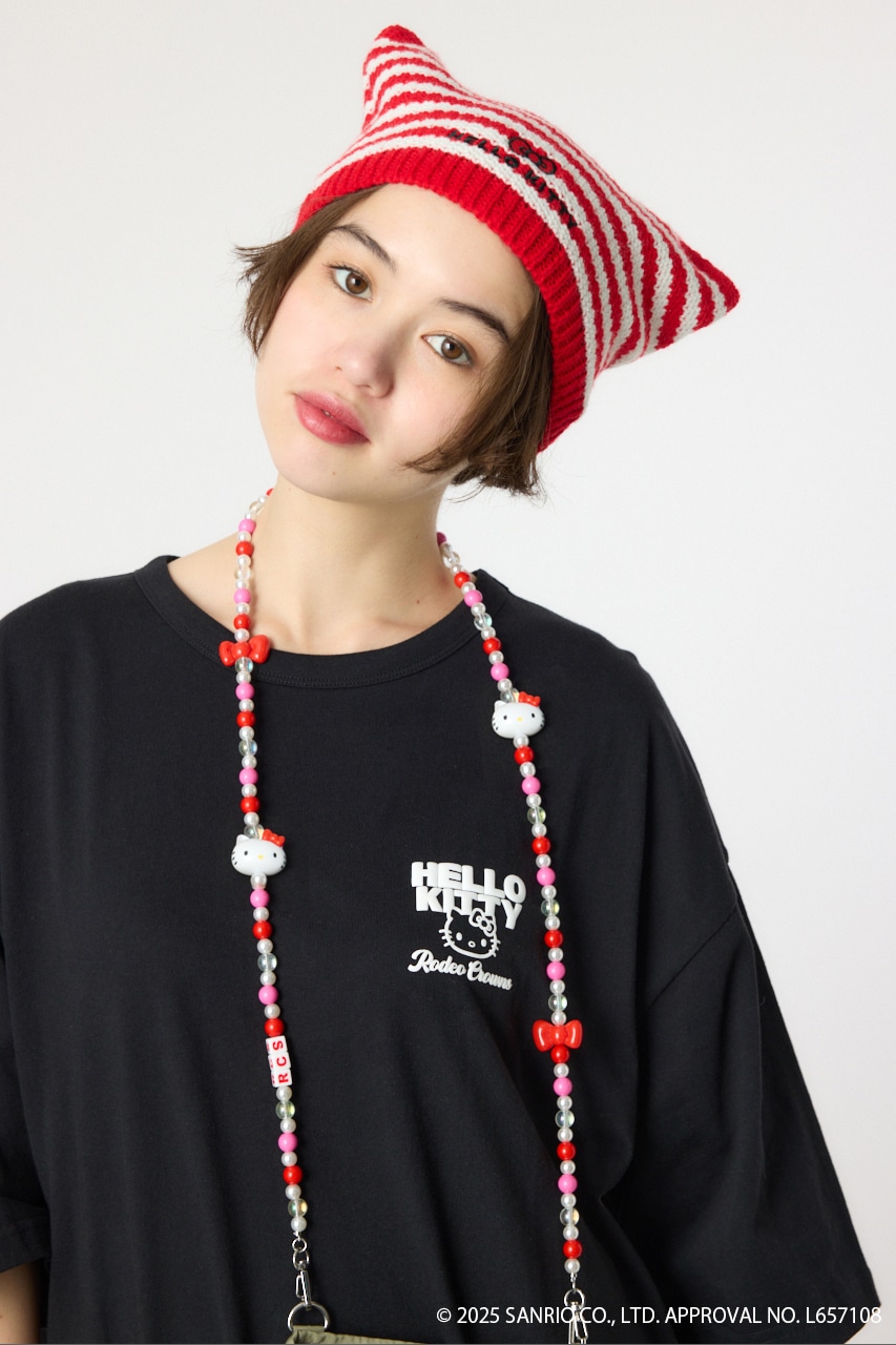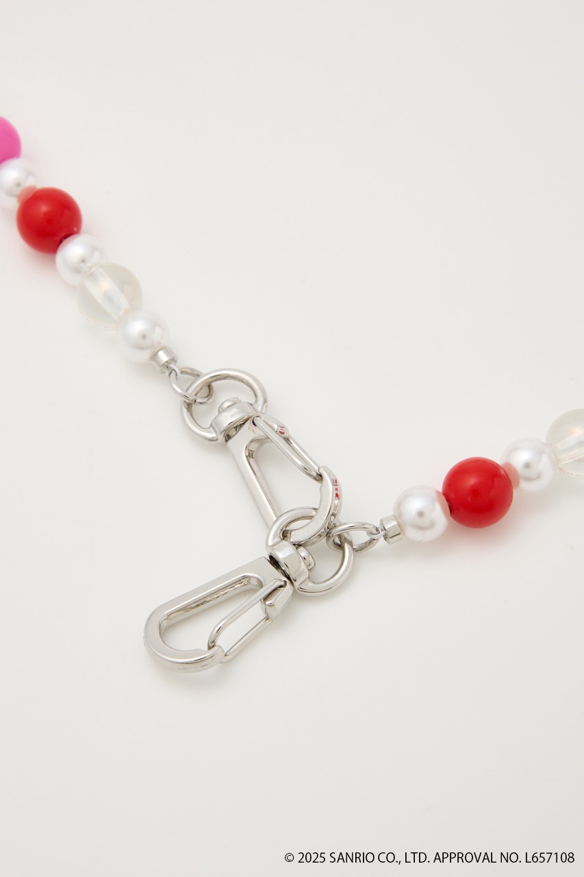 キティーとクロミモチーフのビーズが特徴で、ブランドパーツなどを組み合わせて可愛く仕上げたアイテム。