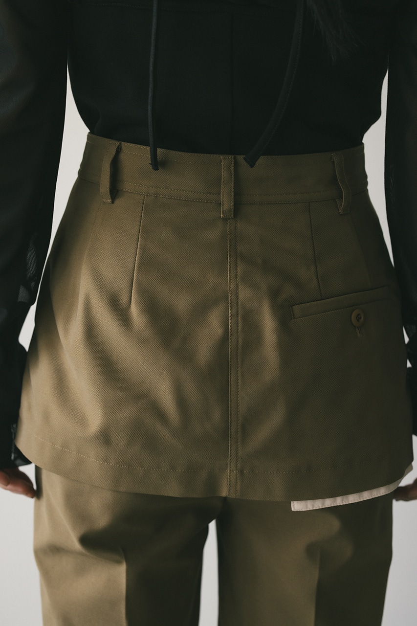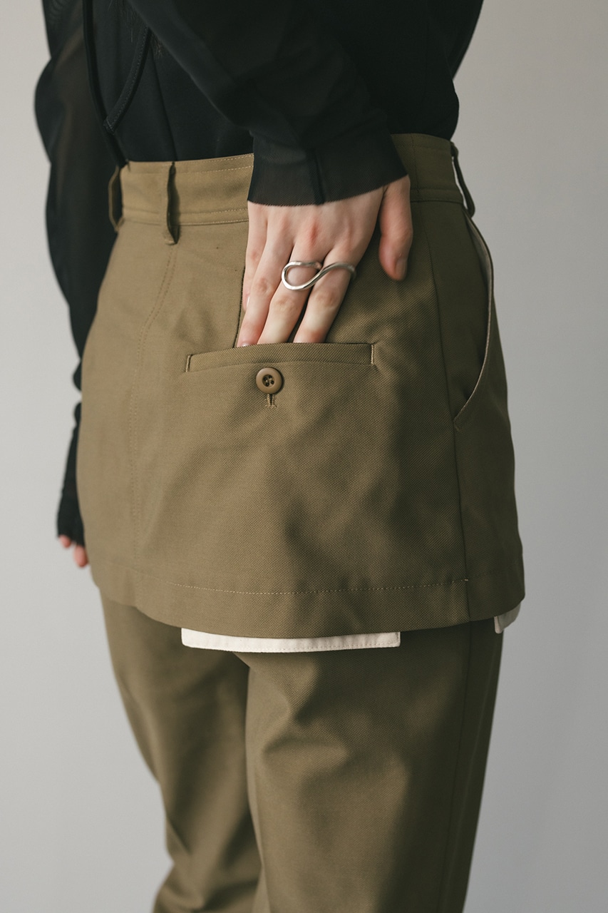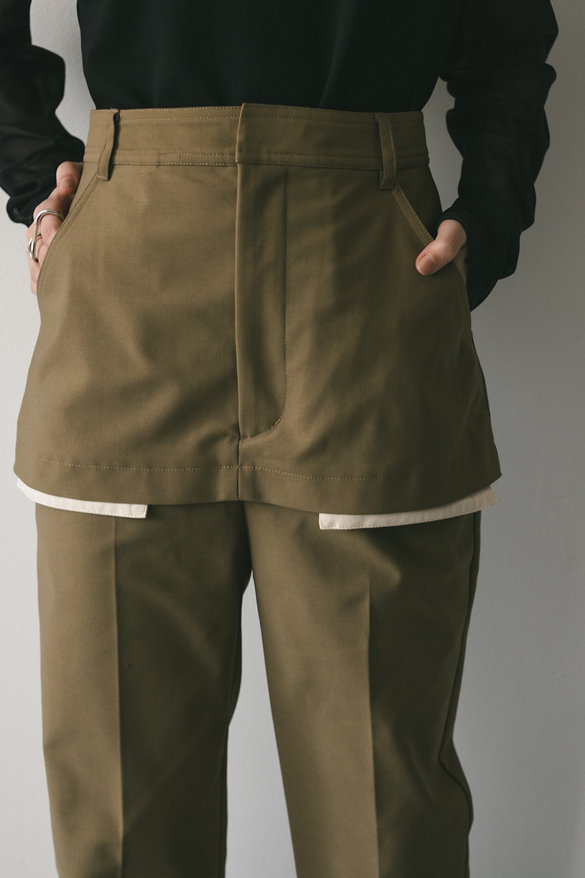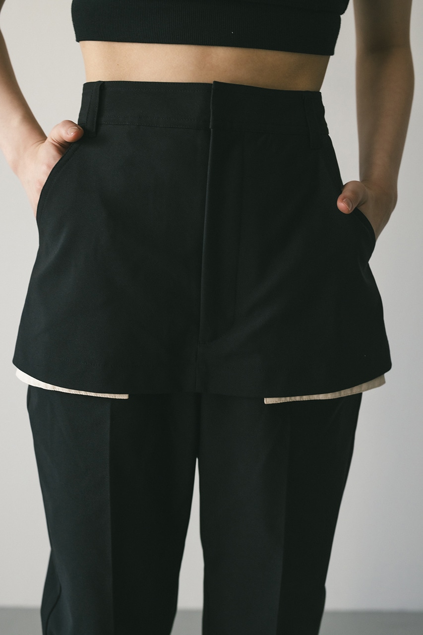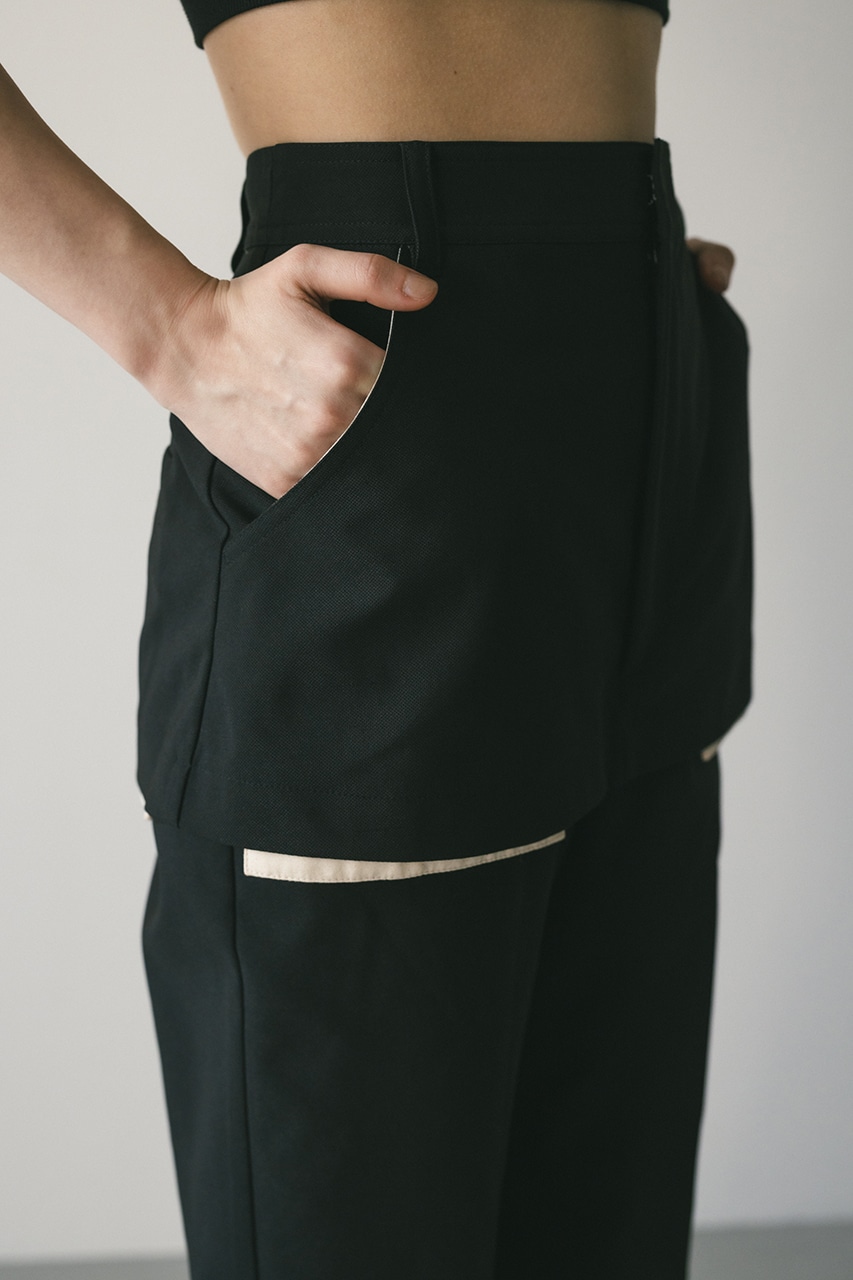 ショート丈レイヤーシルエットと魅せる袋布デザインがモードなトレンド感のあるパンツ。