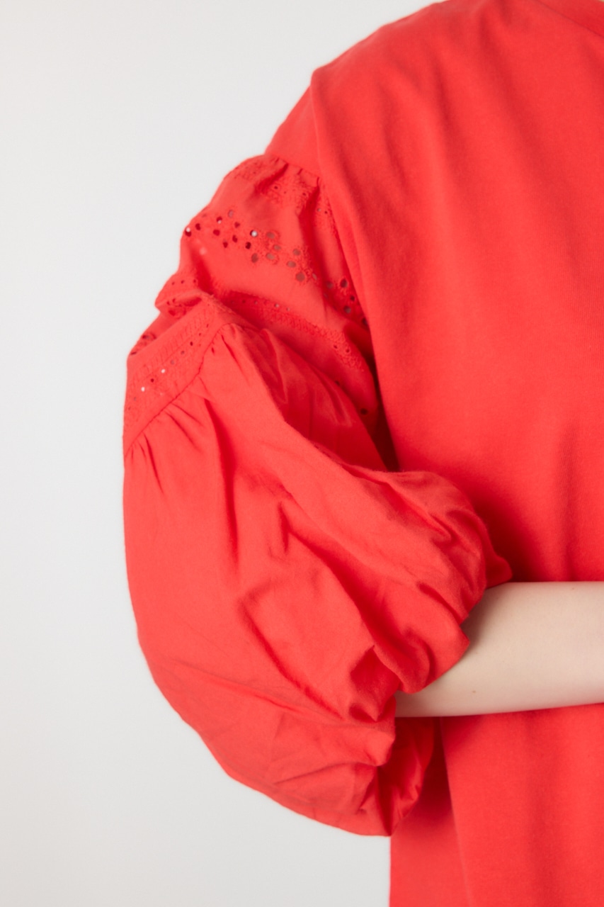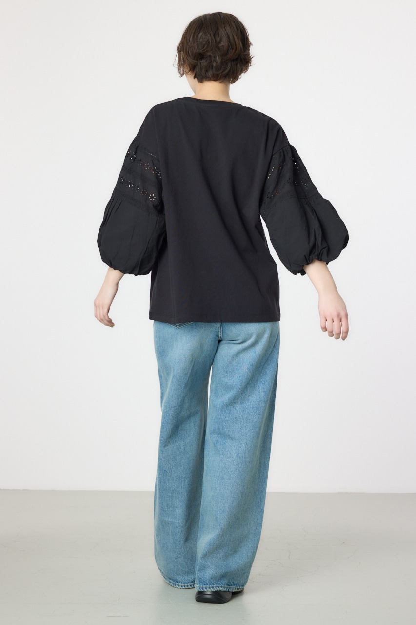 袖に布帛生地を使用してバルーンスリーブに仕上げたドッキングトップス。