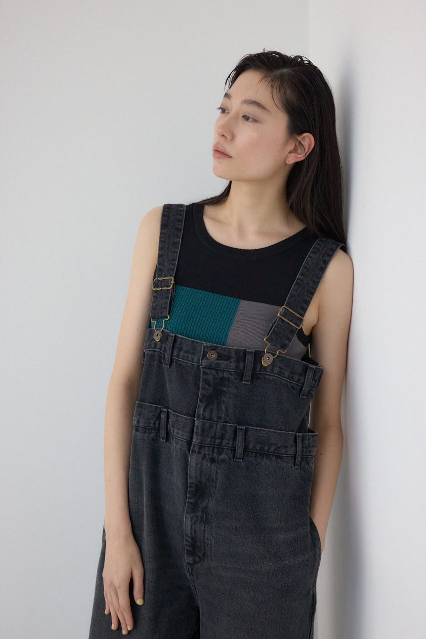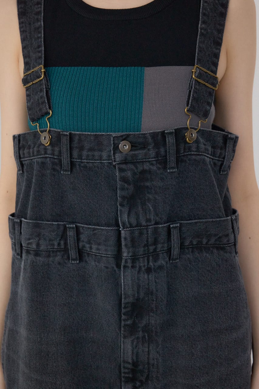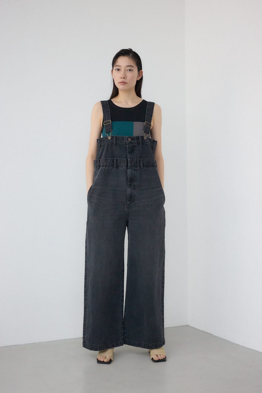 大胆なオーバーウエストがポイントのデニムサロペットです。