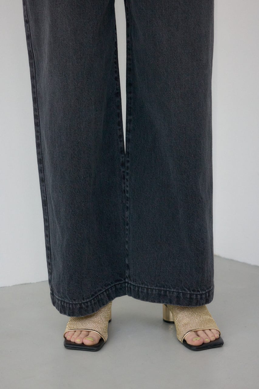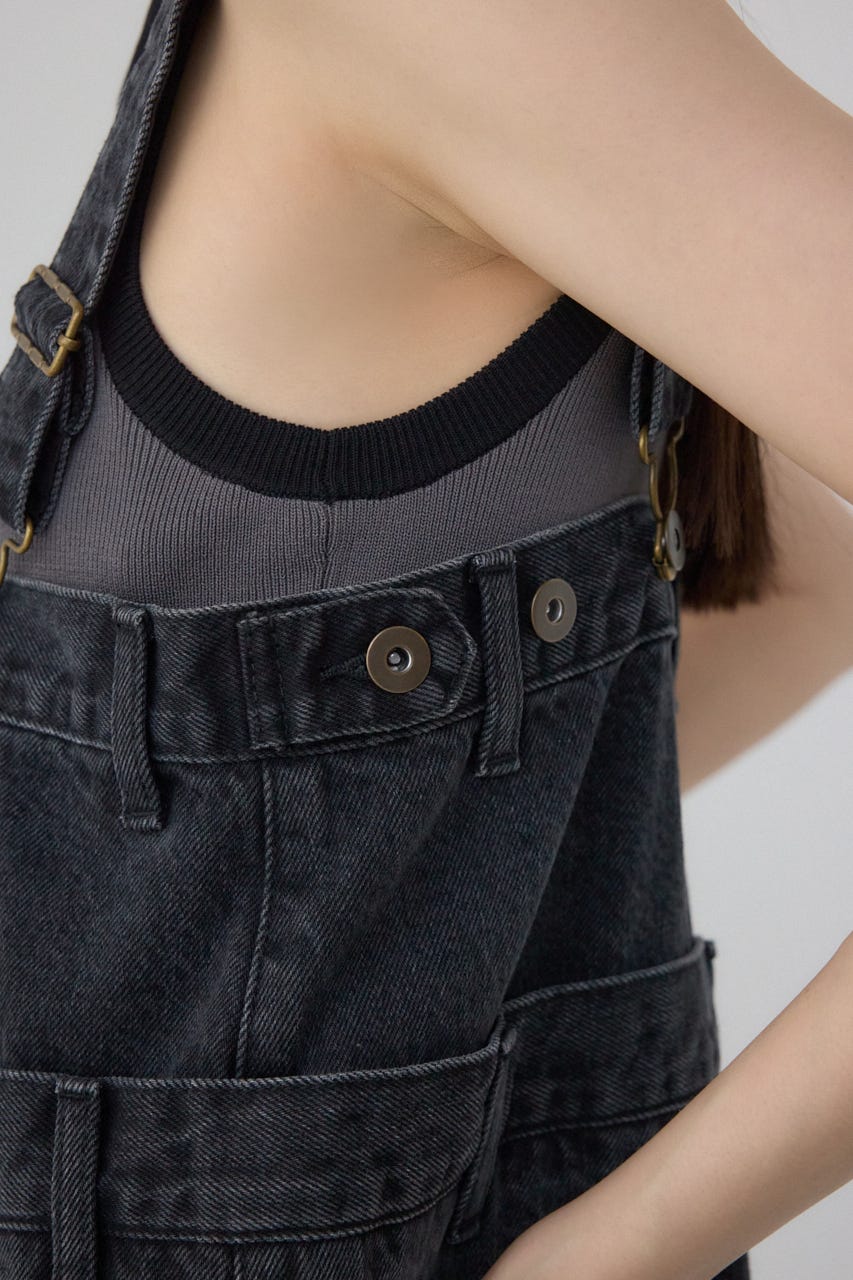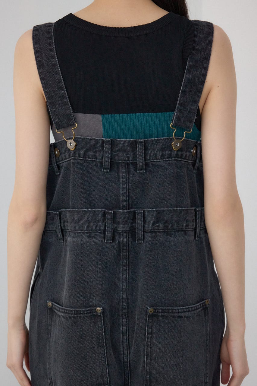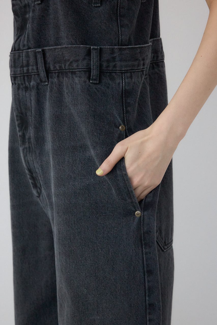 大胆なオーバーウエストがポイントのデニムサロペットです。