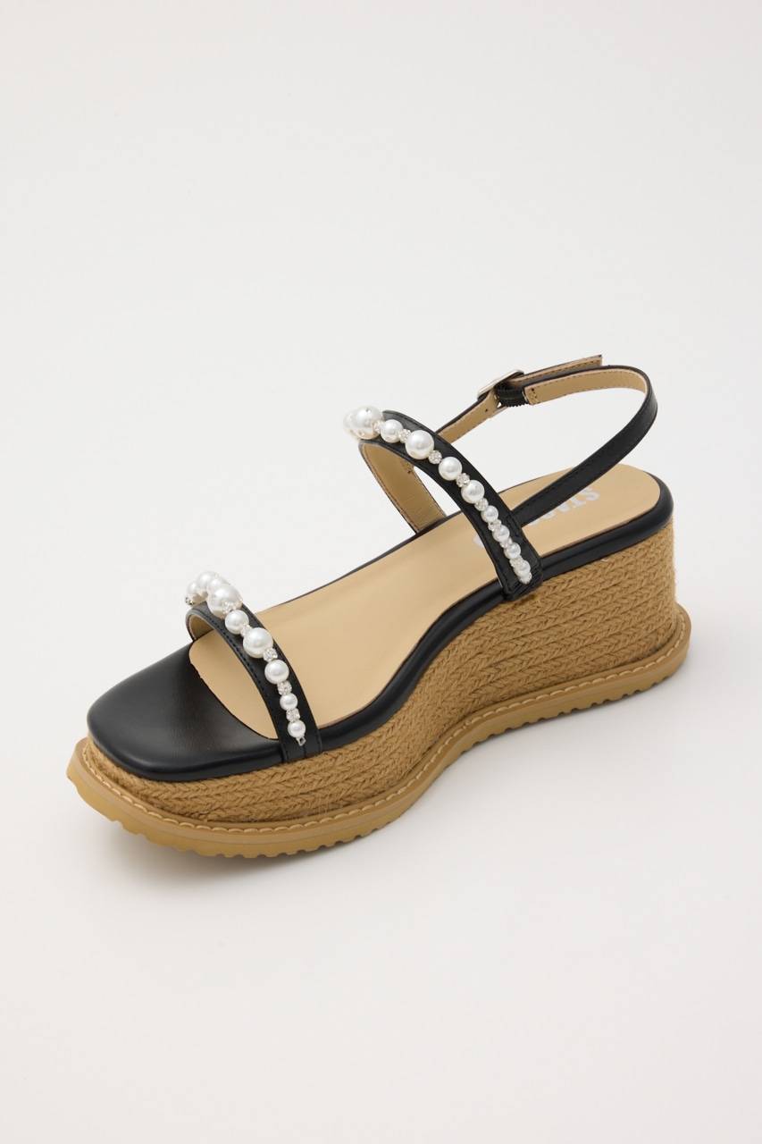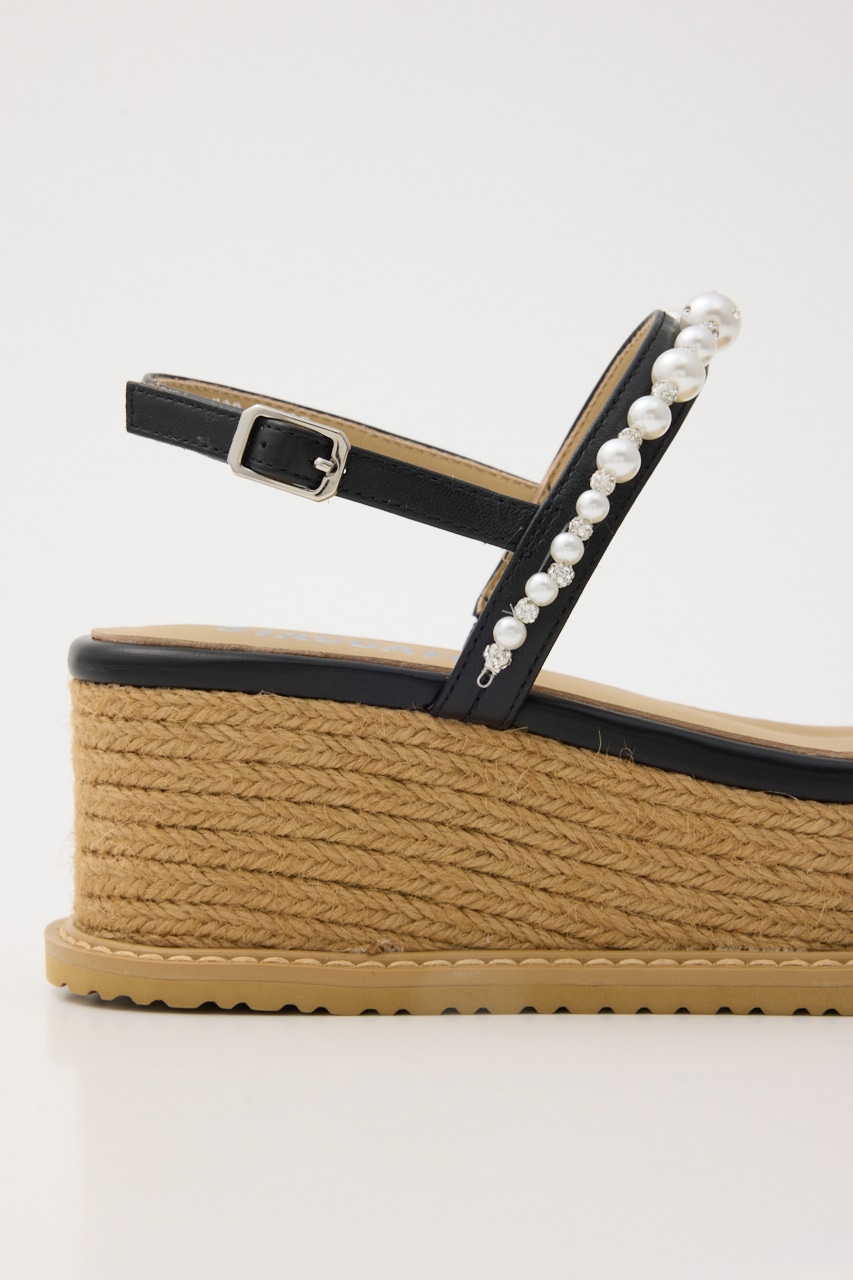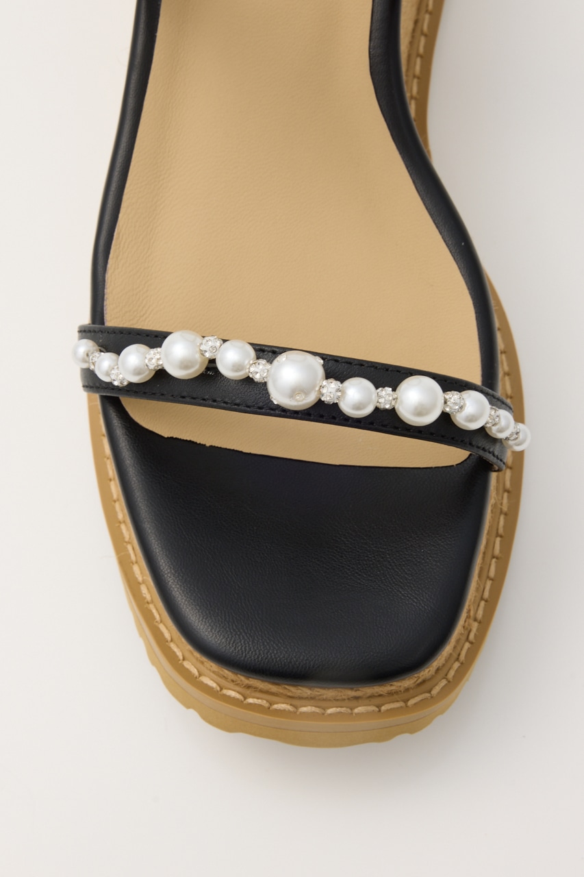 サマーバケーションにも備えたい。夏らしいジュートソールに上品かつ繊細なパール×ストーンベルトをデザインした、フェミニン&清涼感のあるサンダル。高低差が感じにくいのでプラットフォーム感覚で履いていただけます。