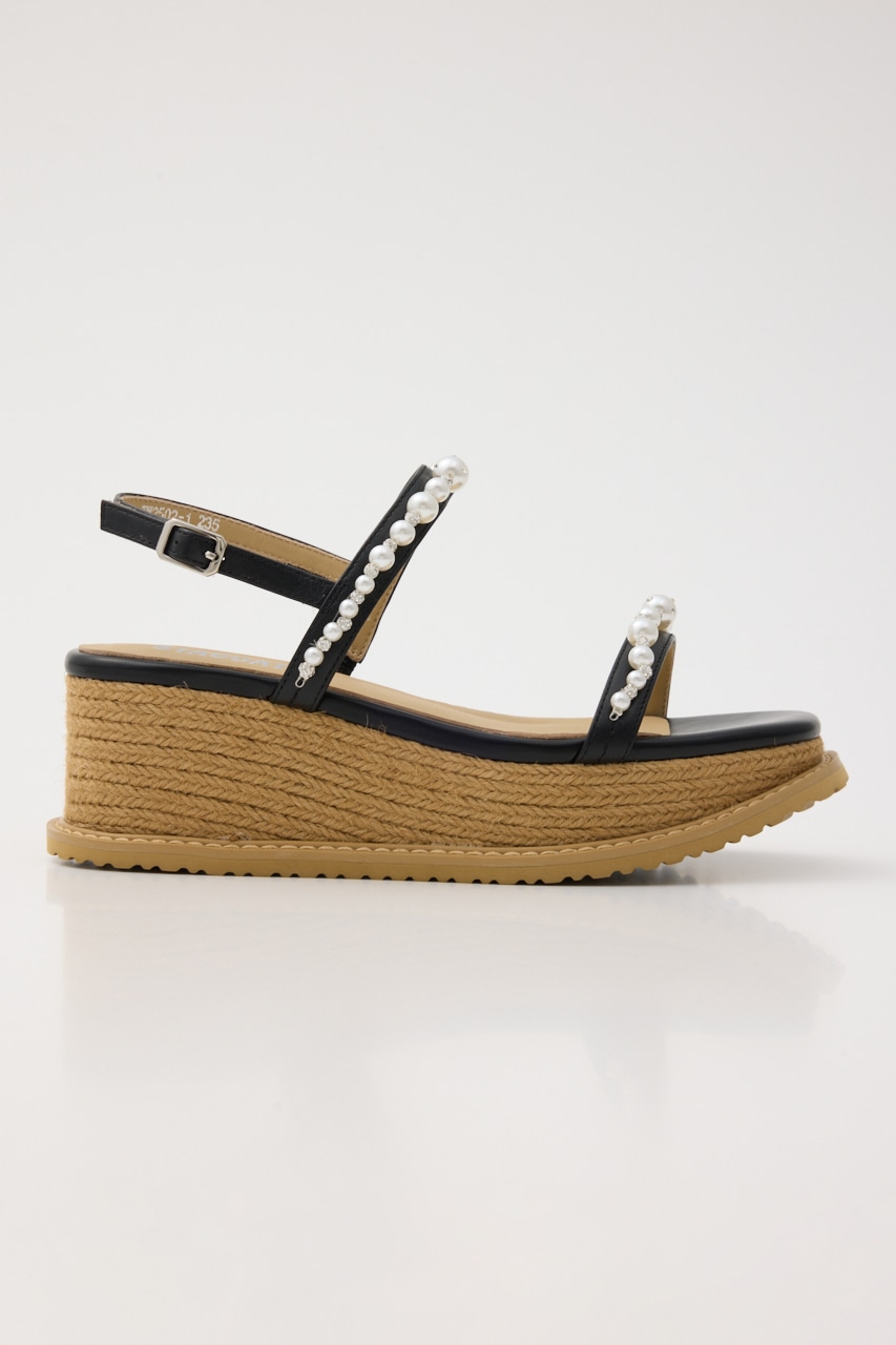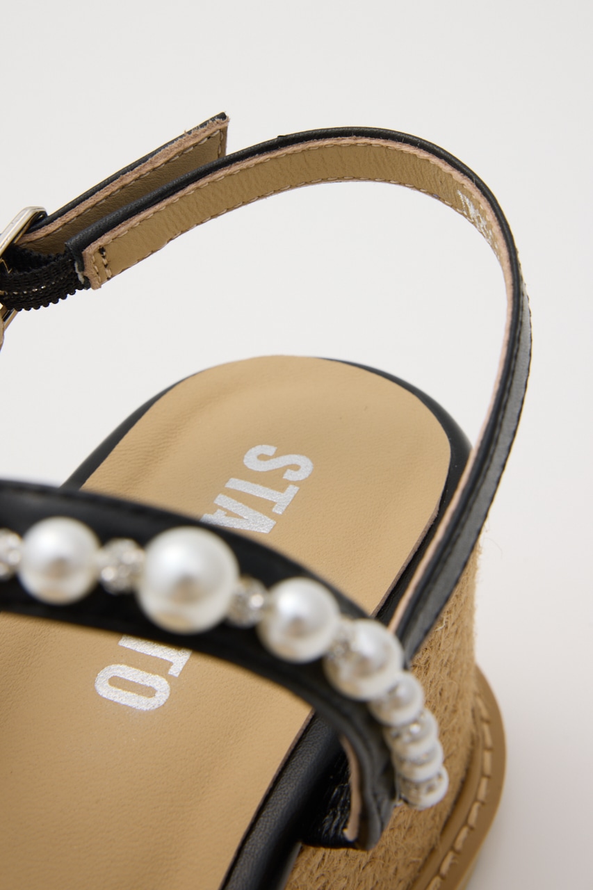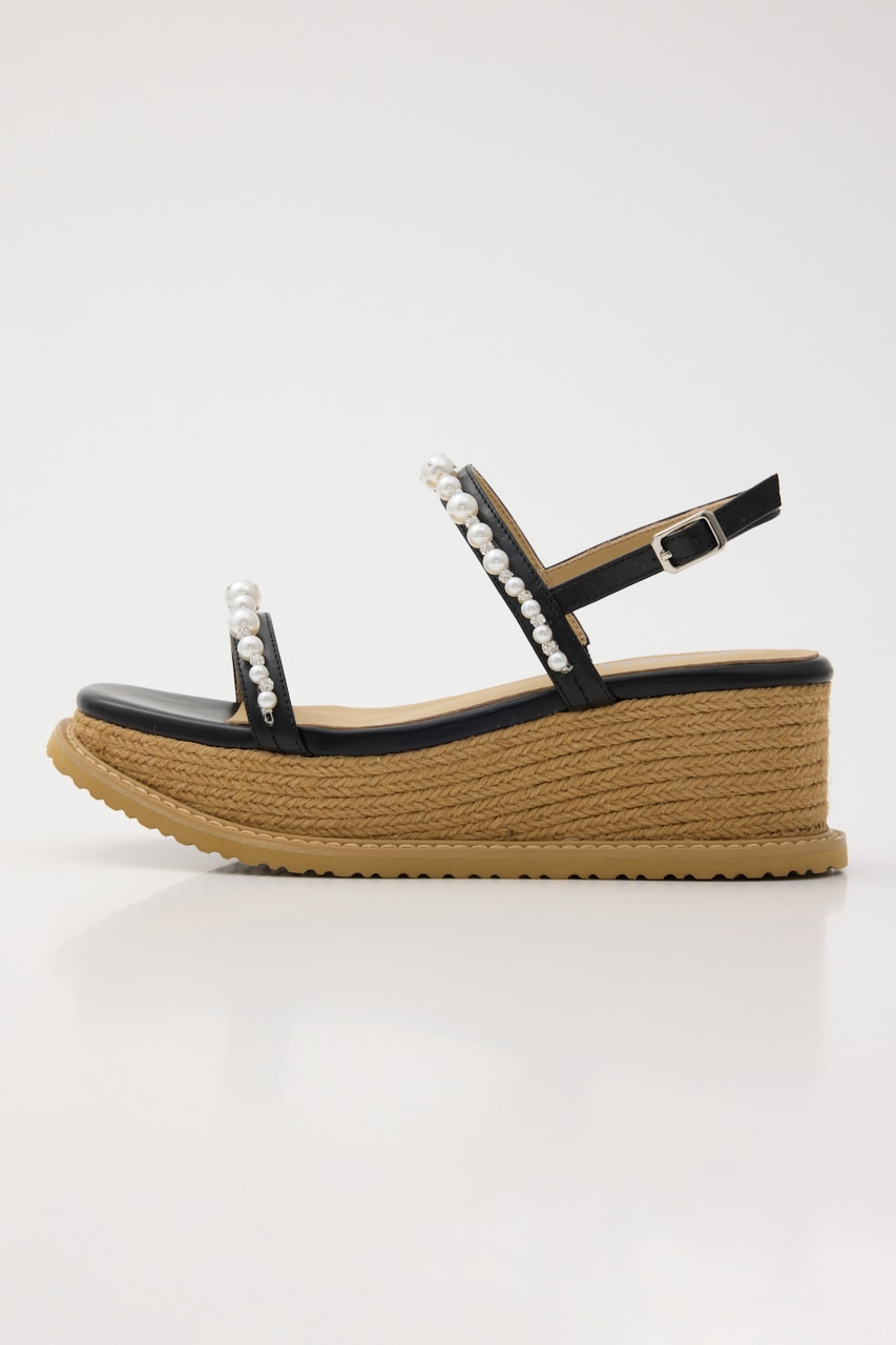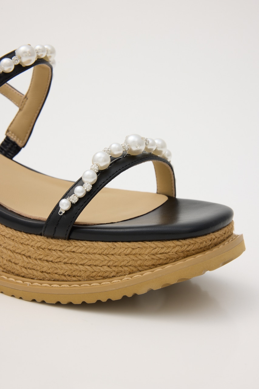 サマーバケーションにも備えたい。夏らしいジュートソールに上品かつ繊細なパール×ストーンベルトをデザインした、フェミニン&清涼感のあるサンダル。高低差が感じにくいのでプラットフォーム感覚で履いていただけます。