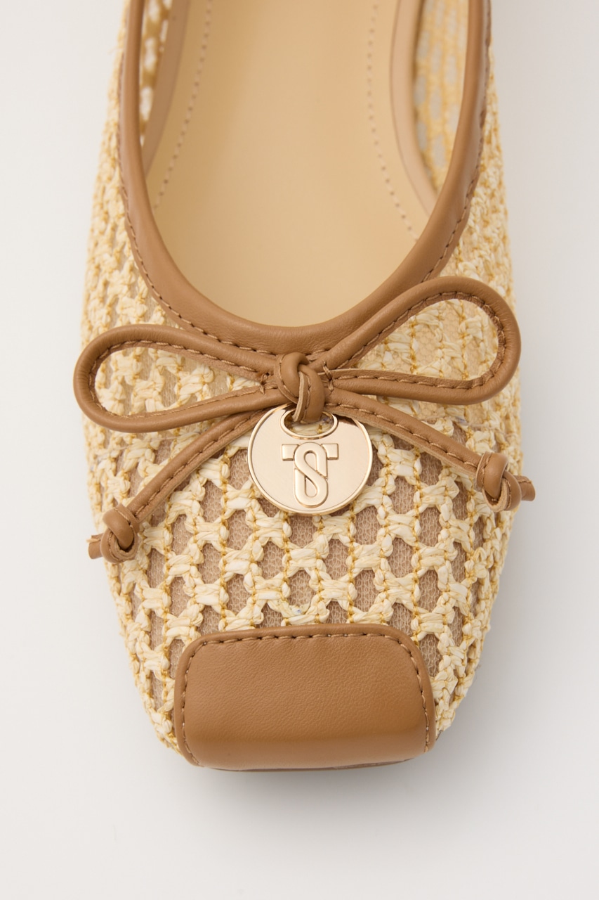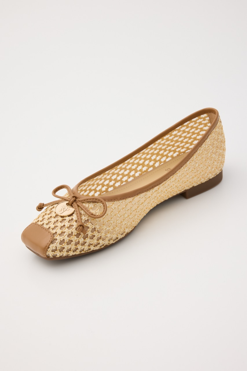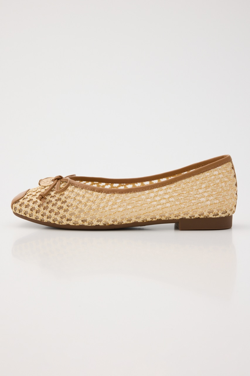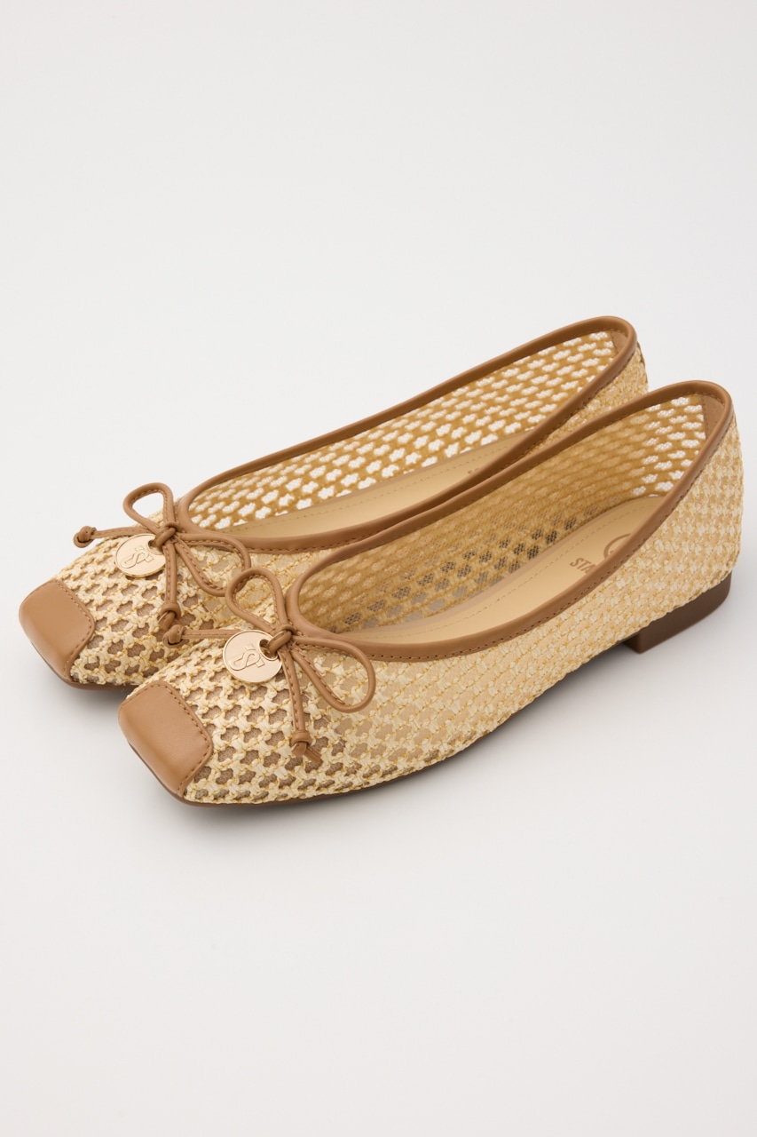 春夏に重宝する涼し気な軽量フラットシューズ。さらっと履けるキュートなデザインの抜け感のある、編み込み風デザインの2重メッシュ構造。リボン部分にはレトロなコインプレートもポイントです。ワンピースからカジュアルなパンツスタイルにもおすすめです。