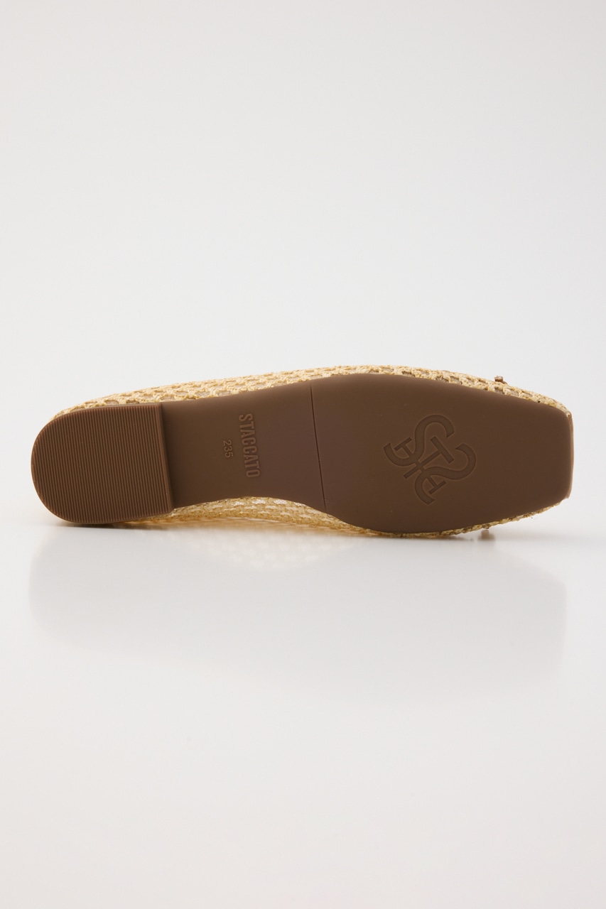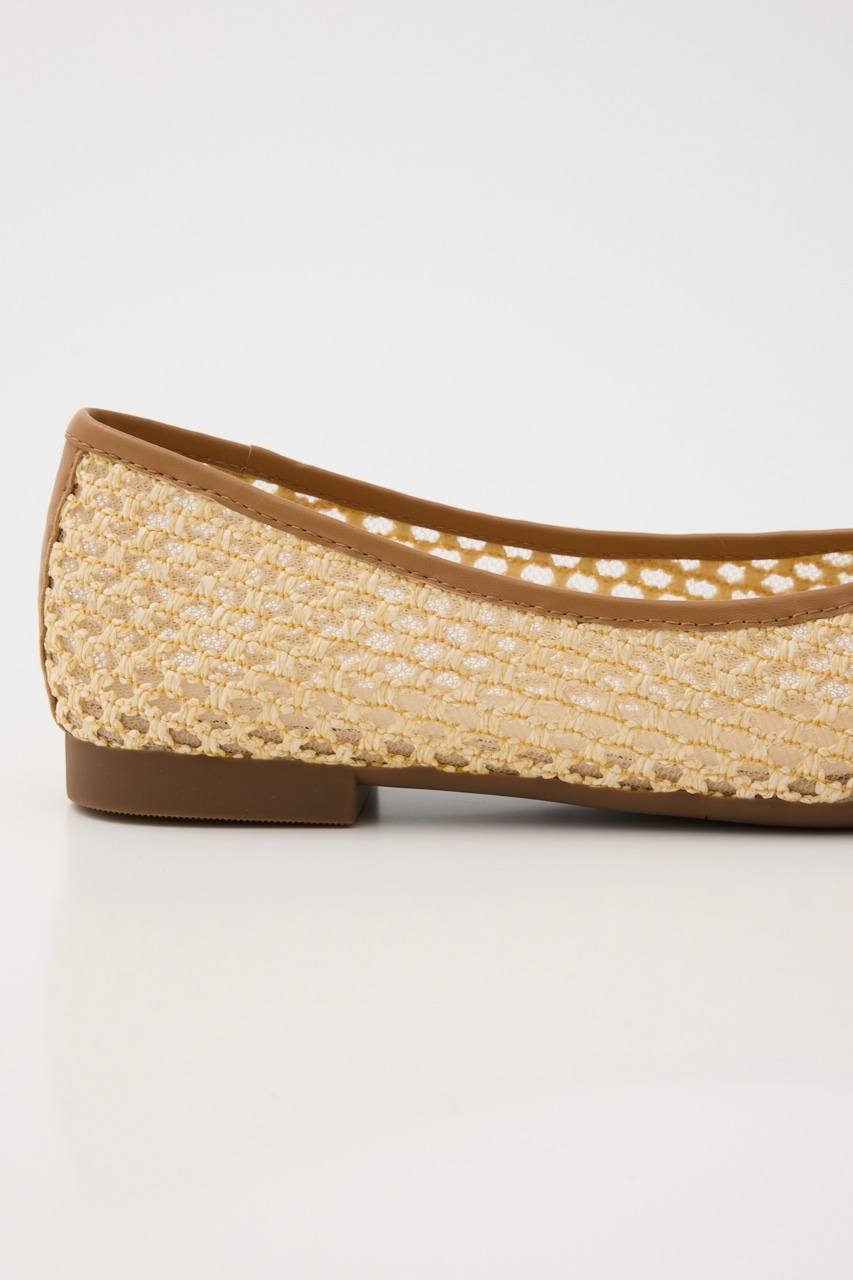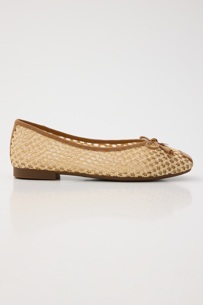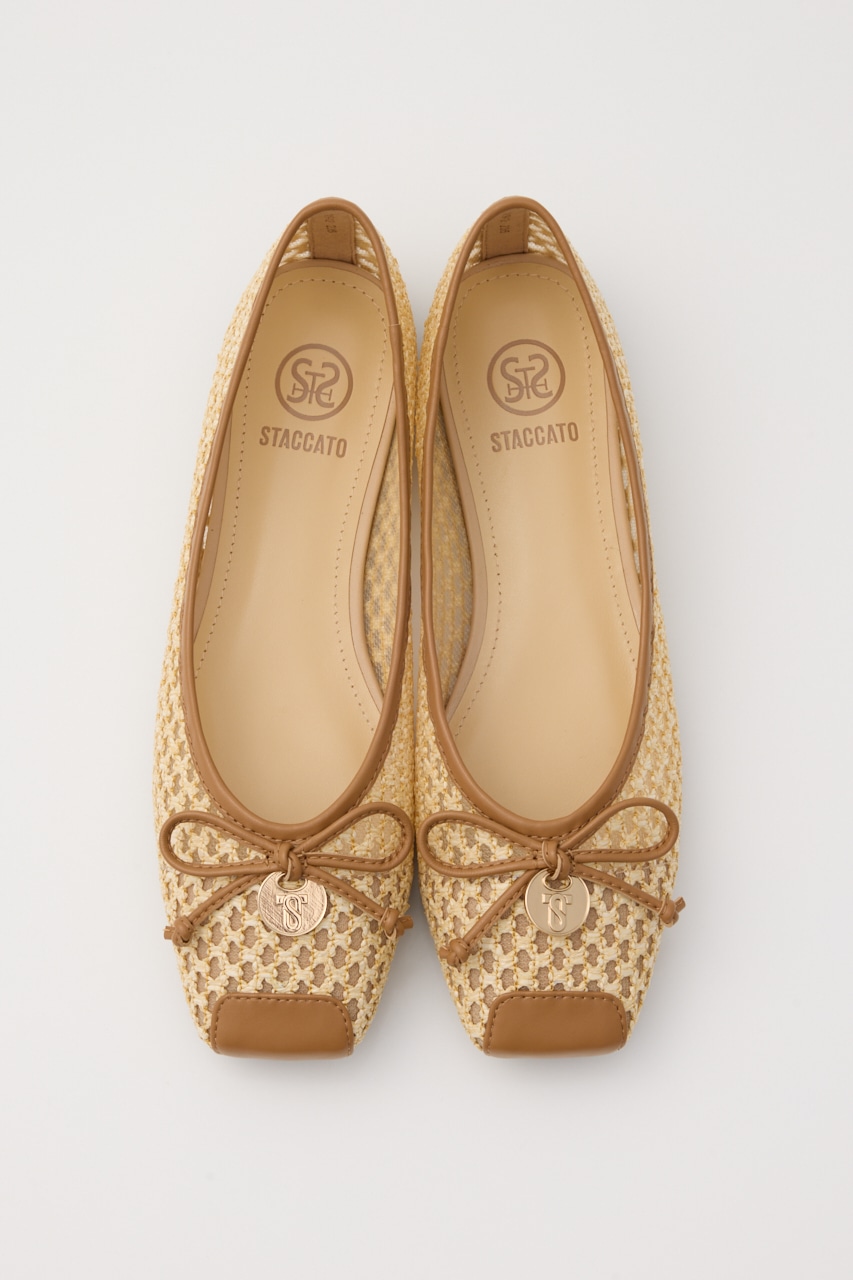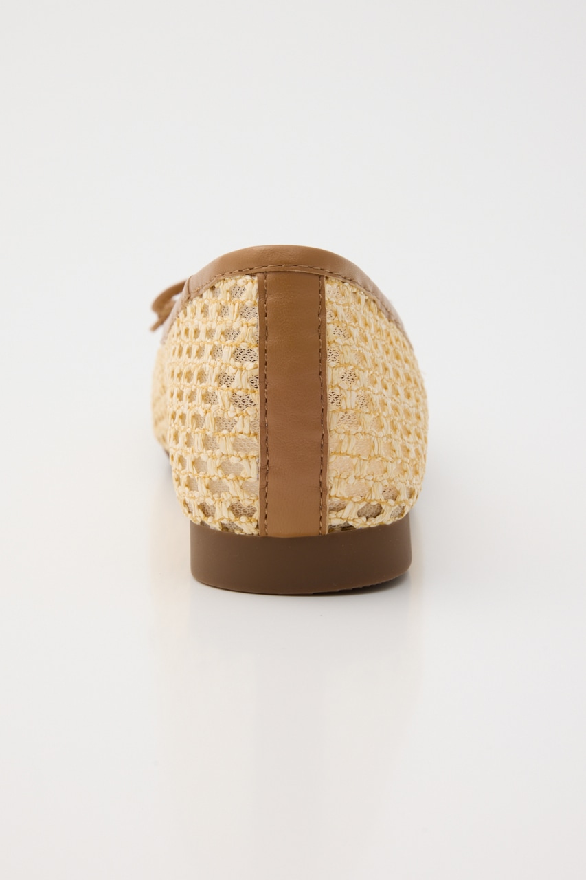 春夏に重宝する涼し気な軽量フラットシューズ。さらっと履けるキュートなデザインの抜け感のある、編み込み風デザインの2重メッシュ構造。リボン部分にはレトロなコインプレートもポイントです。ワンピースからカジュアルなパンツスタイルにもおすすめです。