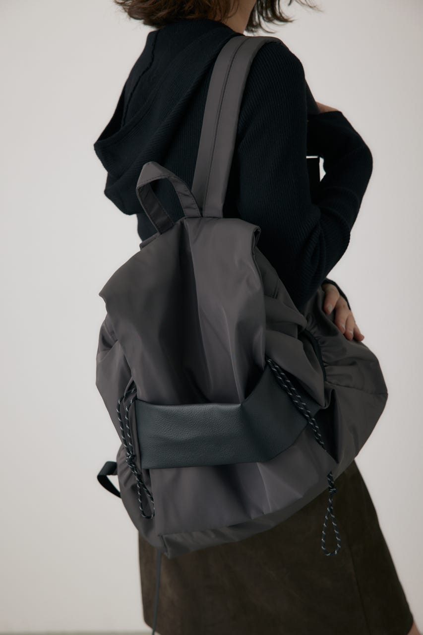 ボディにはナイロン素材を使用しており、合皮素材とのコンビにすることでカジュアルになり過ぎずに、大人っぽく持っていただけます。