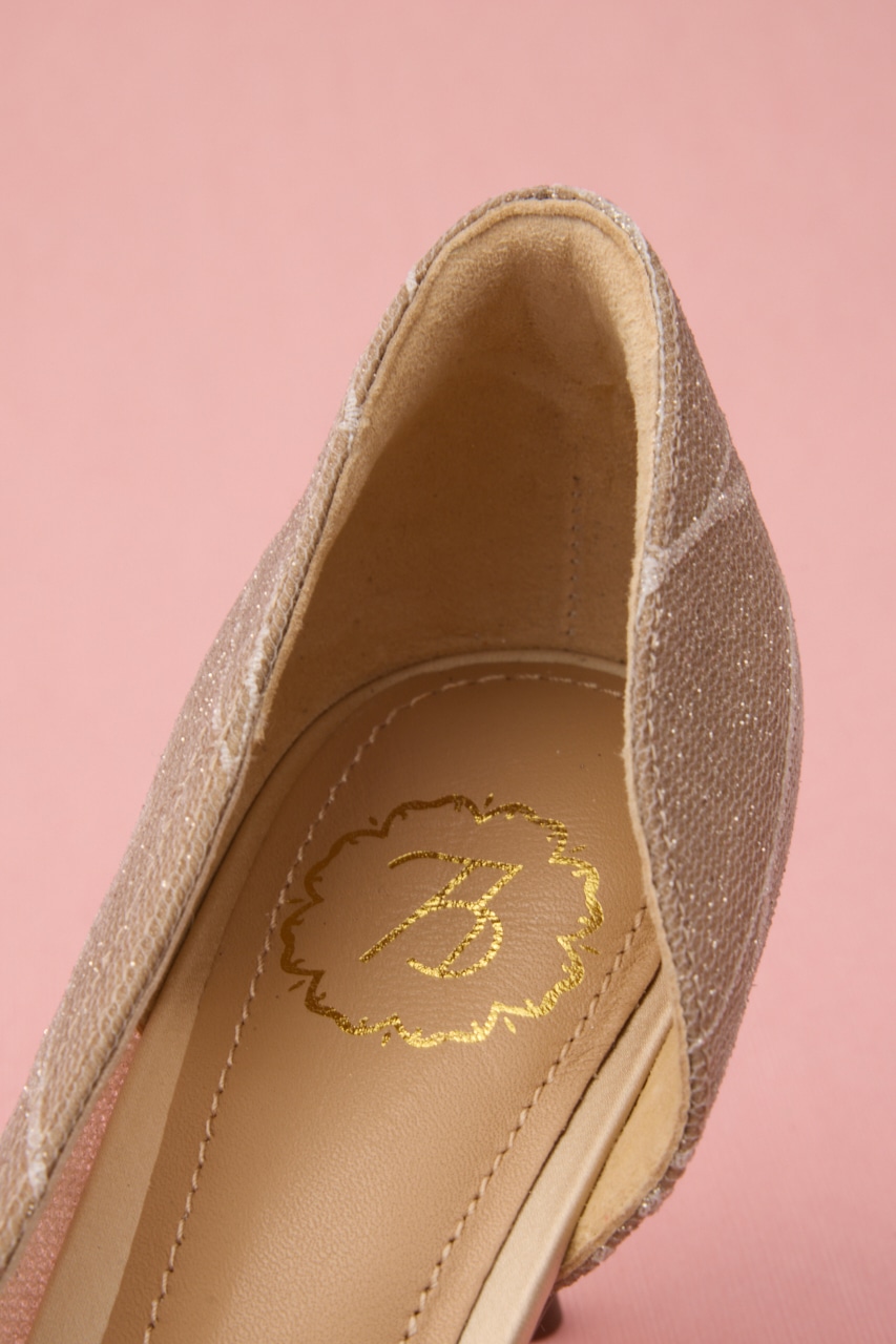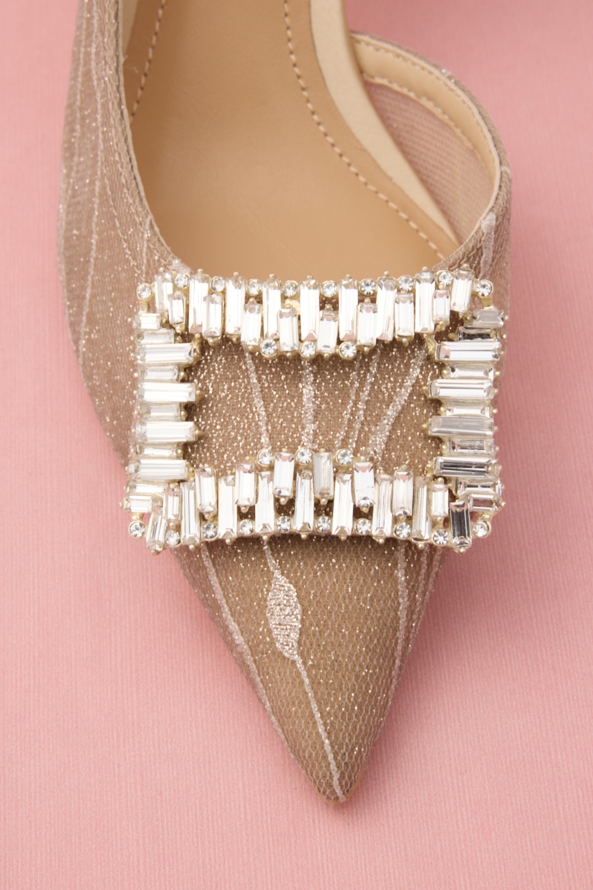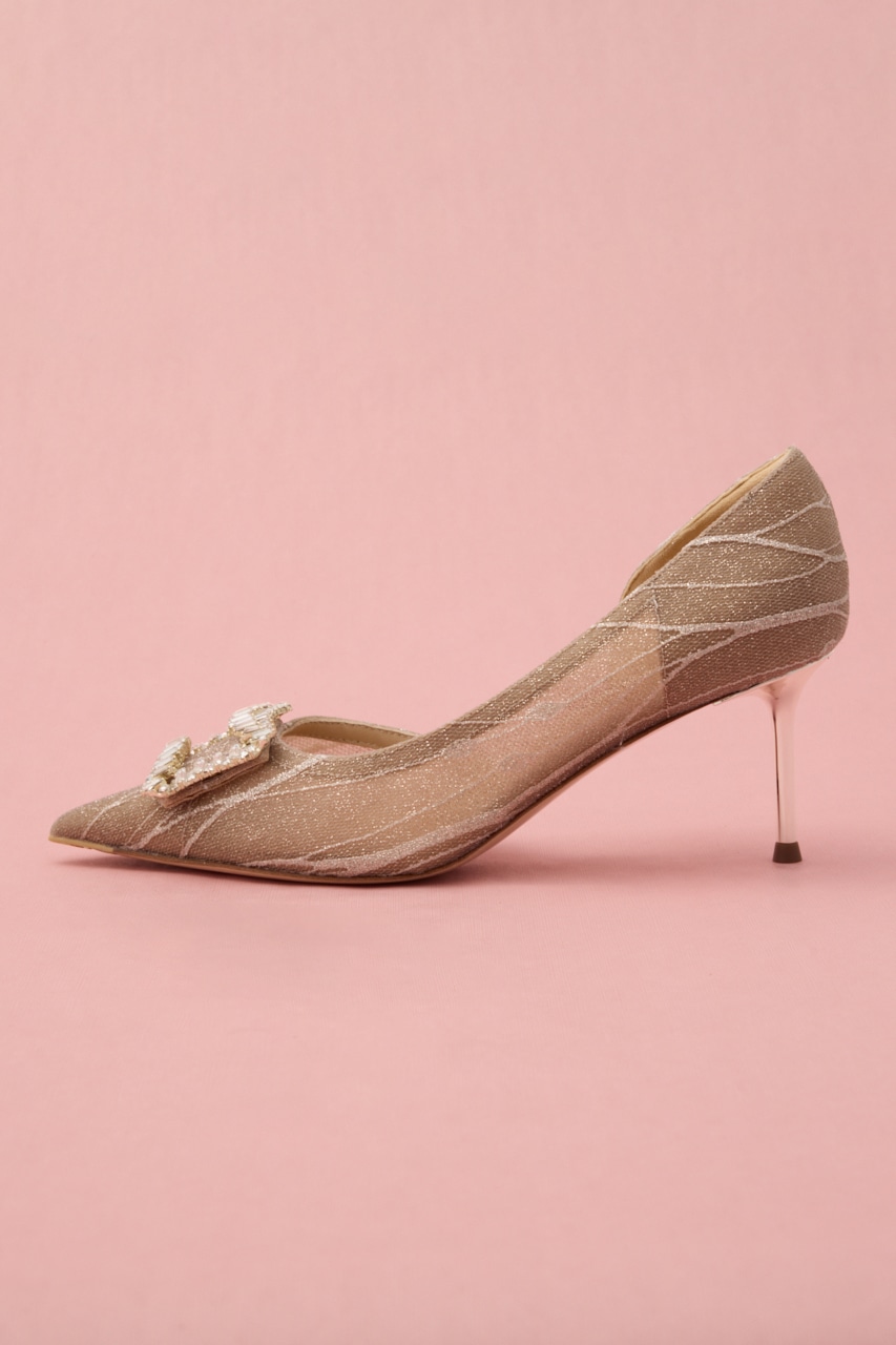 艶っぽさと妖艶さを感じるピンヒールパンプス。サイドカットが程よくセクシーに、流麗なデザインにラメ感あるメッシュ地が足元にぬけ感を出してくれます。