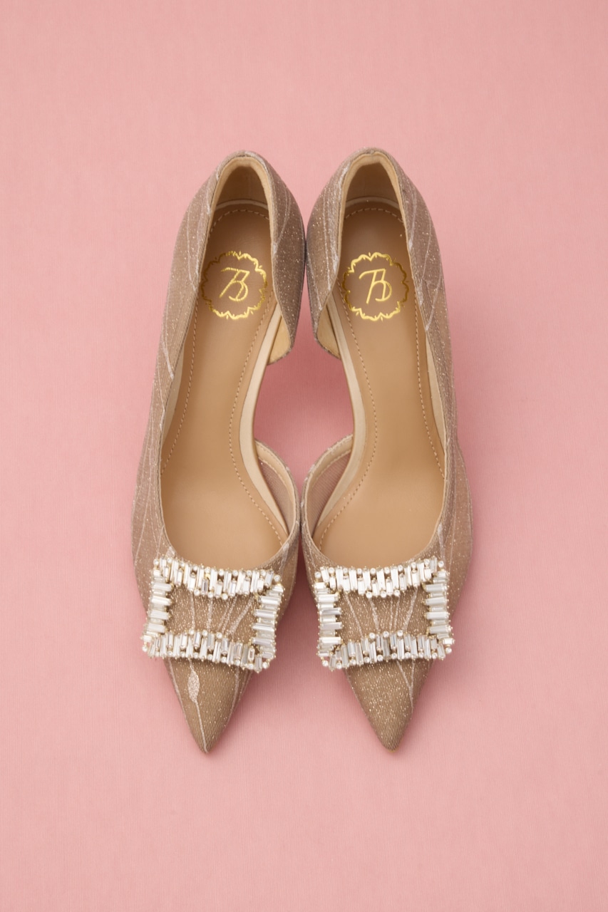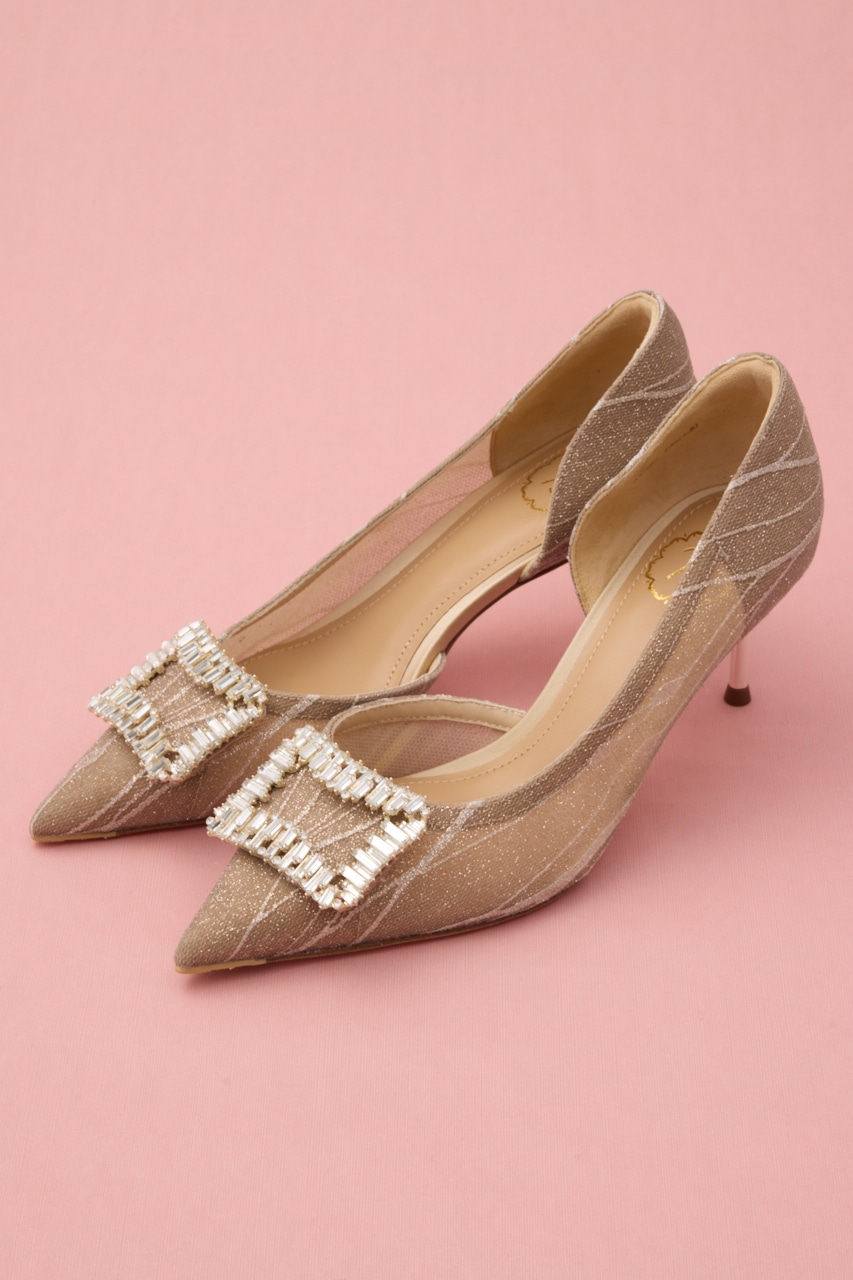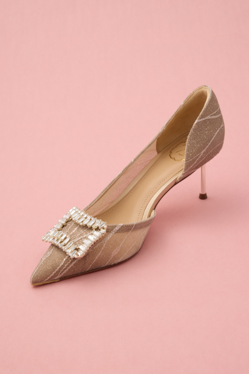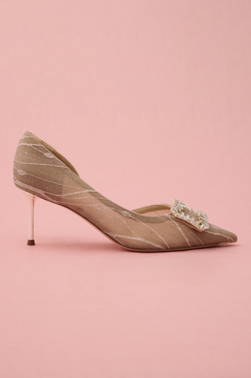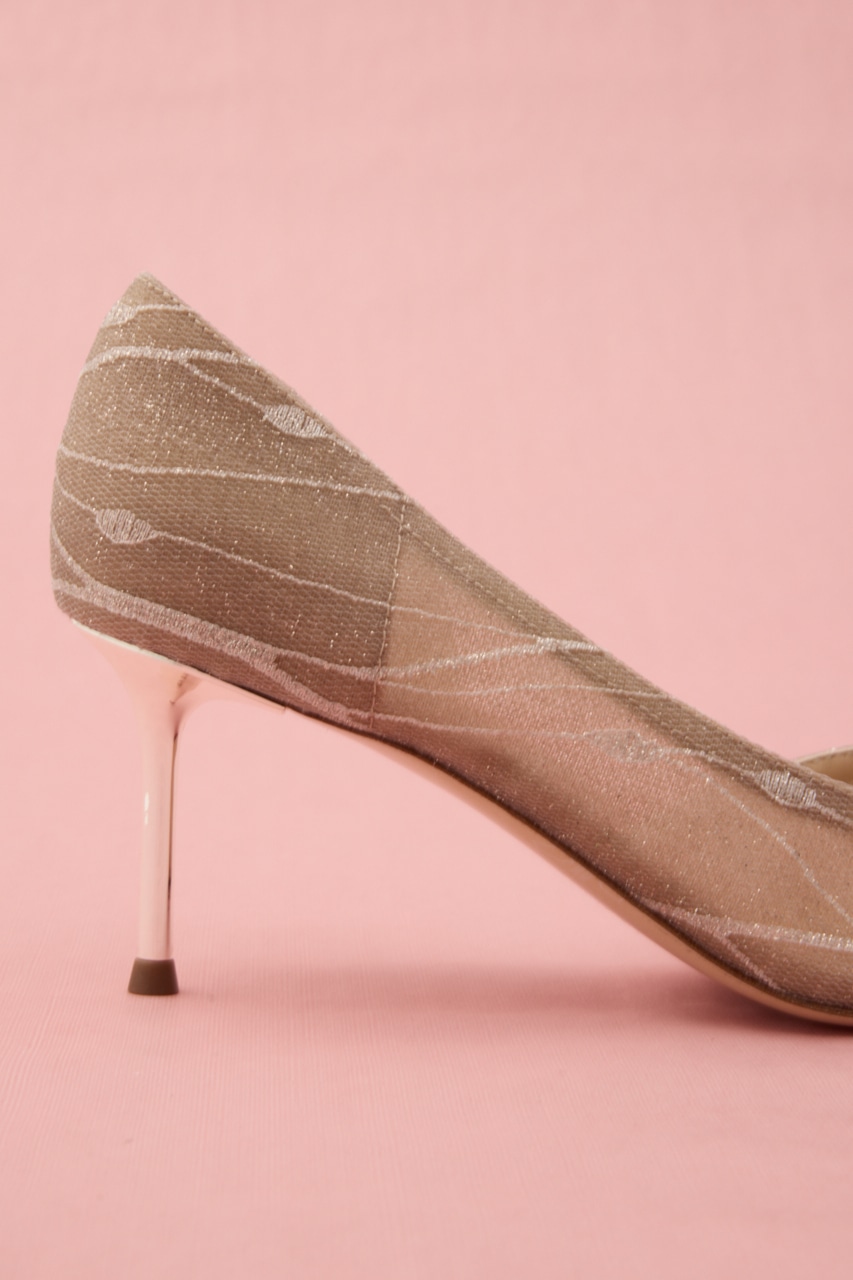 艶っぽさと妖艶さを感じるピンヒールパンプス。サイドカットが程よくセクシーに、流麗なデザインにラメ感あるメッシュ地が足元にぬけ感を出してくれます。