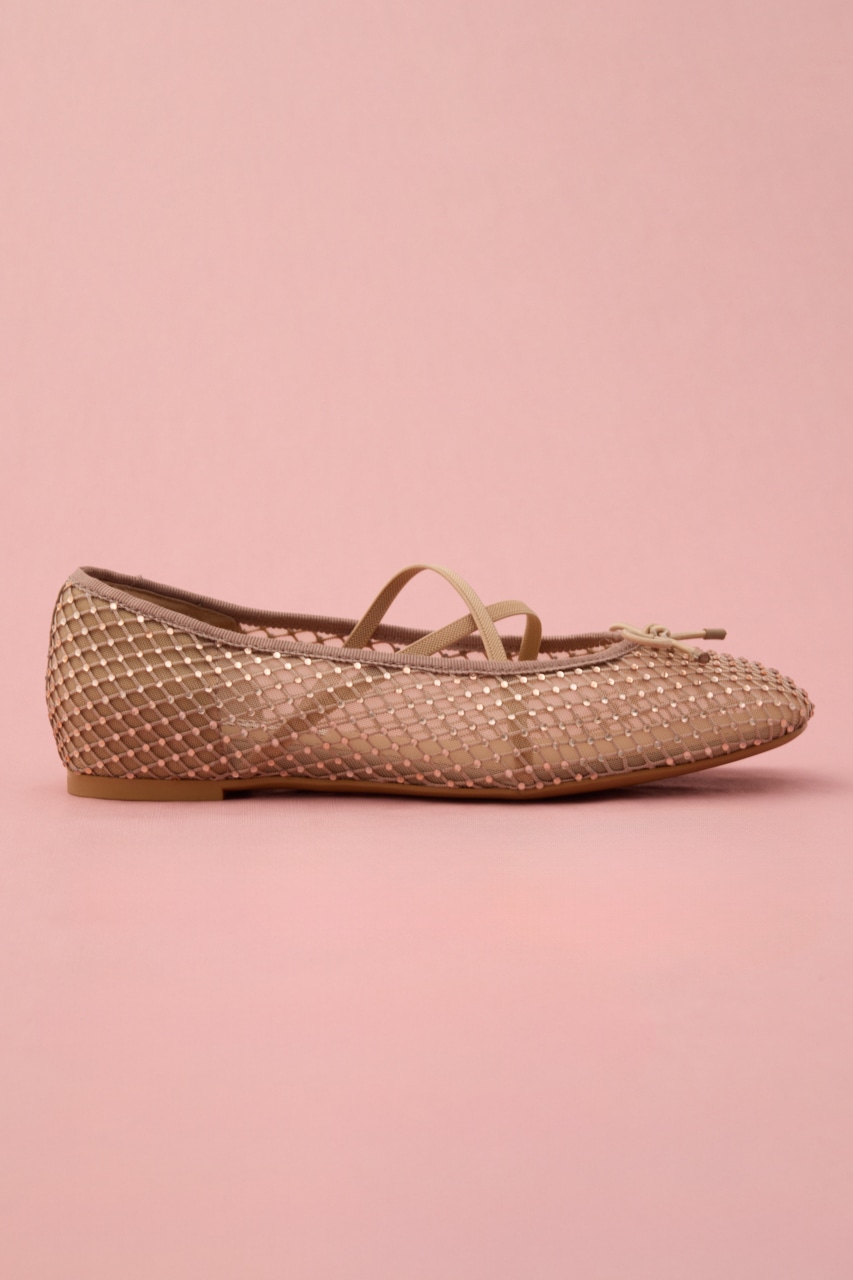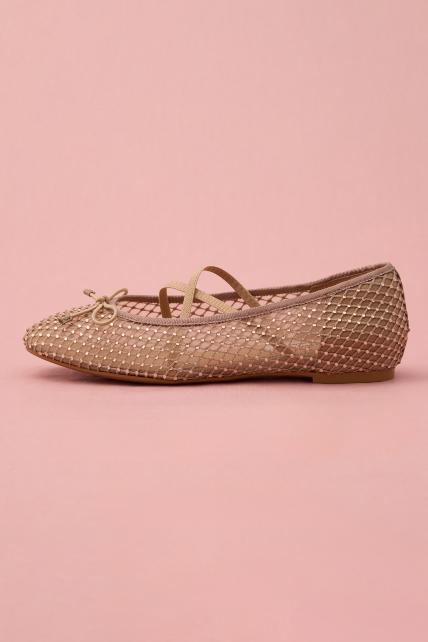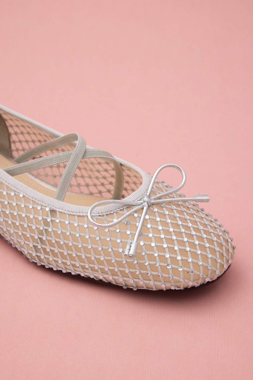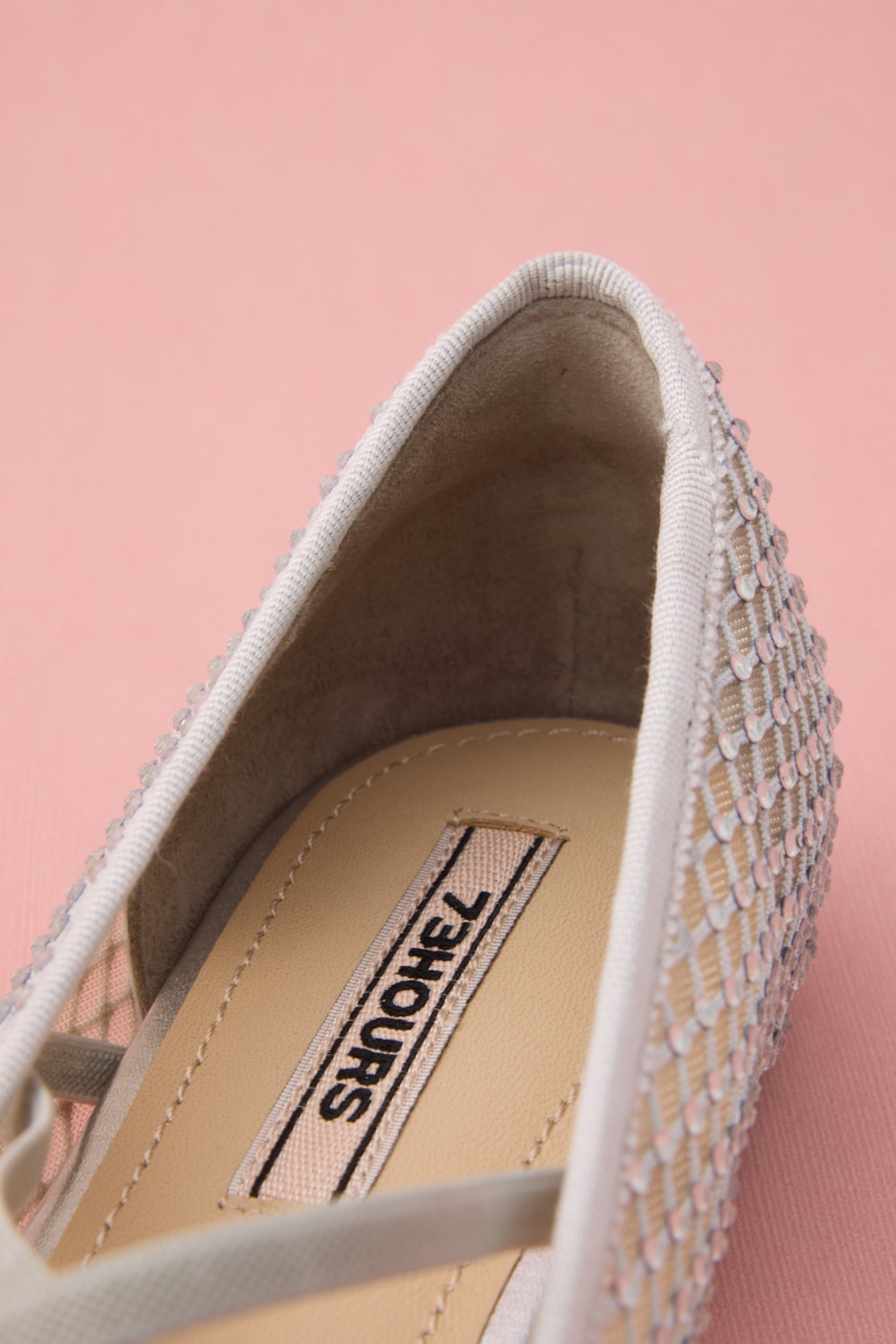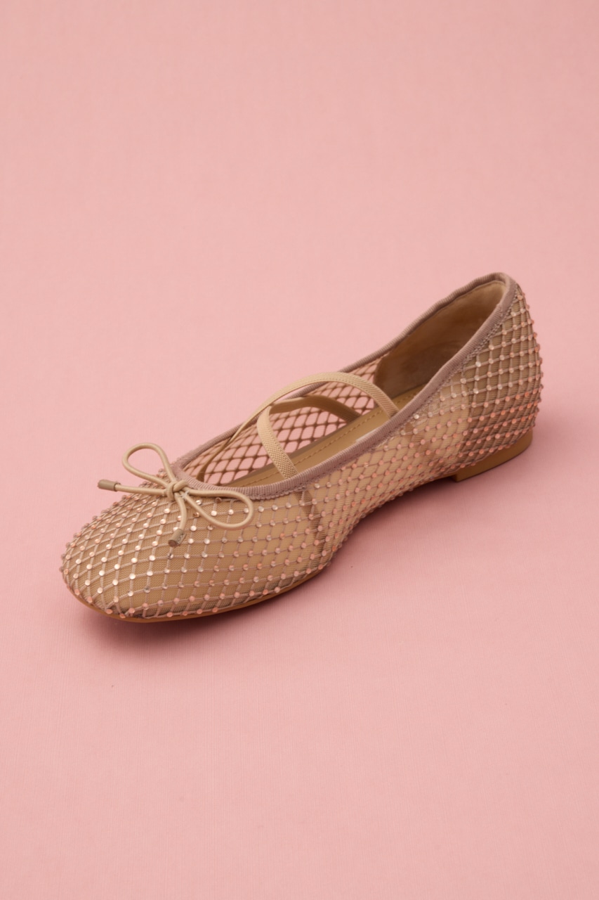 フィッシュネット地に1粒ずつストーンをほどこした、大人かわいい軽量バレリーナシューズ。さらっとしてぬけ感のあるメッシュ地なので、春夏の足元に◎クロスベルトで甲を安定させてくれるのも嬉しいポイントです。