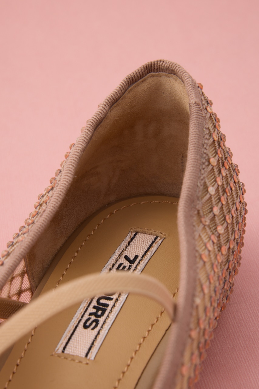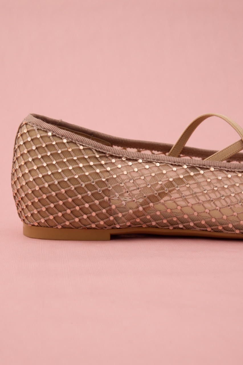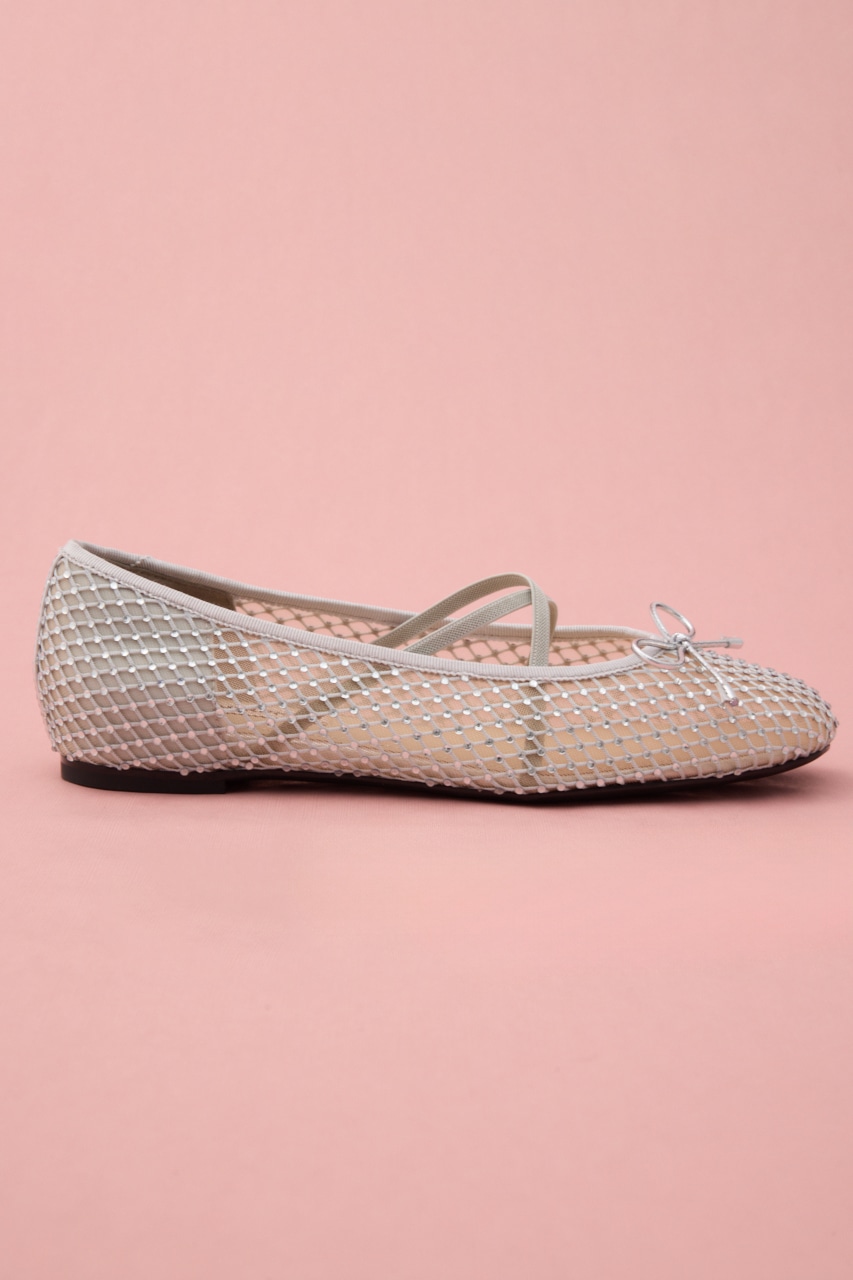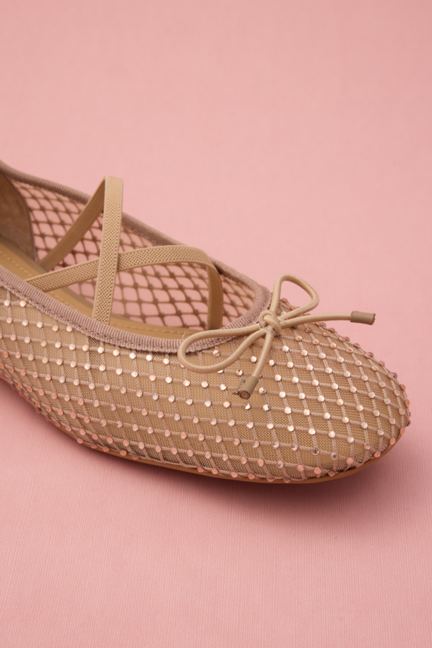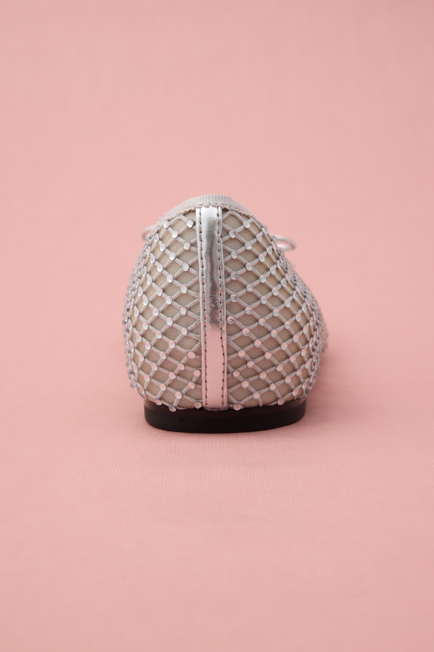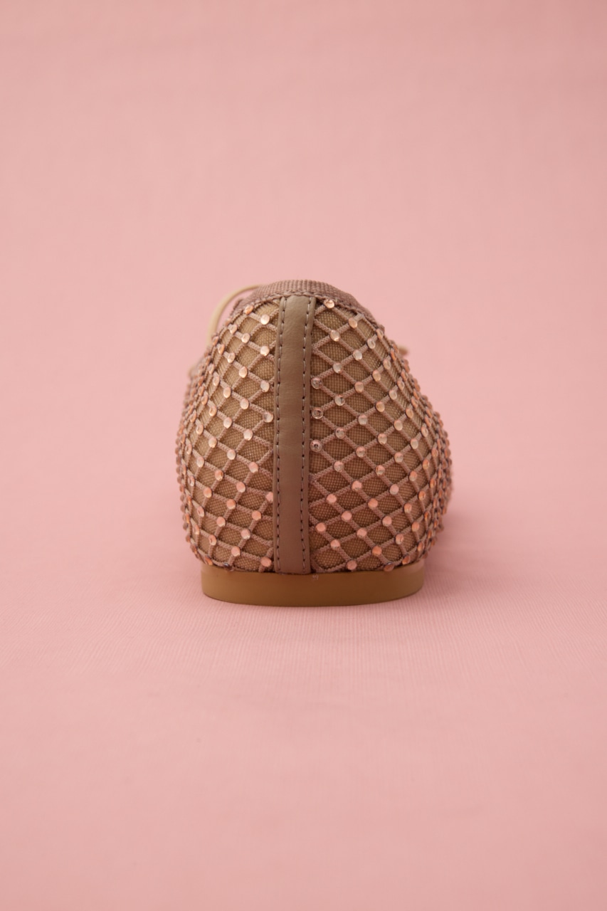 フィッシュネット地に1粒ずつストーンをほどこした、大人かわいい軽量バレリーナシューズ。さらっとしてぬけ感のあるメッシュ地なので、春夏の足元に◎クロスベルトで甲を安定させてくれるのも嬉しいポイントです。