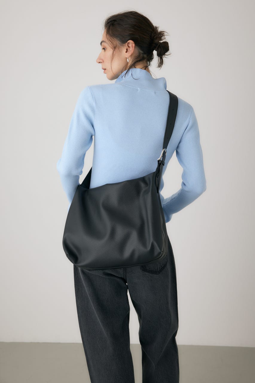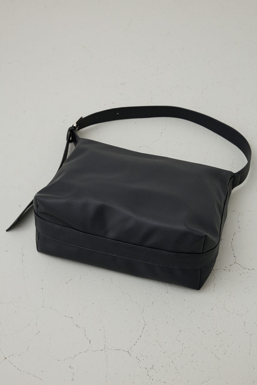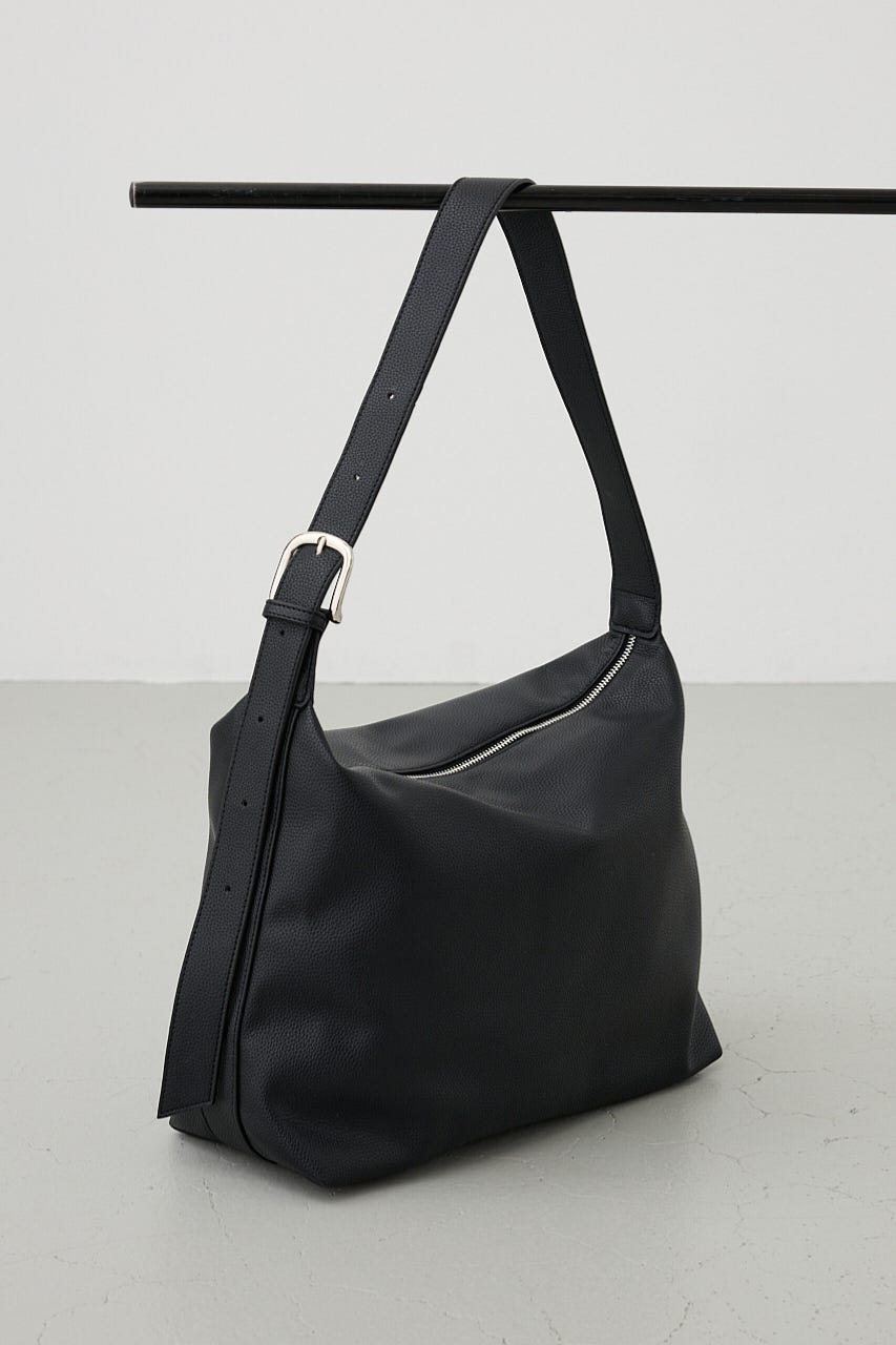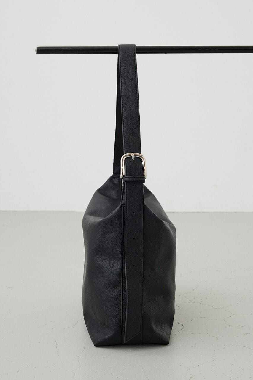大きなバックルがポイントのシンプルなスクエアのショルダーバッグ。