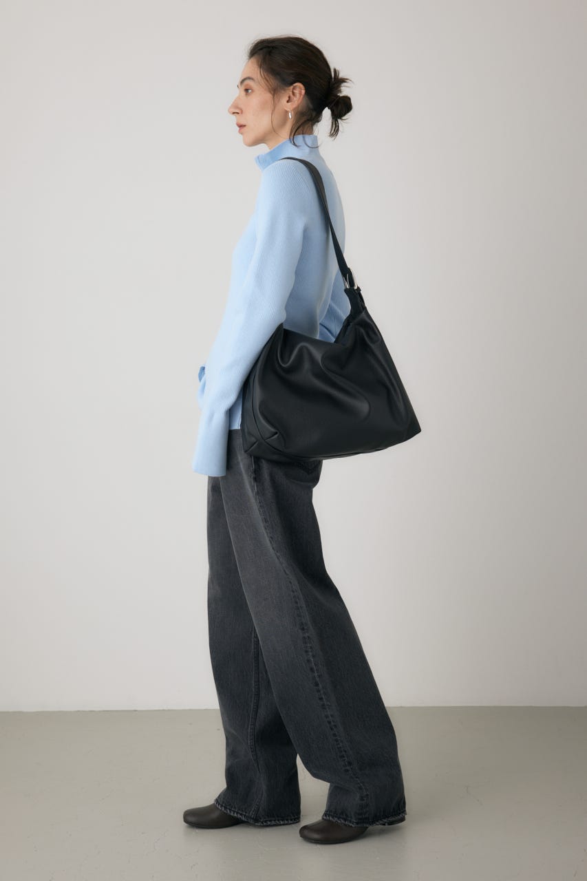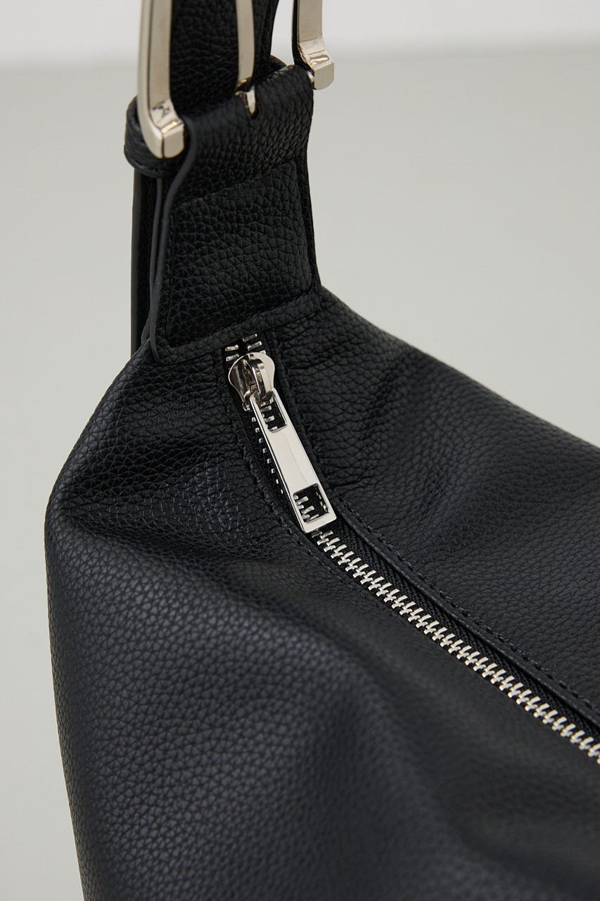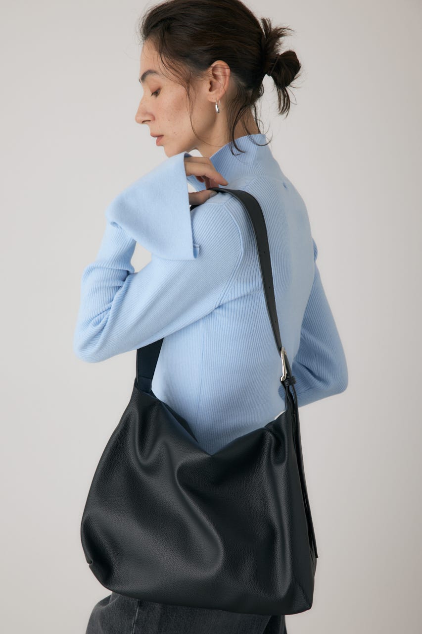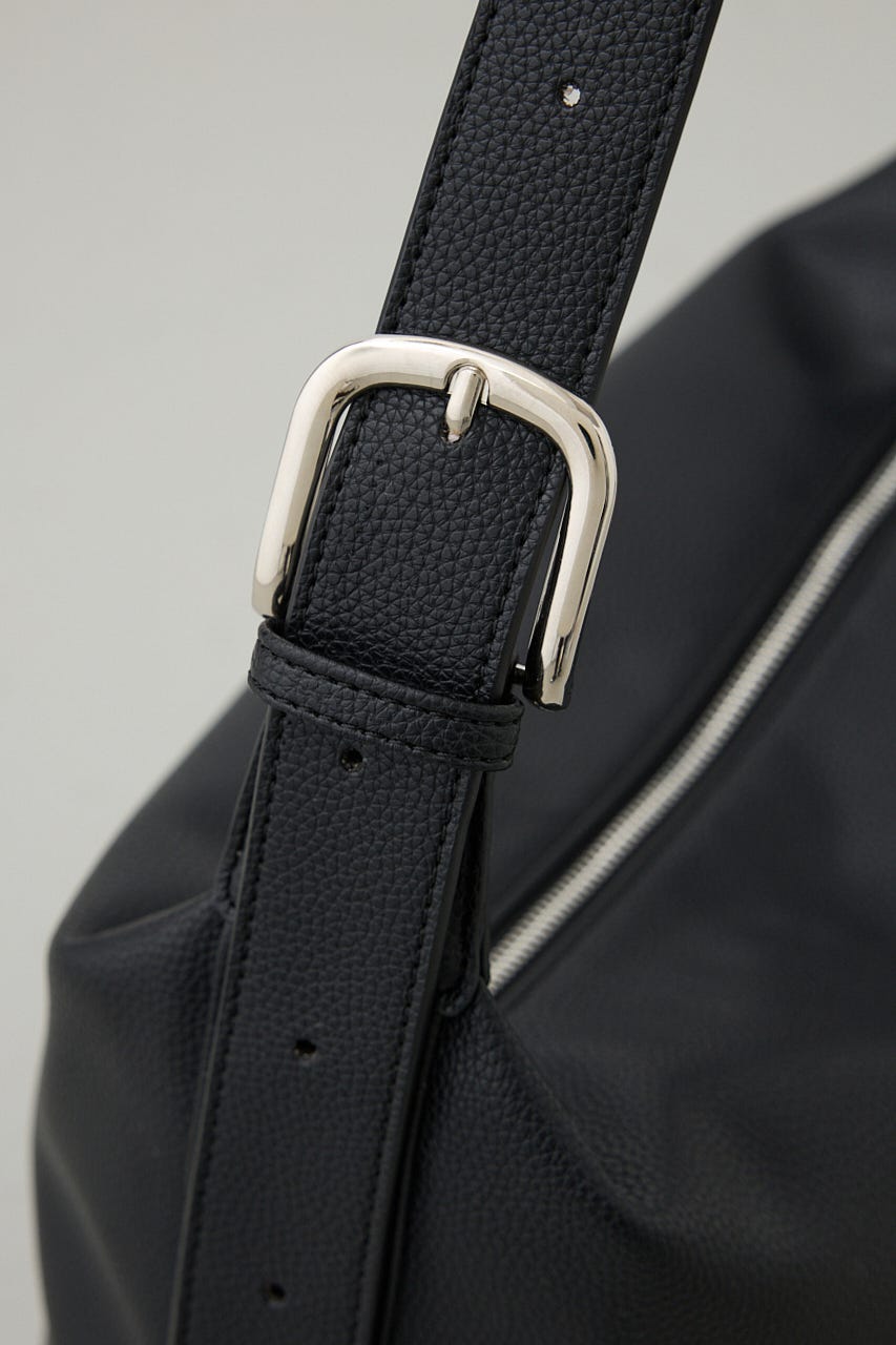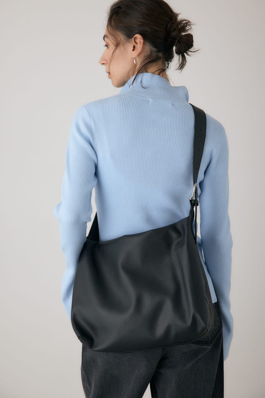 大きなバックルがポイントのシンプルなスクエアのショルダーバッグ。