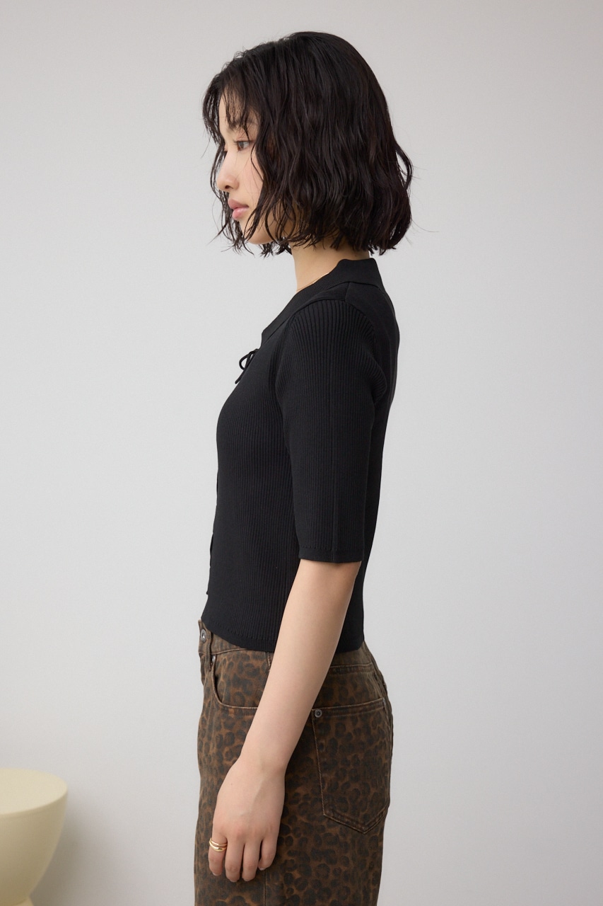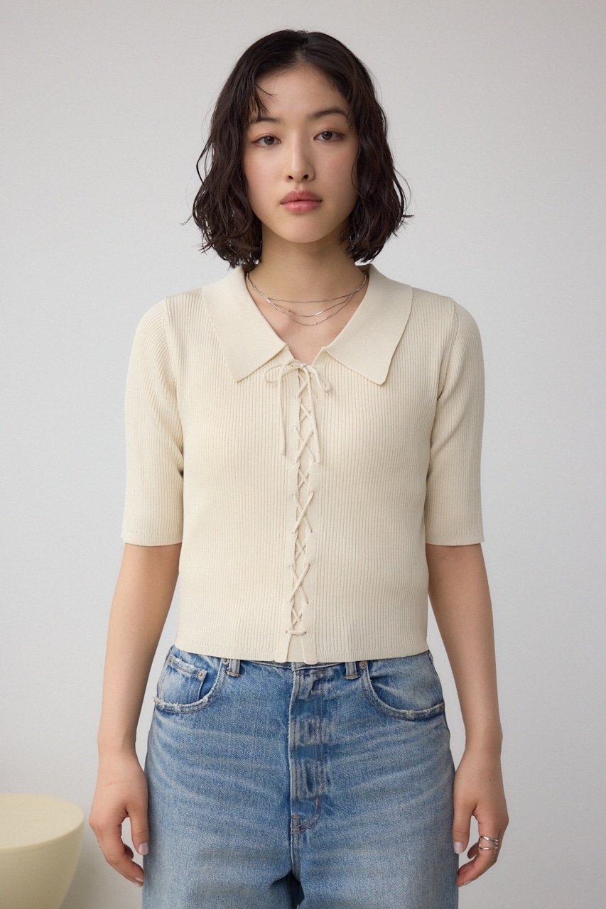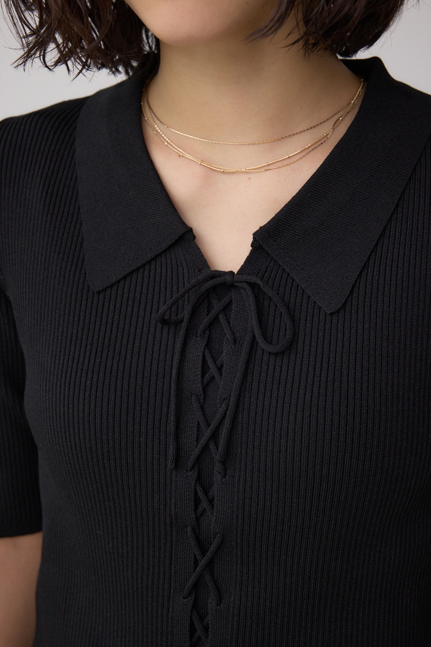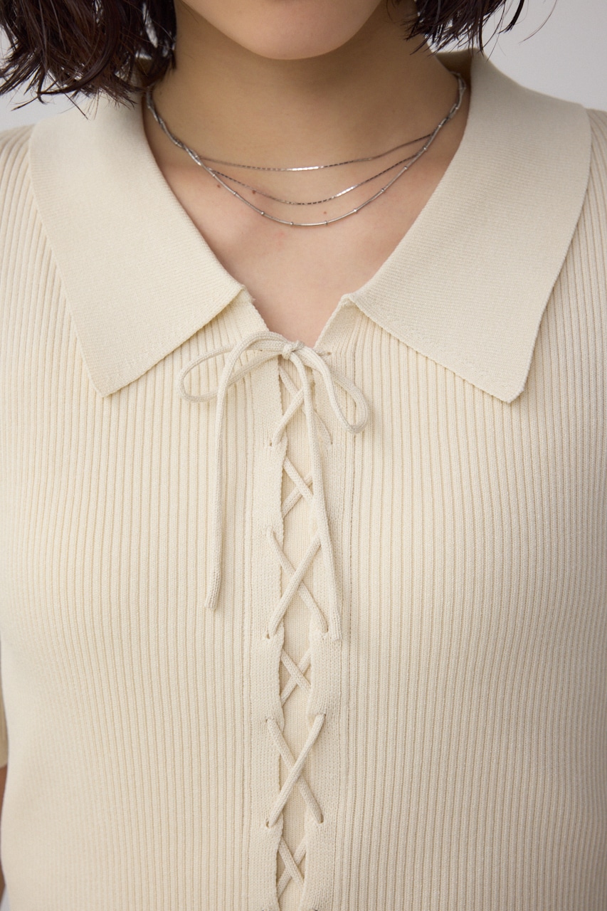 250ISC70-288B レースアップポロカラーニットの5分袖バージョンになります。