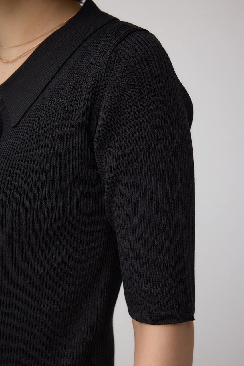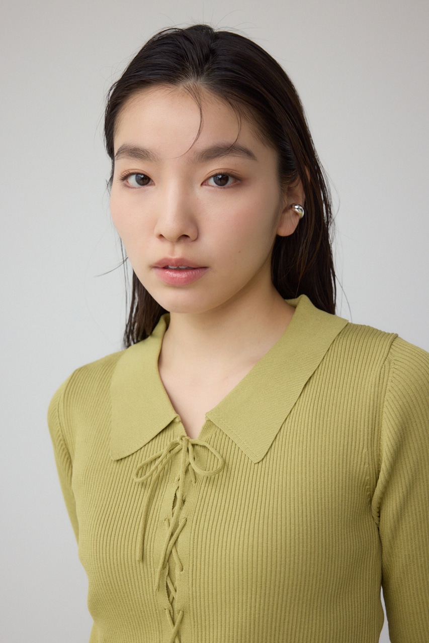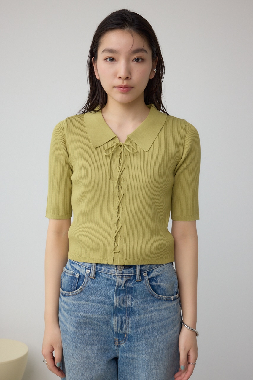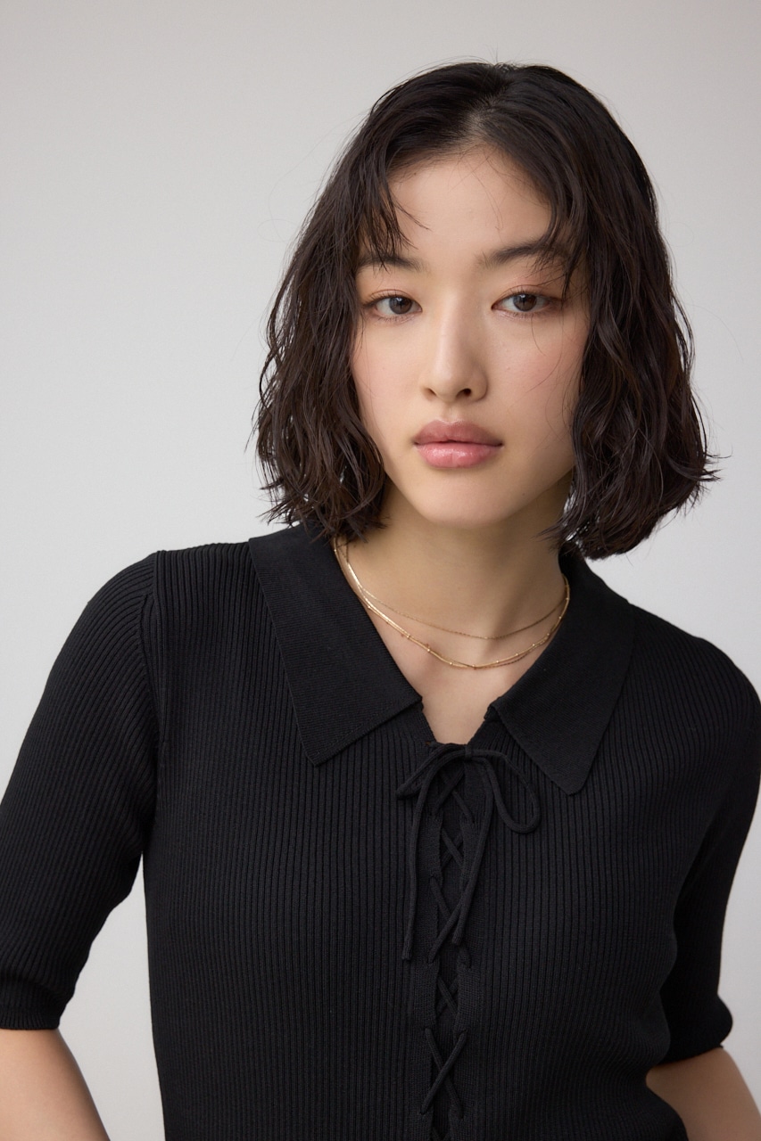 250ISC70-288B レースアップポロカラーニットの5分袖バージョンになります。