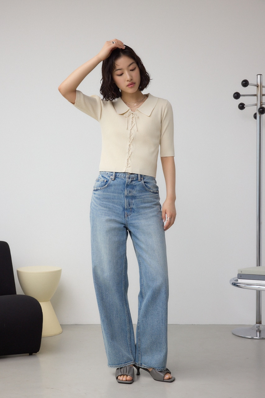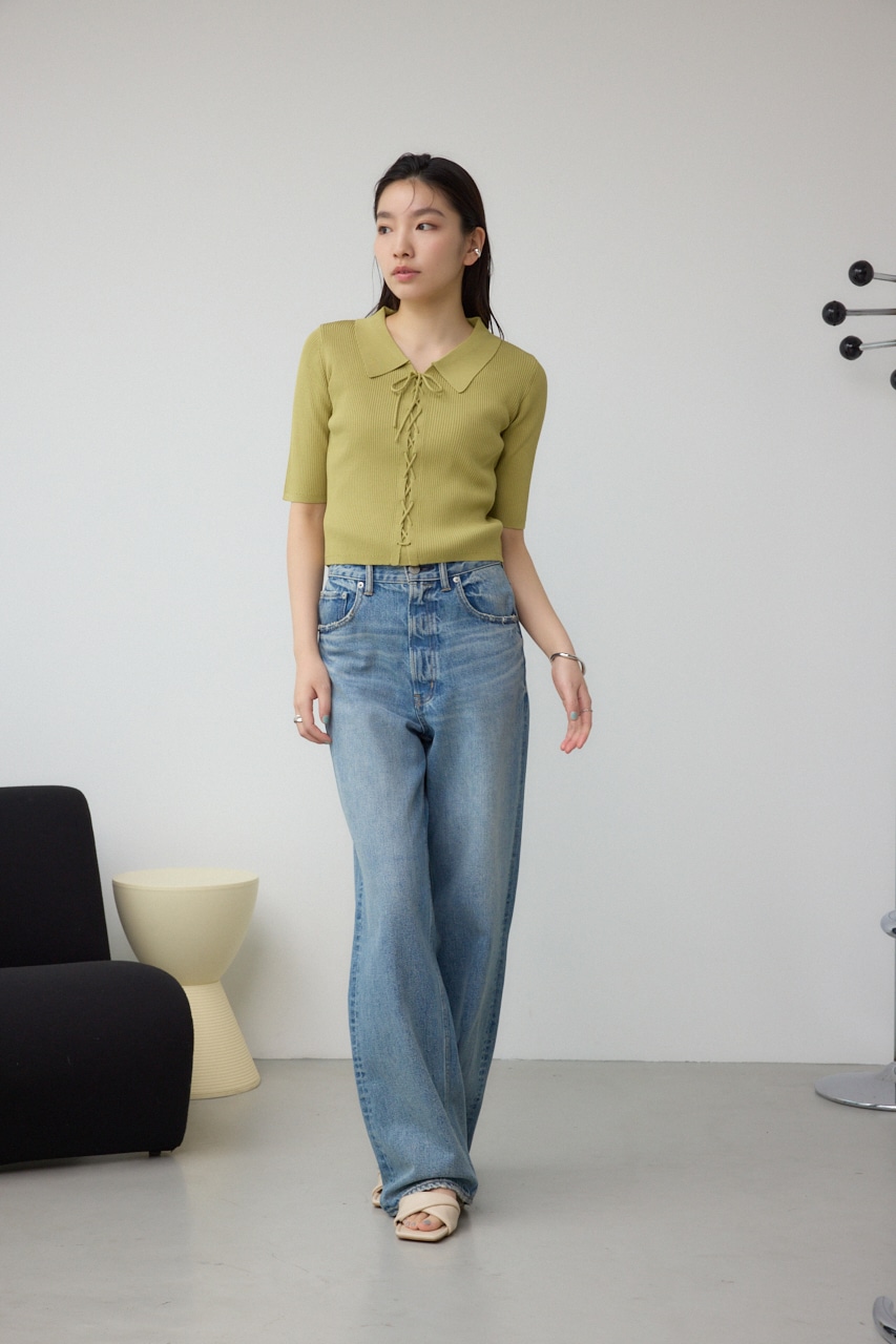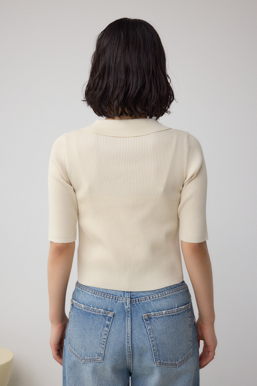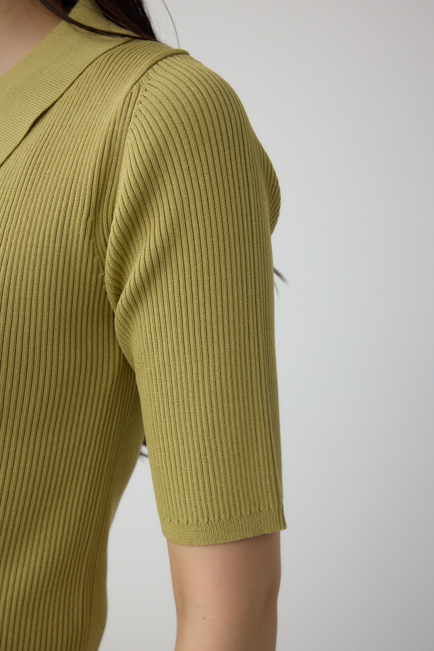 250ISC70-288B レースアップポロカラーニットの5分袖バージョンになります。