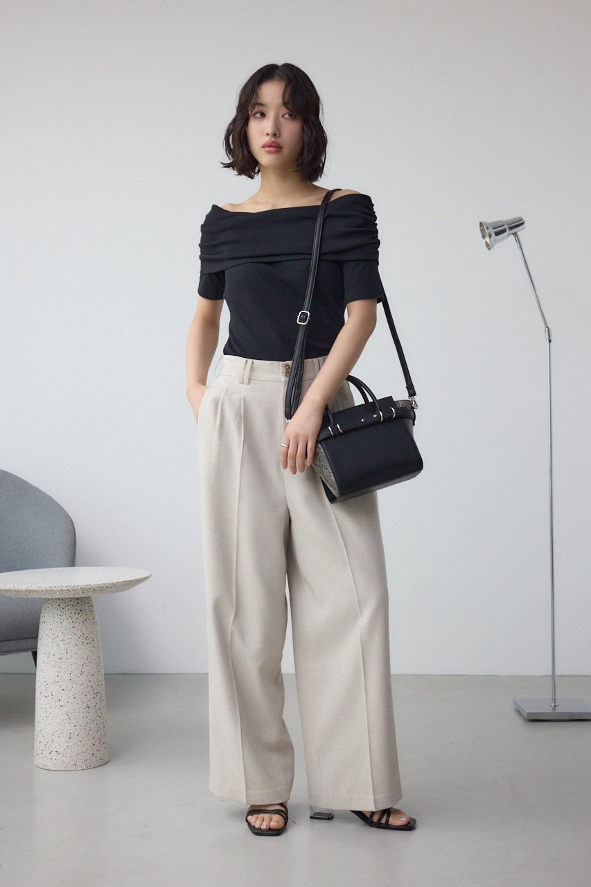 流行のベルトデザインがアクセントとなり、シンプルながらもトレンド感を感じさせる一品。