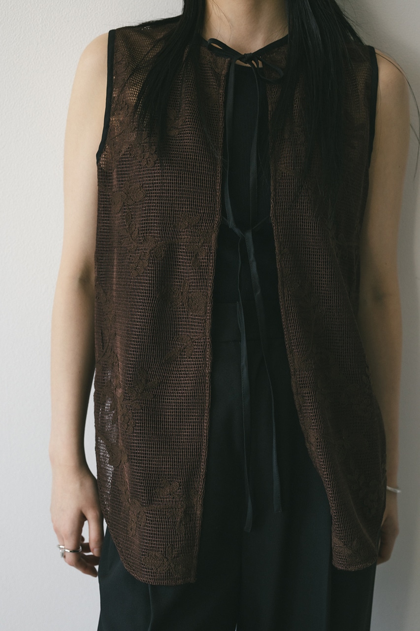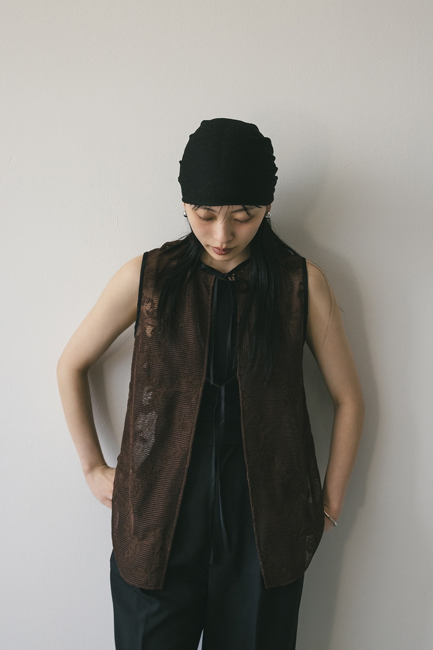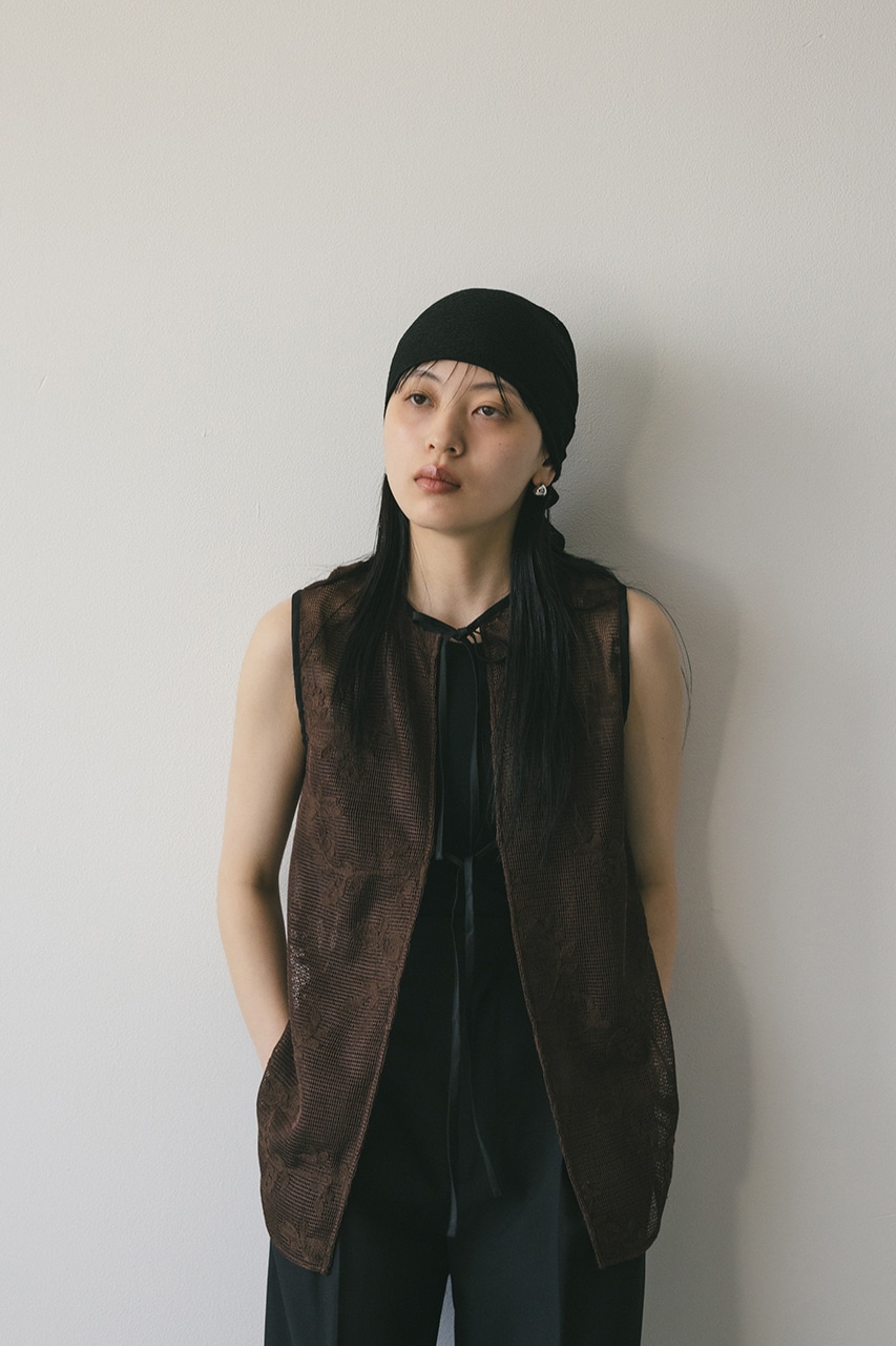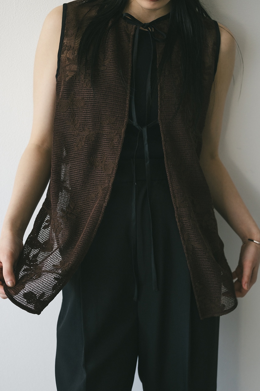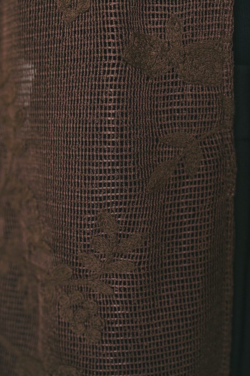 格子柄の生地にフラワー柄を刺繍した生地を使用した前後2WAYで着用できるトップス。