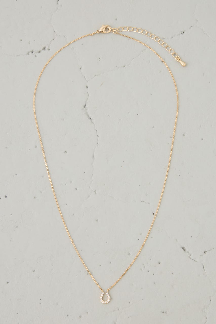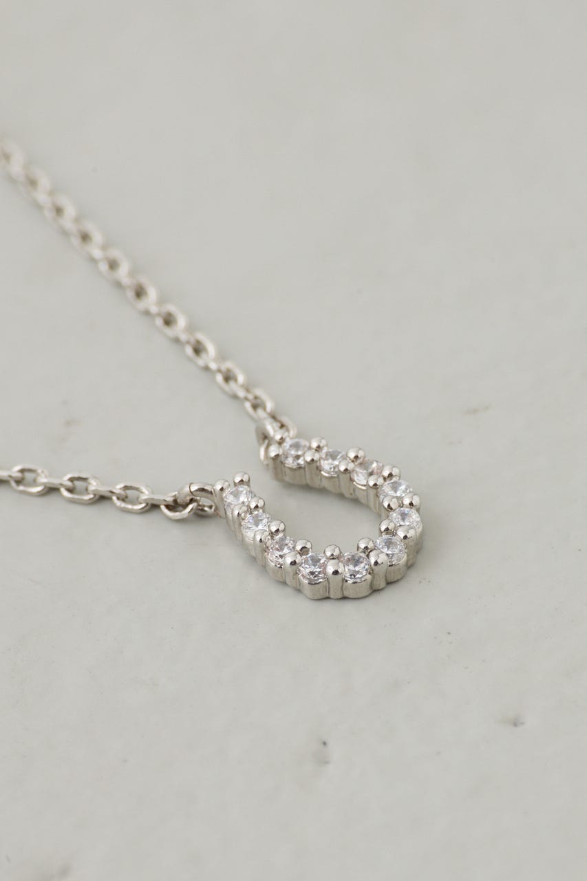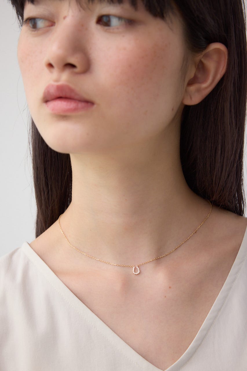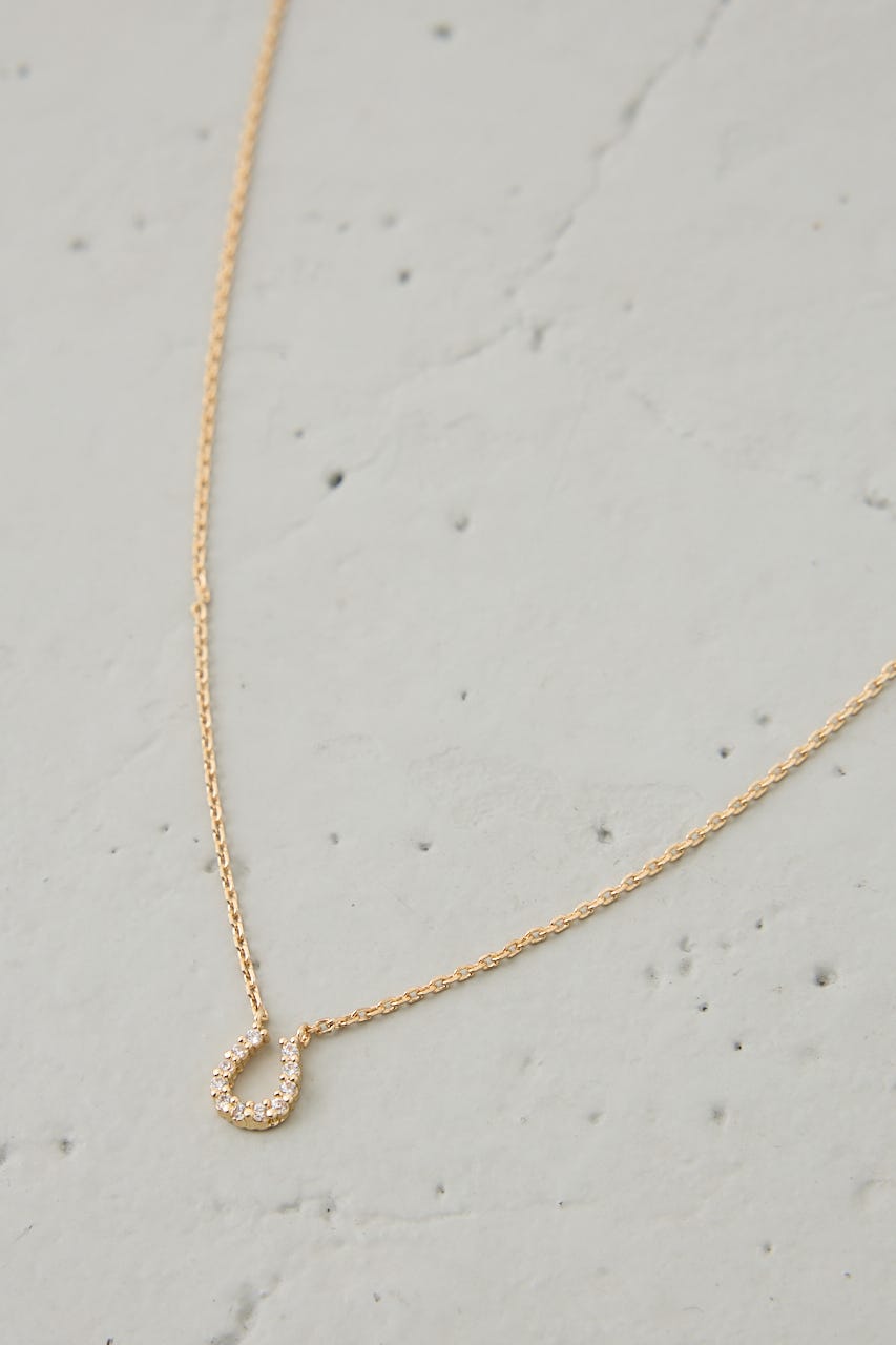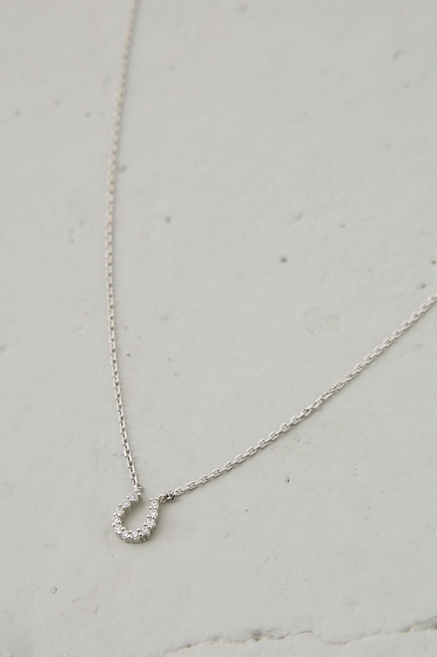 キラキラと輝くラインストーンが目を惹くホースシューモチーフに、華奢なチェーンを合わせた、女性らしさと上品さを兼ね備えたネックレス。