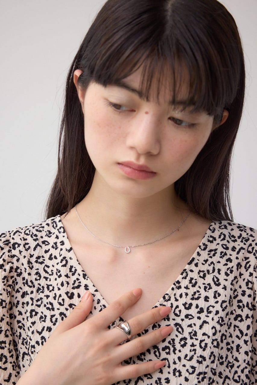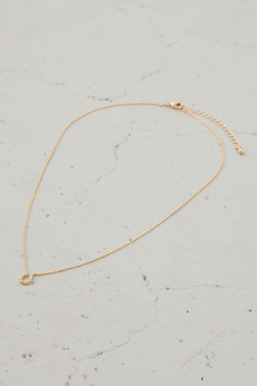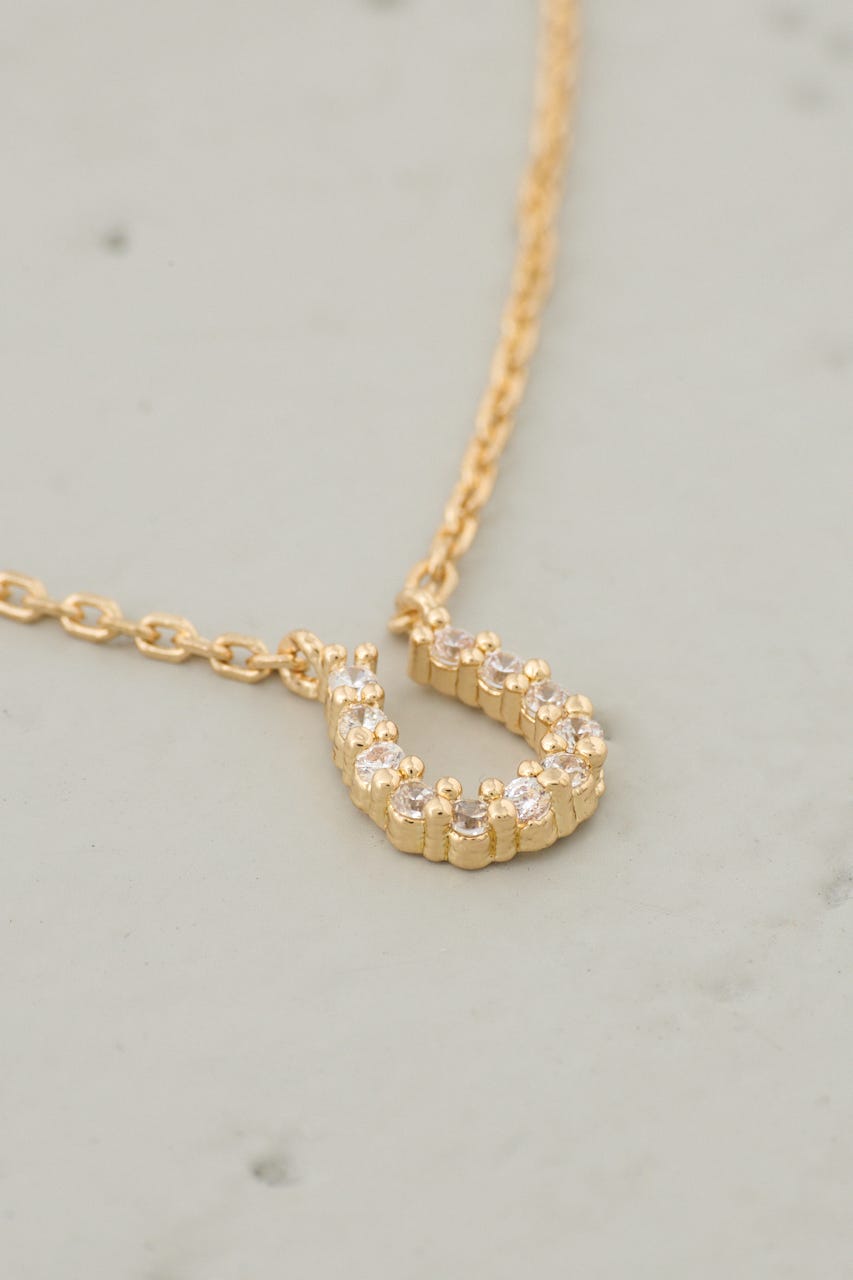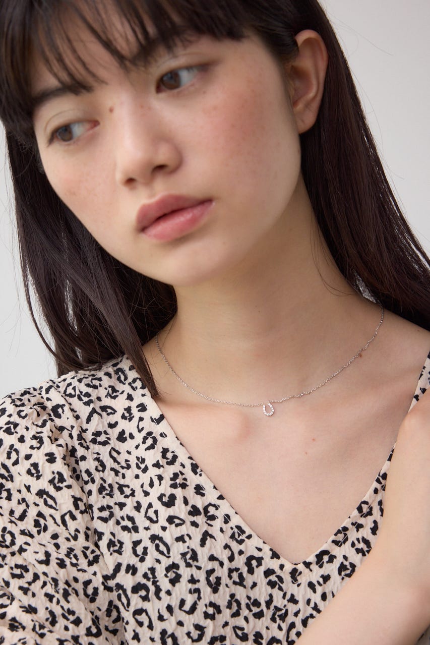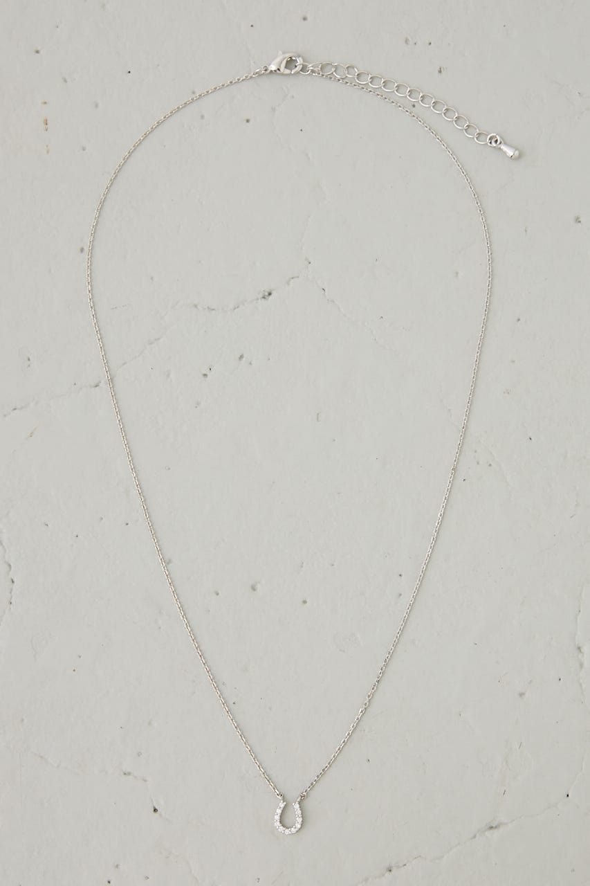 キラキラと輝くラインストーンが目を惹くホースシューモチーフに、華奢なチェーンを合わせた、女性らしさと上品さを兼ね備えたネックレス。