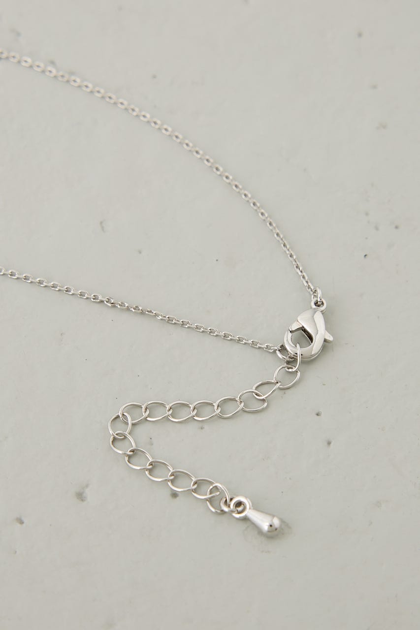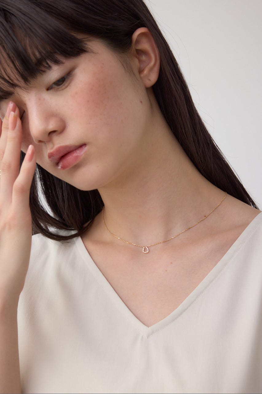 華奢なチェーンが首元を美しく見せ、女性らしい印象を引き立ててくれるデザイン。