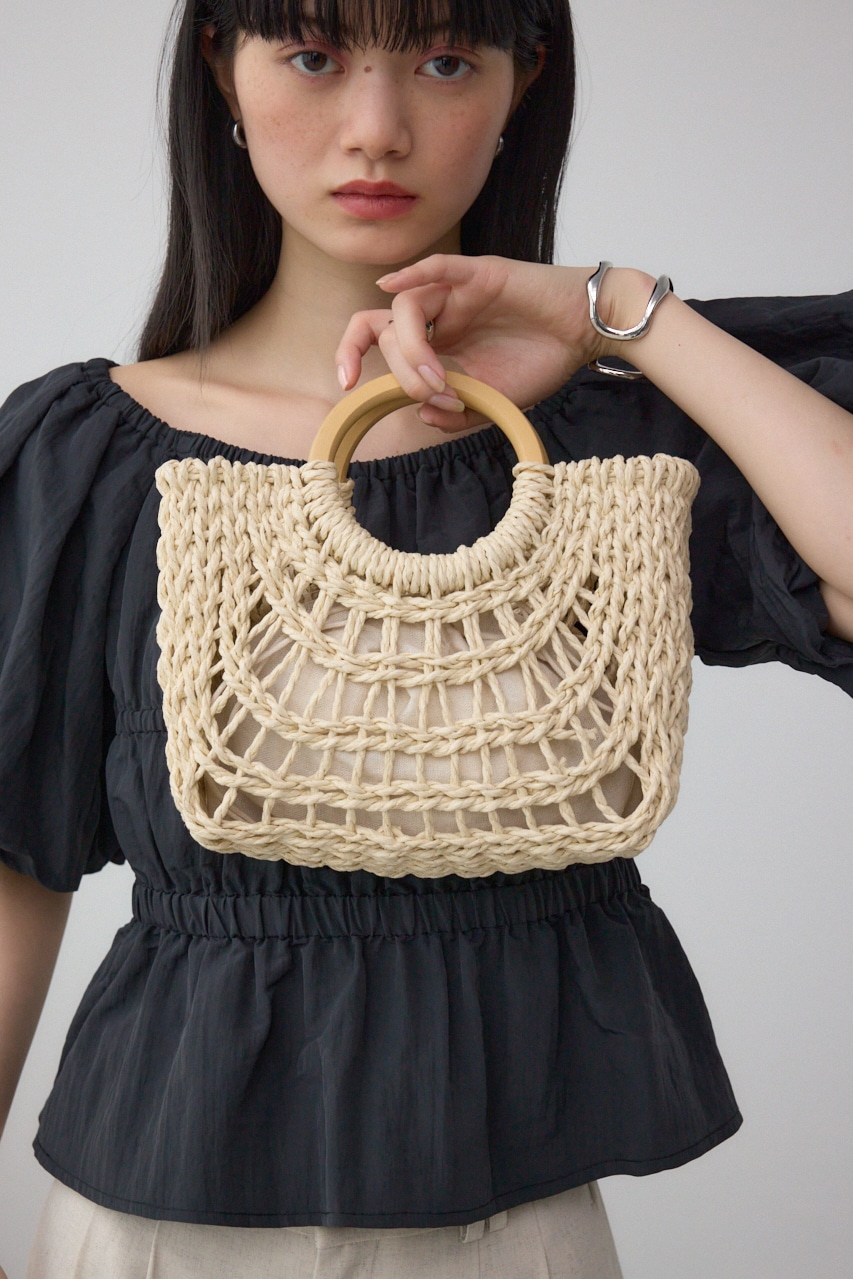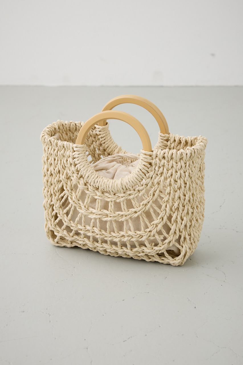 ウッド見えのハンドルがこなれ感を演出し、リラックスした夏のスタイルにぴったりなアイテムです。