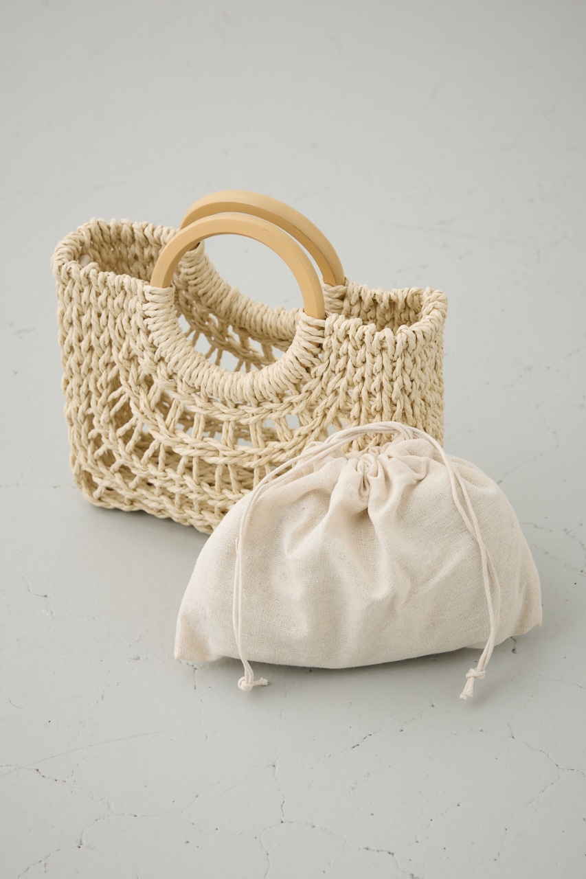 【バッグ】[本体]分類外繊維(紙)・[肩紐部分]合成皮革【巾着】ポリエステル・コットン・その他
