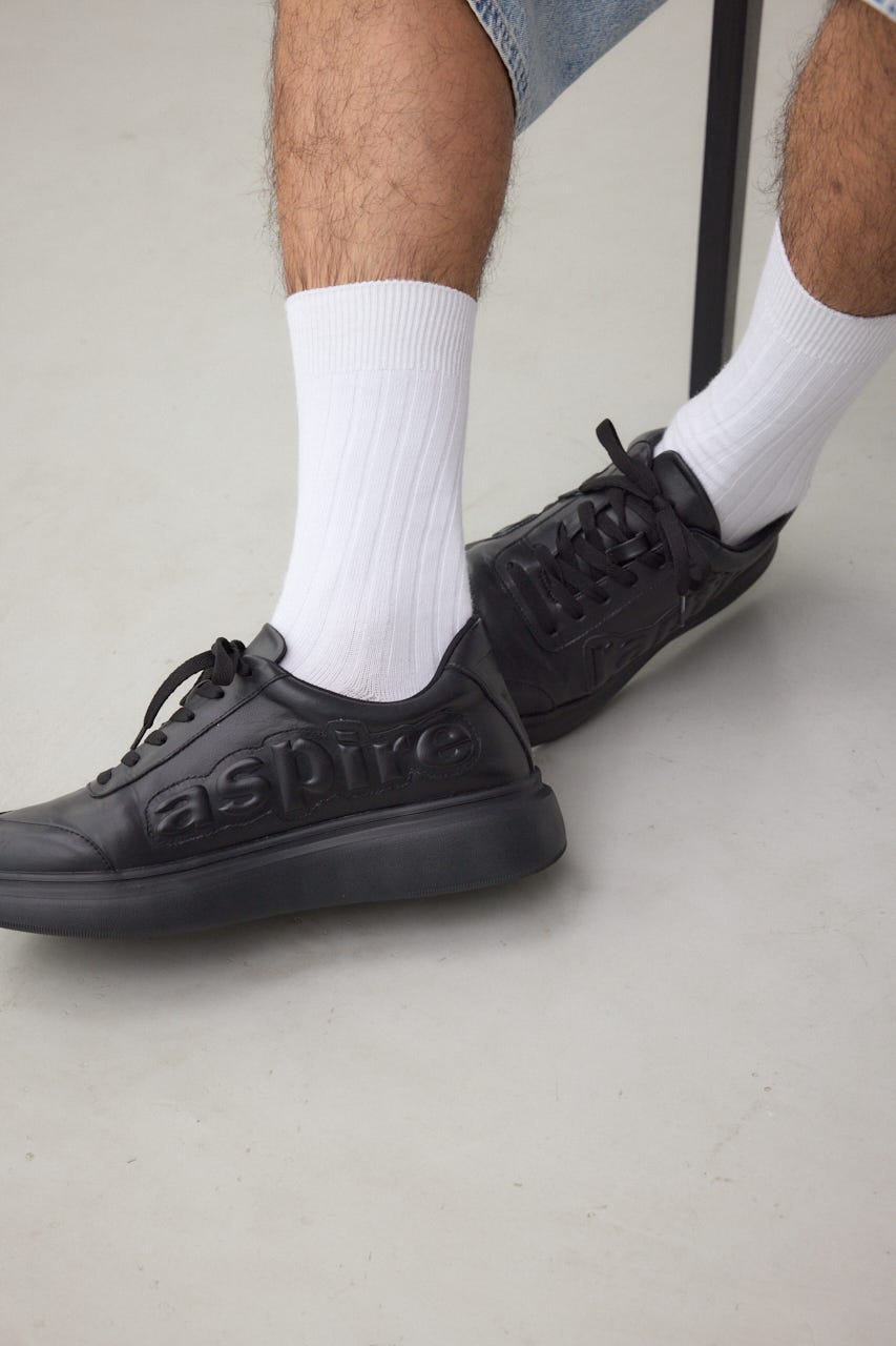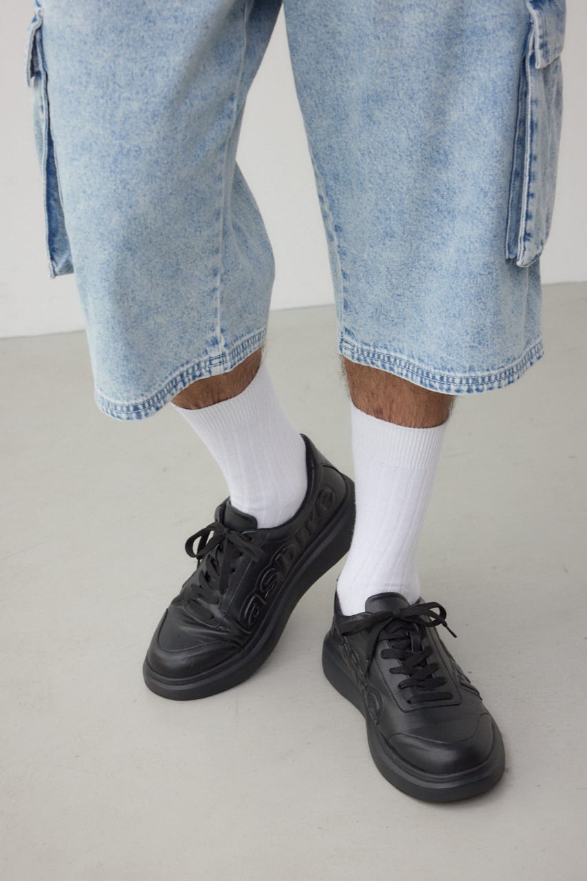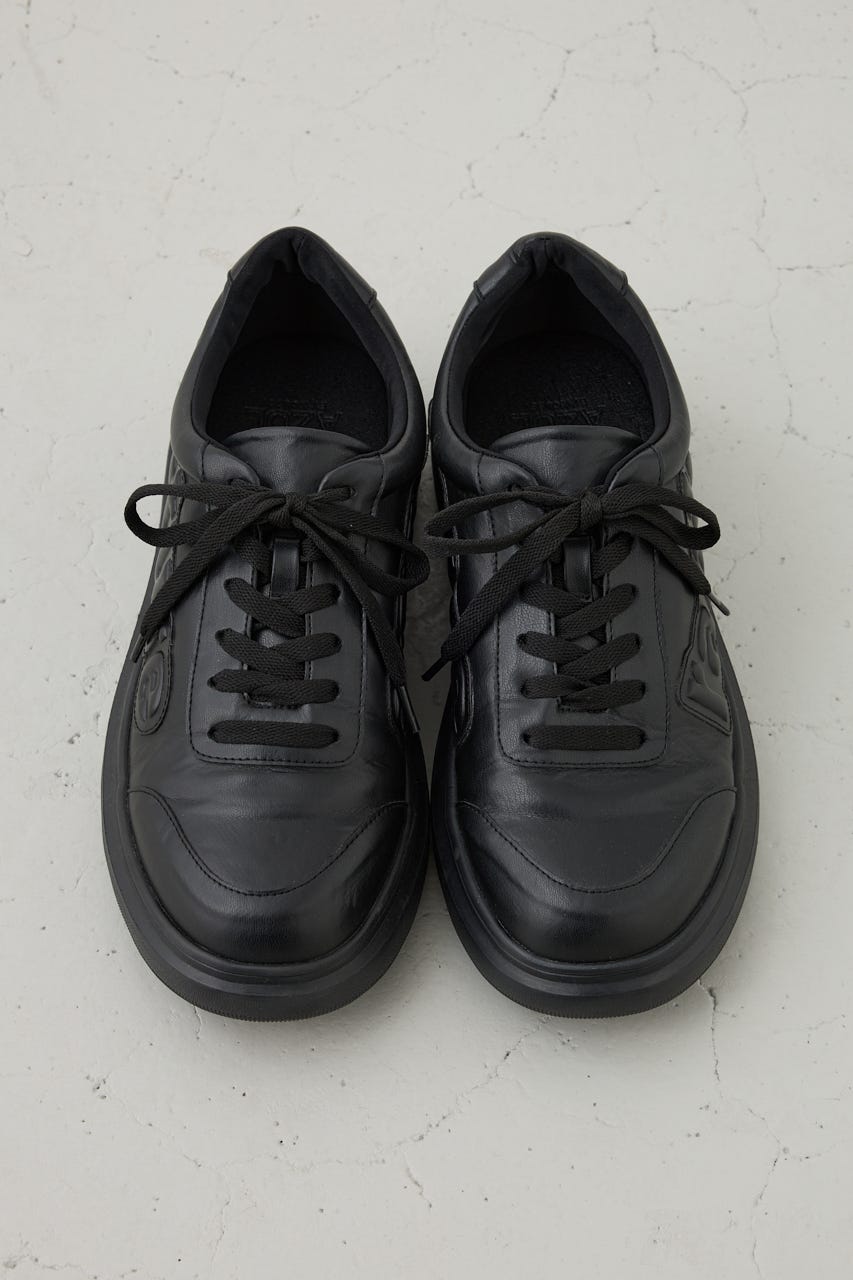 艶のある合成皮革素材に側面の同色エンボスロゴが高見えさせてくれます。