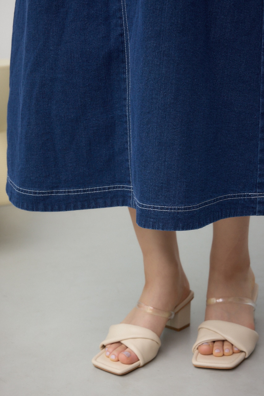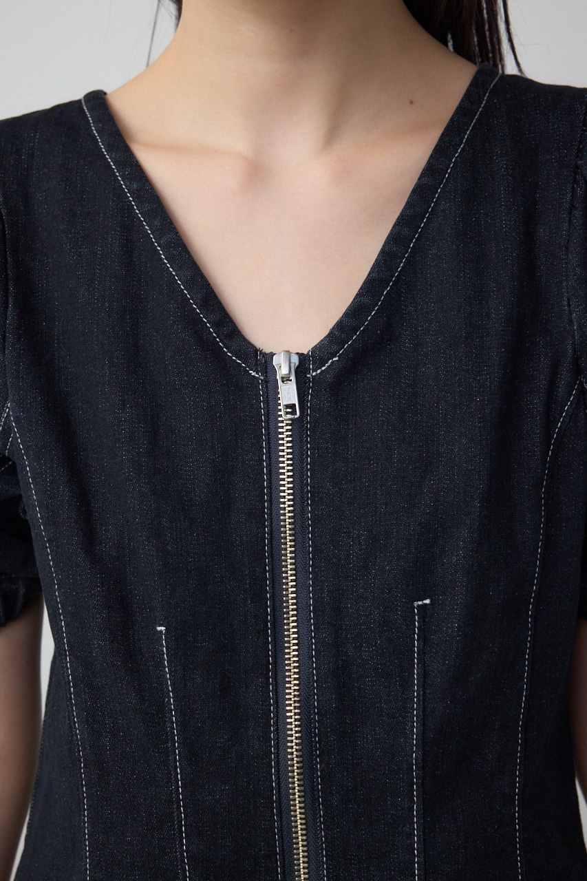 ※SサイズとMサイズとでは総丈・裾まわりのみが異なります。サイズ選びには十分ご注意くださいませ。 ■フロントジップ半袖デニムワンピース