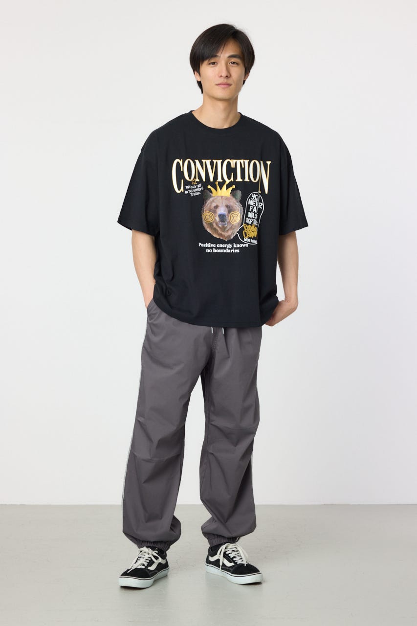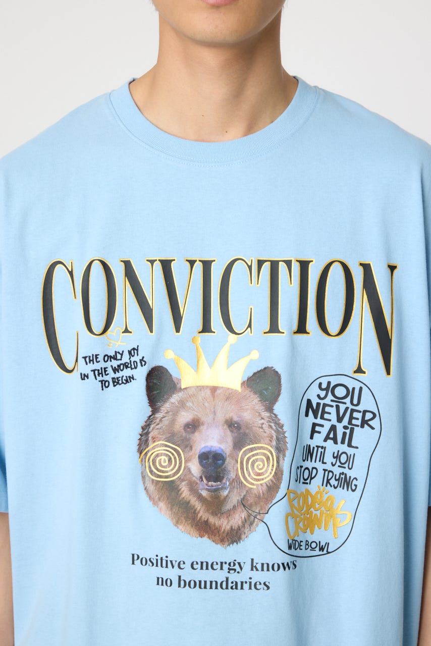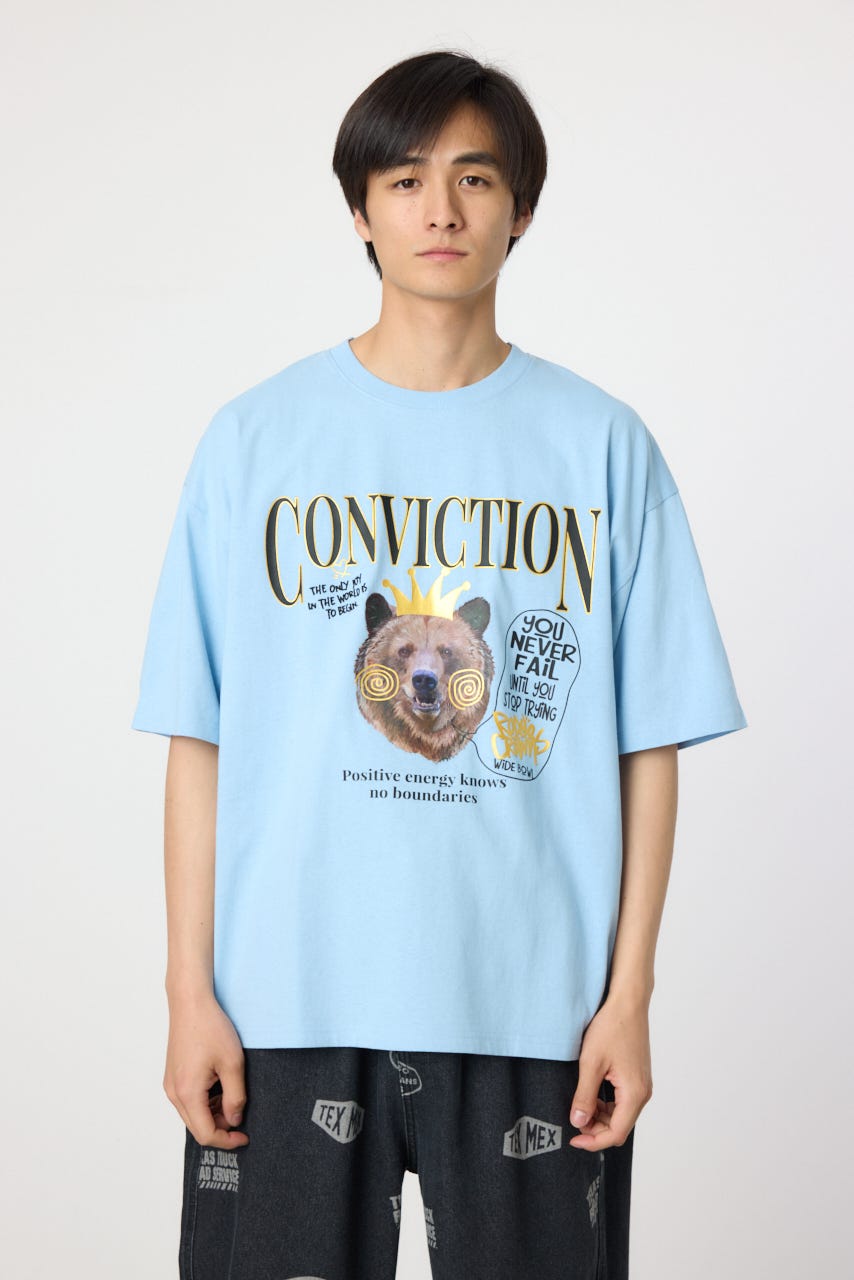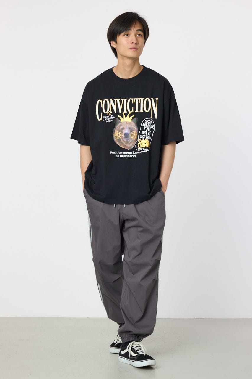 フロントに大きく入ったくまのグラフィックが目を引く半袖Tシャツ。