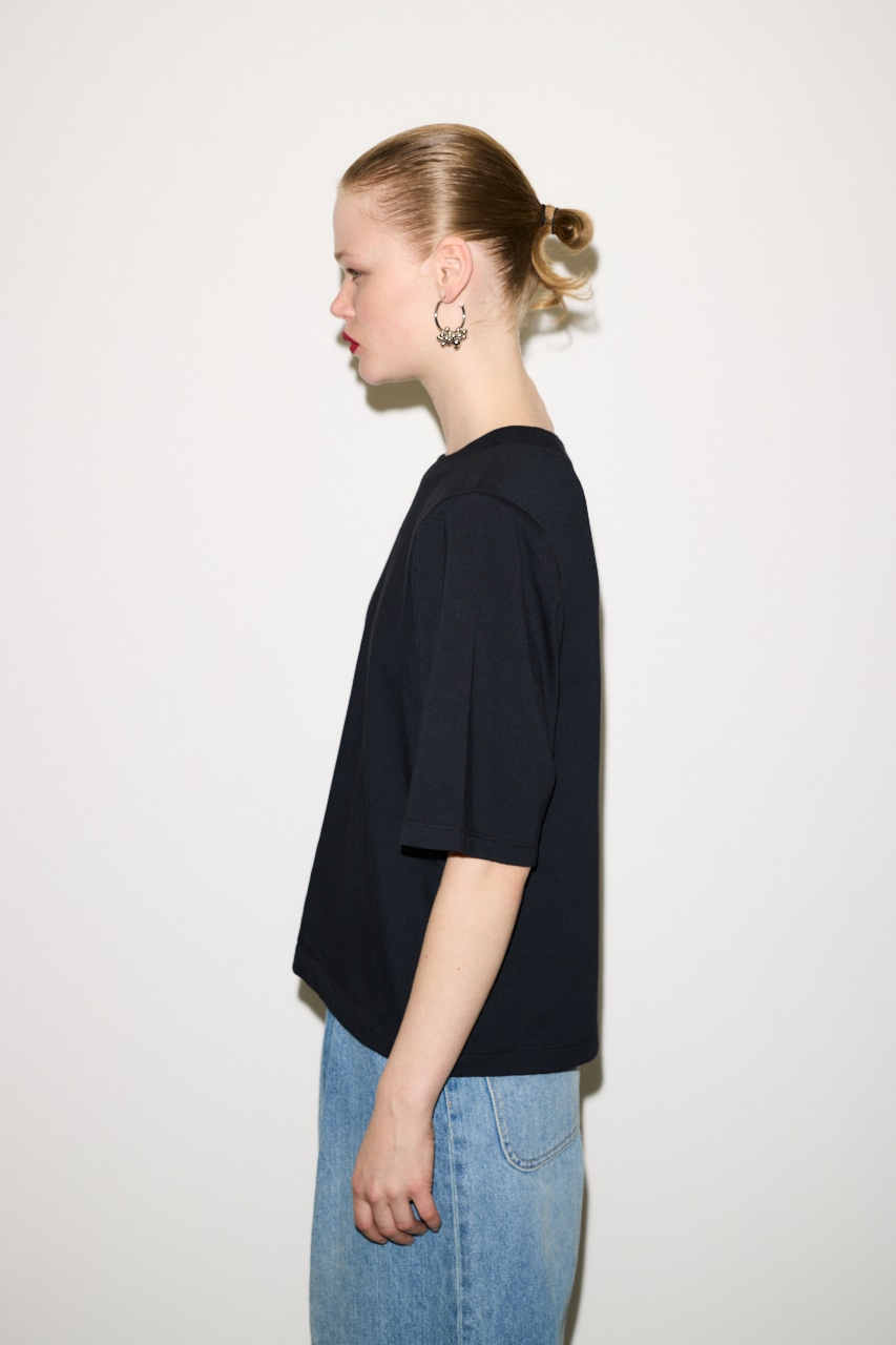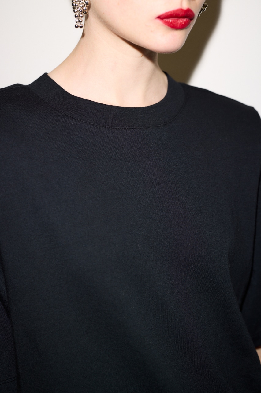 落ち感のある肌触りの良いレーヨン混素材を使用し、少し長めのハーフスリーブ丈なので大人っぽい印象で着ていただけます。